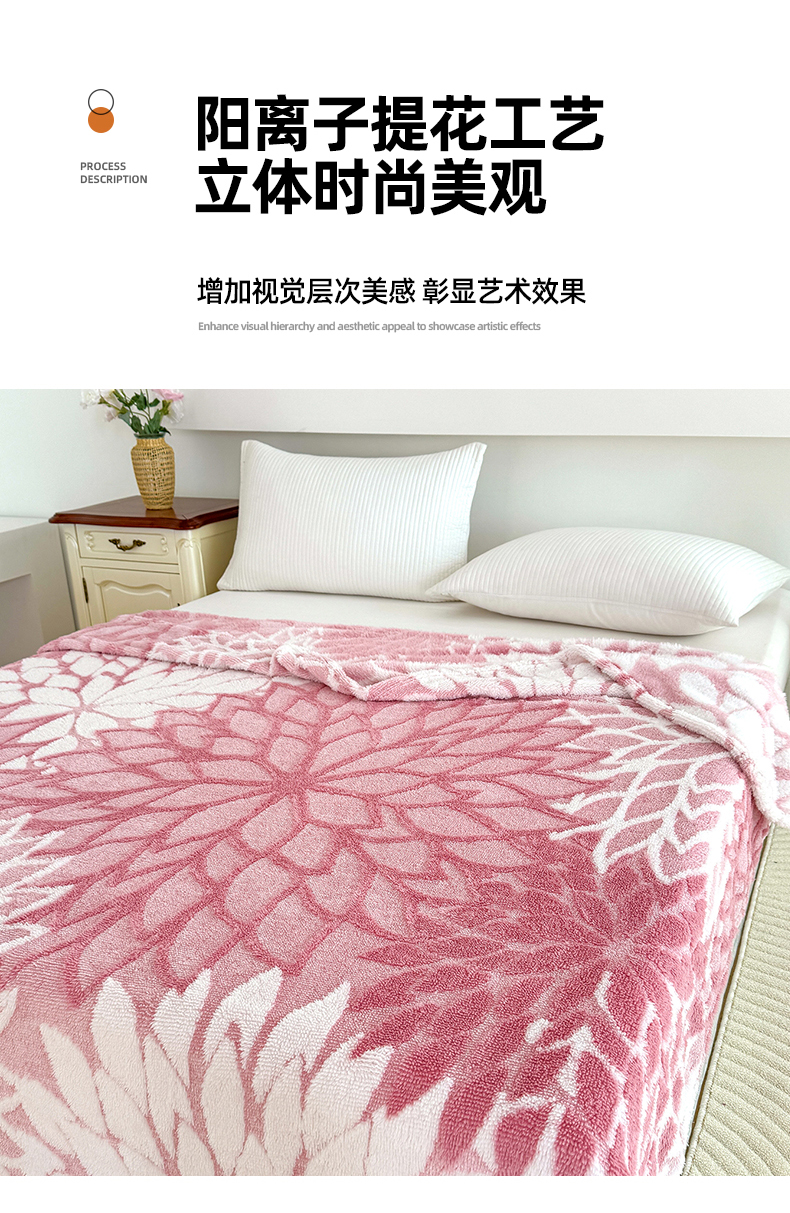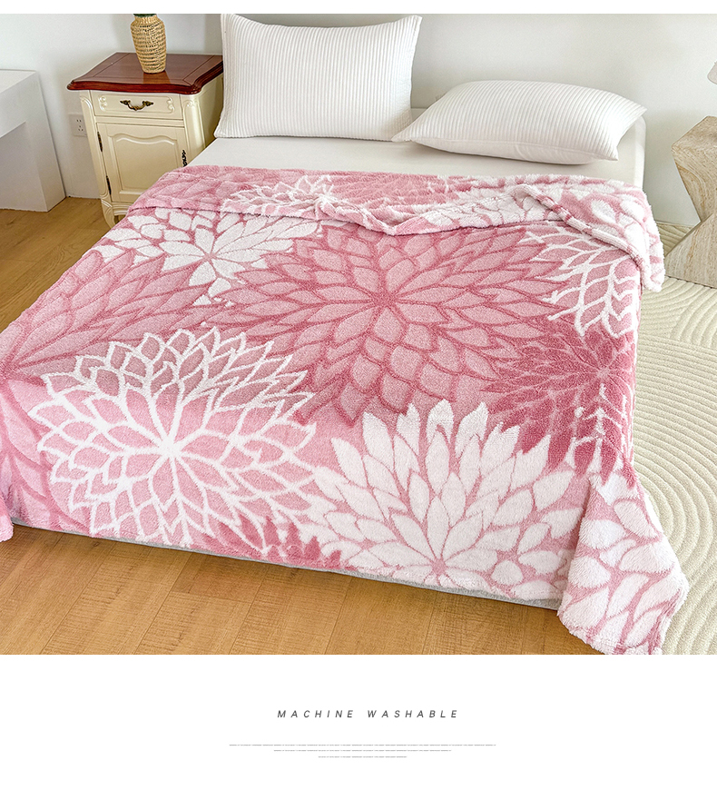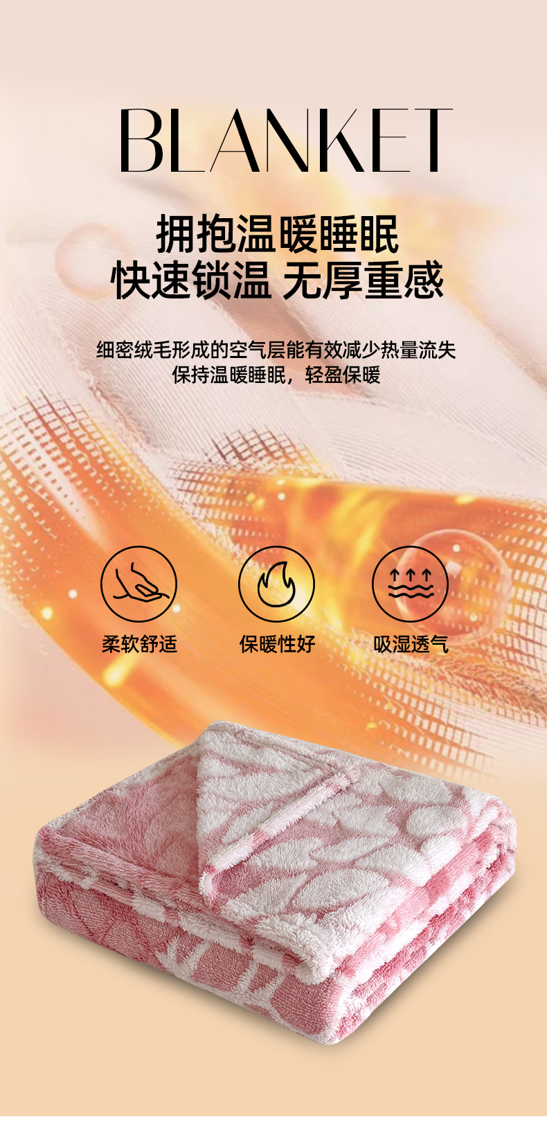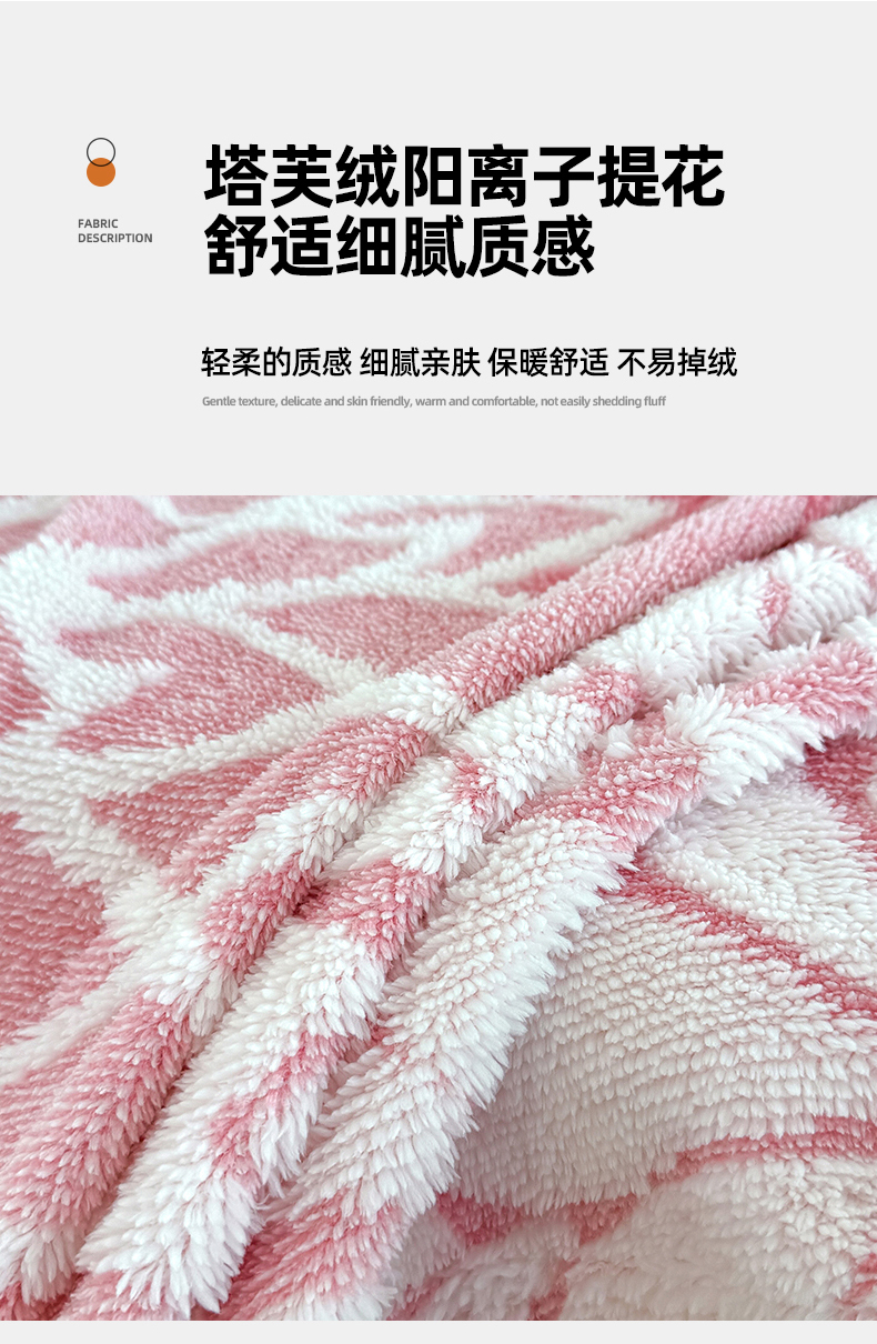 商品名称:枋梢家纺 2025新款万花筒阳离子提花镂空塔芙绒保暖午睡双层毛毯办公室盖毯 万花筒-柔粉