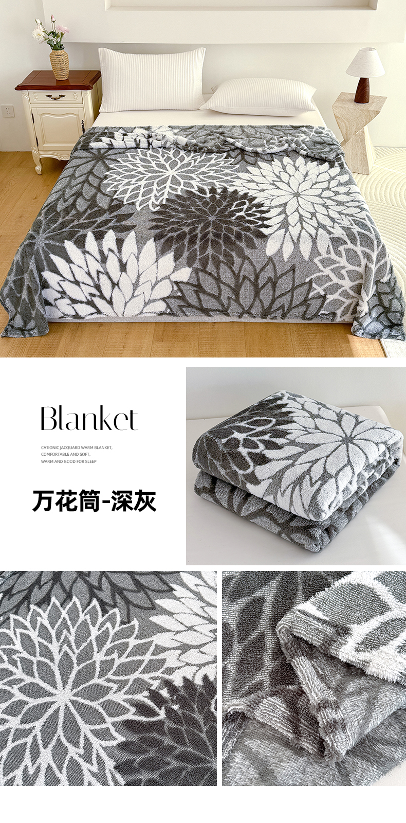 (总)枋梢家纺 2024新款跨境电商发财树塔芙绒纯色发财树提花多功能盖毯午睡毯子办公毛毯 ,灰色,咖色,蓝色,米白,米咖,紫色