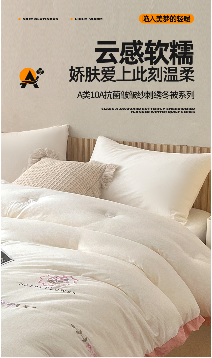 • 91家纺网 家纺一手货源 找家纺 (总)宝士康家纺 2025新品 10A抗菌尤里绣花冬被被芯 外贸/跨境,尤里-白色,尤里-粉色,尤里-浅灰