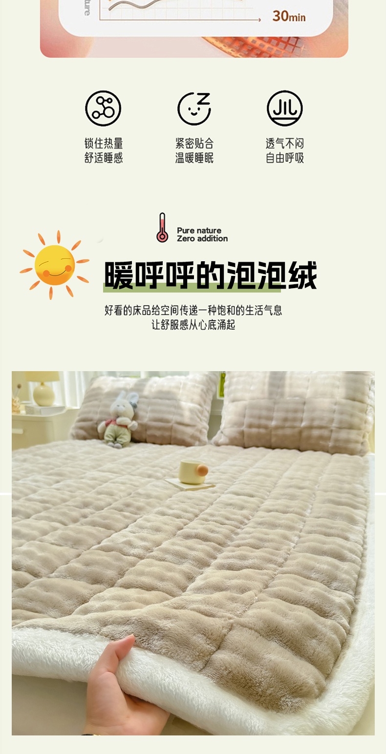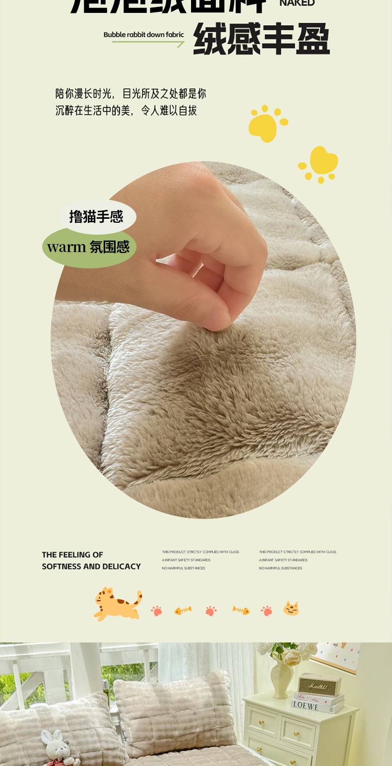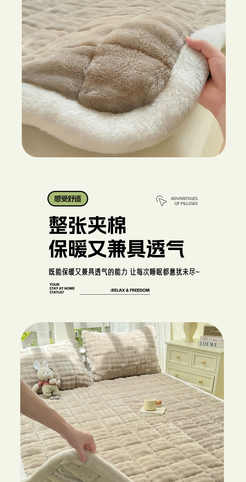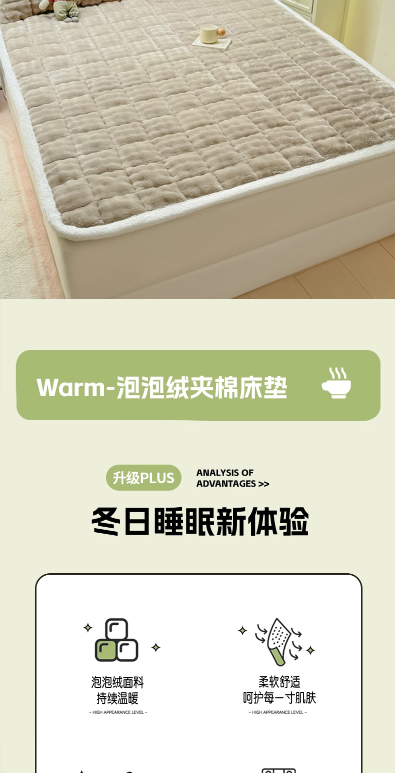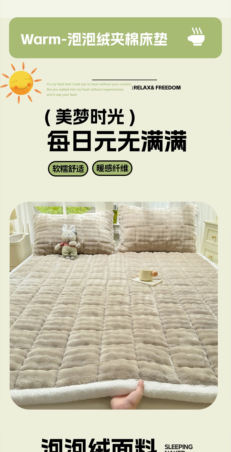 (总)麒东家纺 2025年新款兔毛绒泡泡绒夹棉床垫,粉色,咖色,绿色,米白,浅灰,深灰,天蓝