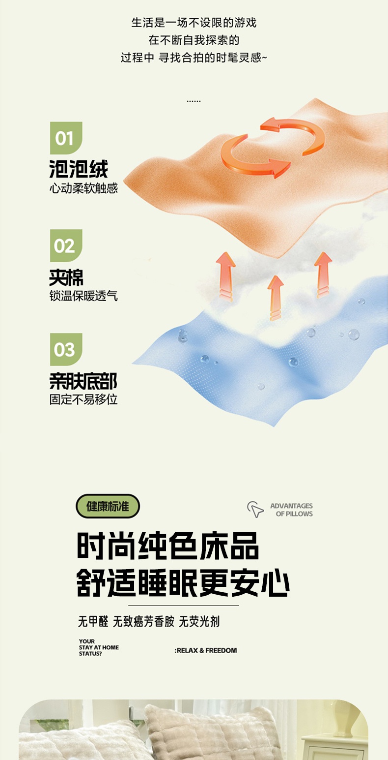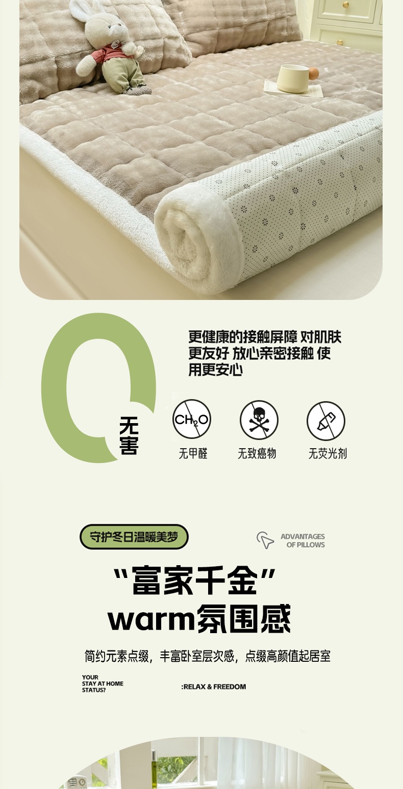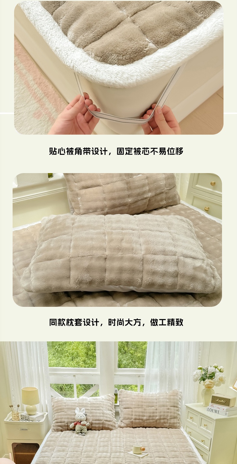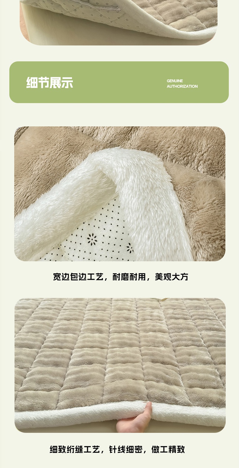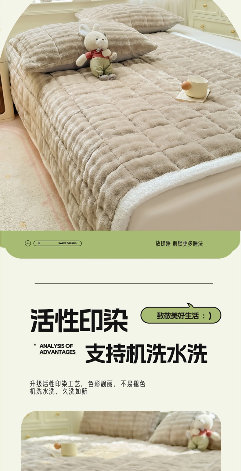 (总)麒东家纺 2025年新款兔毛绒泡泡绒夹棉床垫,粉色,咖色,绿色,米白,浅灰,深灰,天蓝
