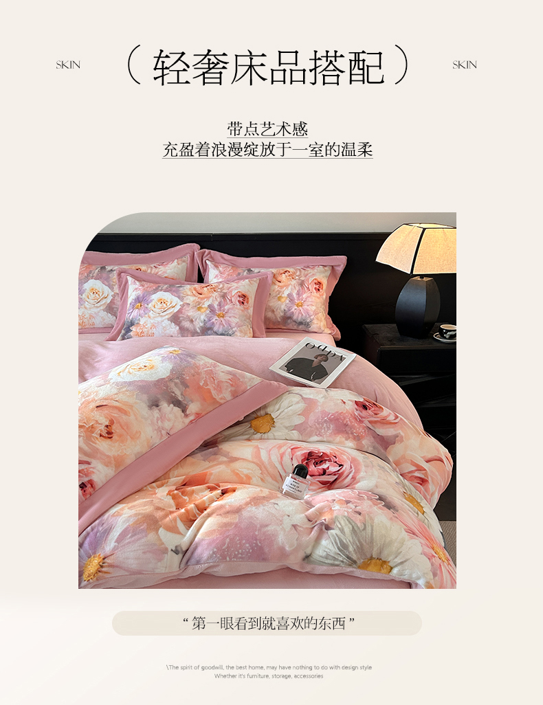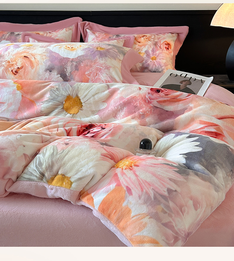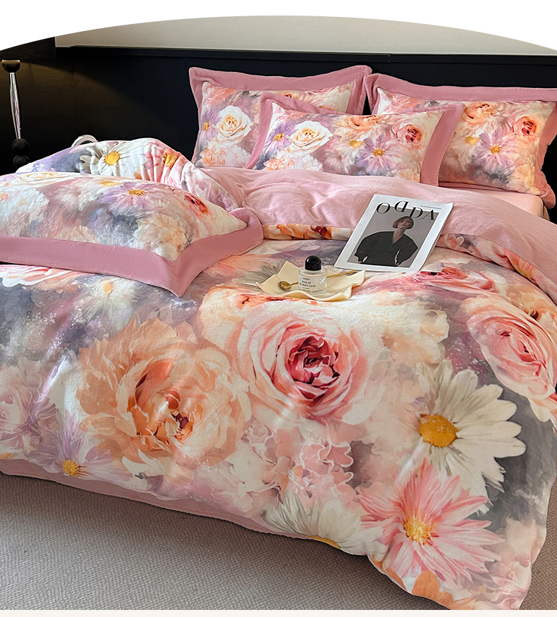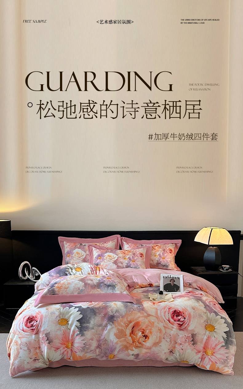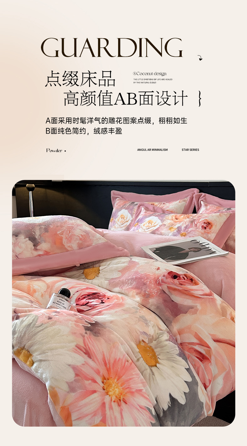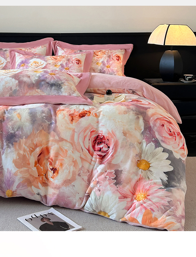 诺梵家纺 2025新款8斤加厚保暖金貂绒牛奶绒印花四件套 花枝如梦,花枝如梦