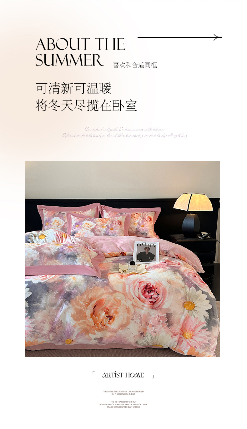 诺梵家纺 2025新款暗合大版数码印花四件套 梦花坞