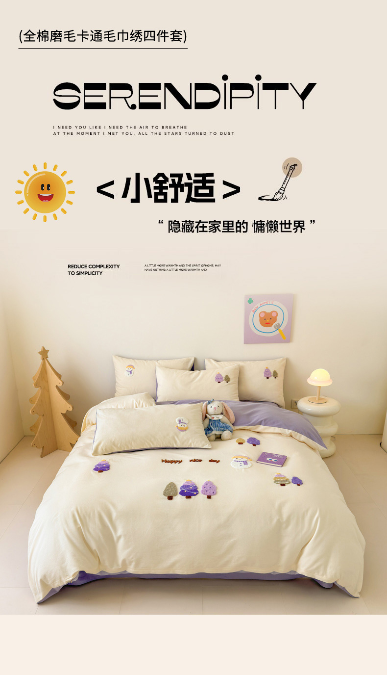 当前位置: 91家纺网 > 商品网购 > 床品套件 > 四件套 > 全棉普通四件套 > 如意朵 2025新款全棉加厚磨毛绣花四件套风格一(专版花型) 梦幻森林米