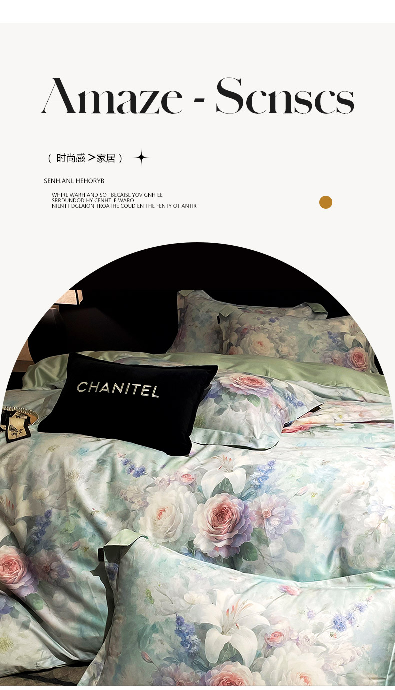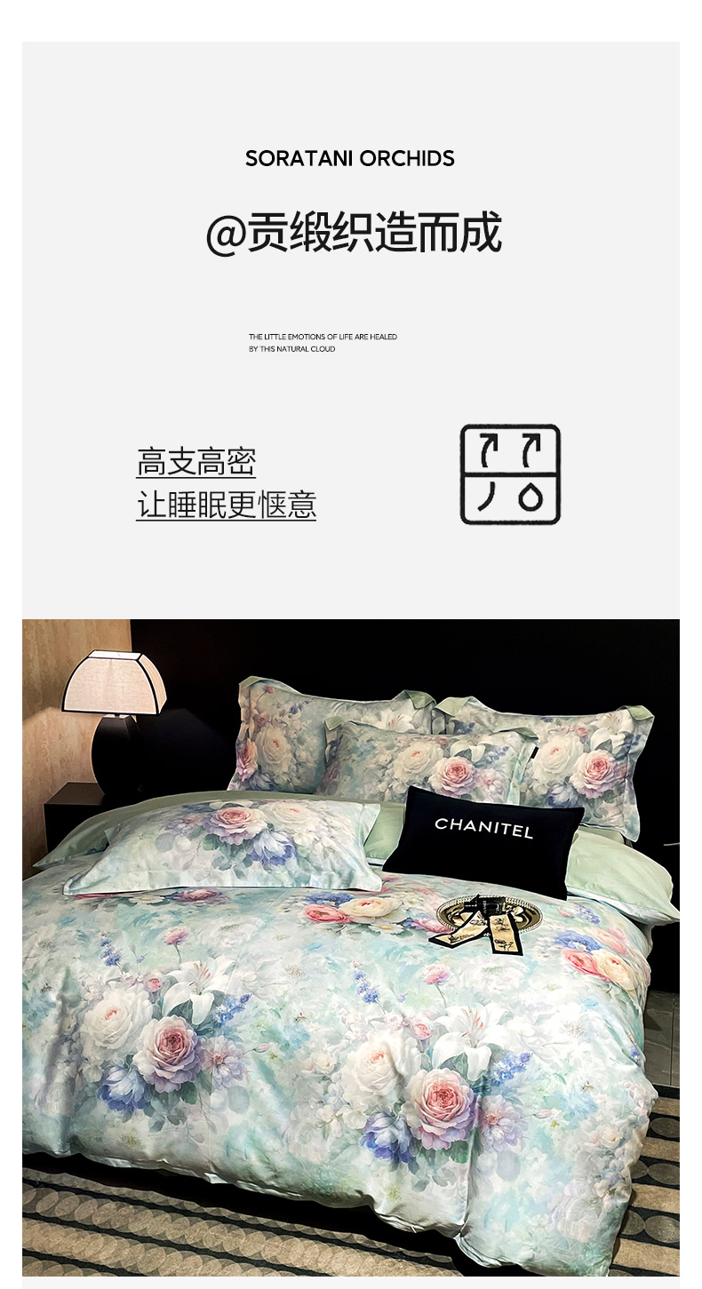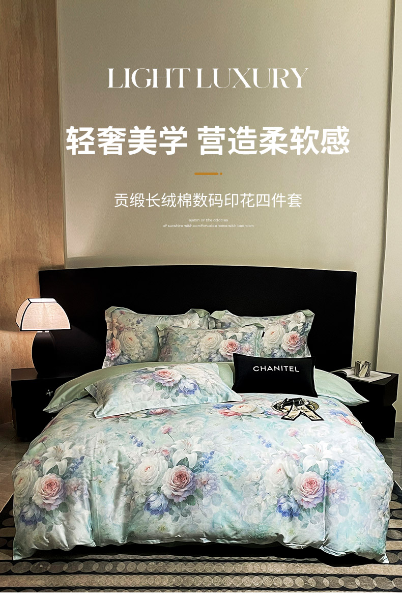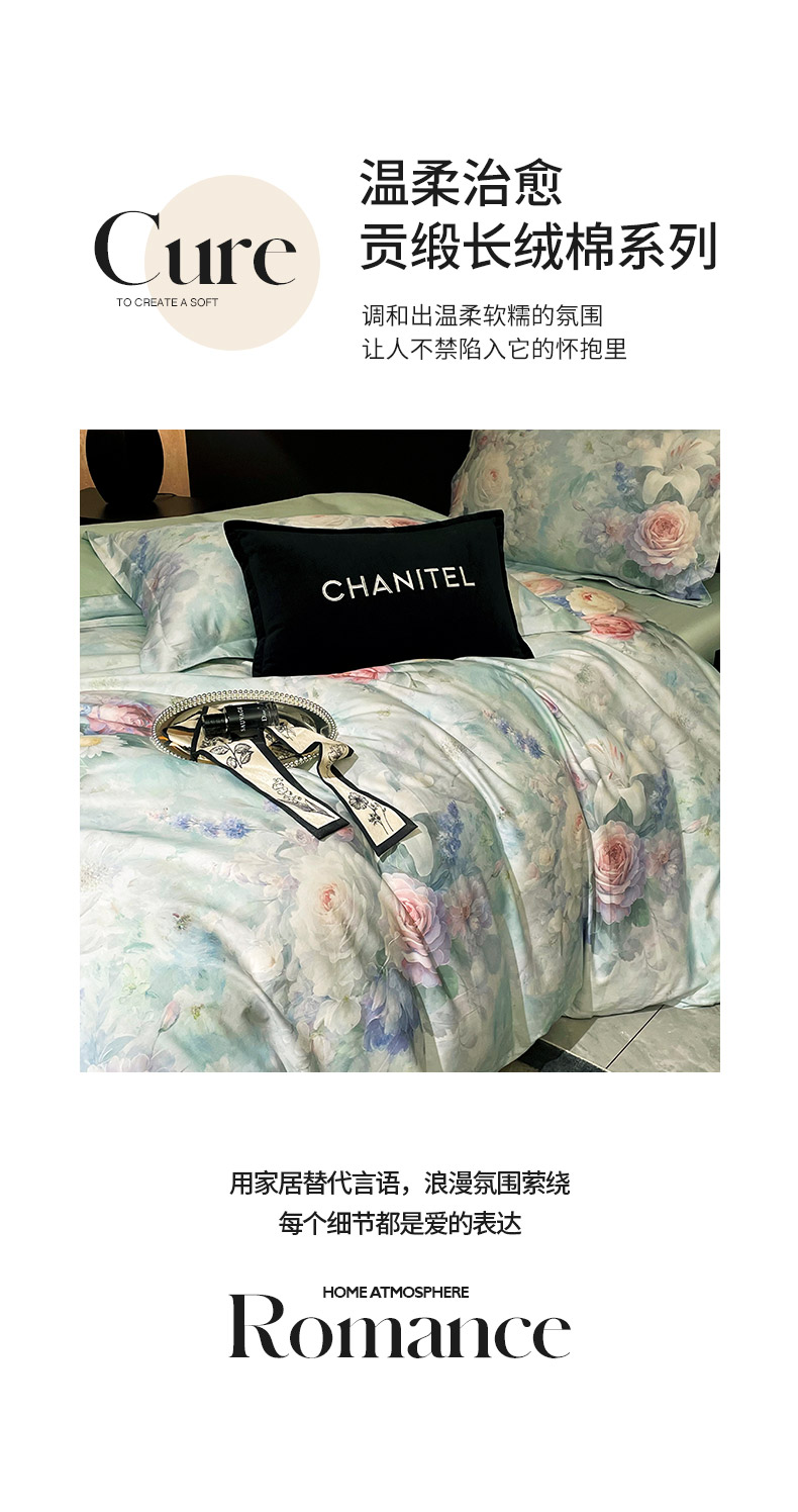 商品名称:大渔生活 2025新款贡缎长绒棉高品数码印花四件套 清柔花镜