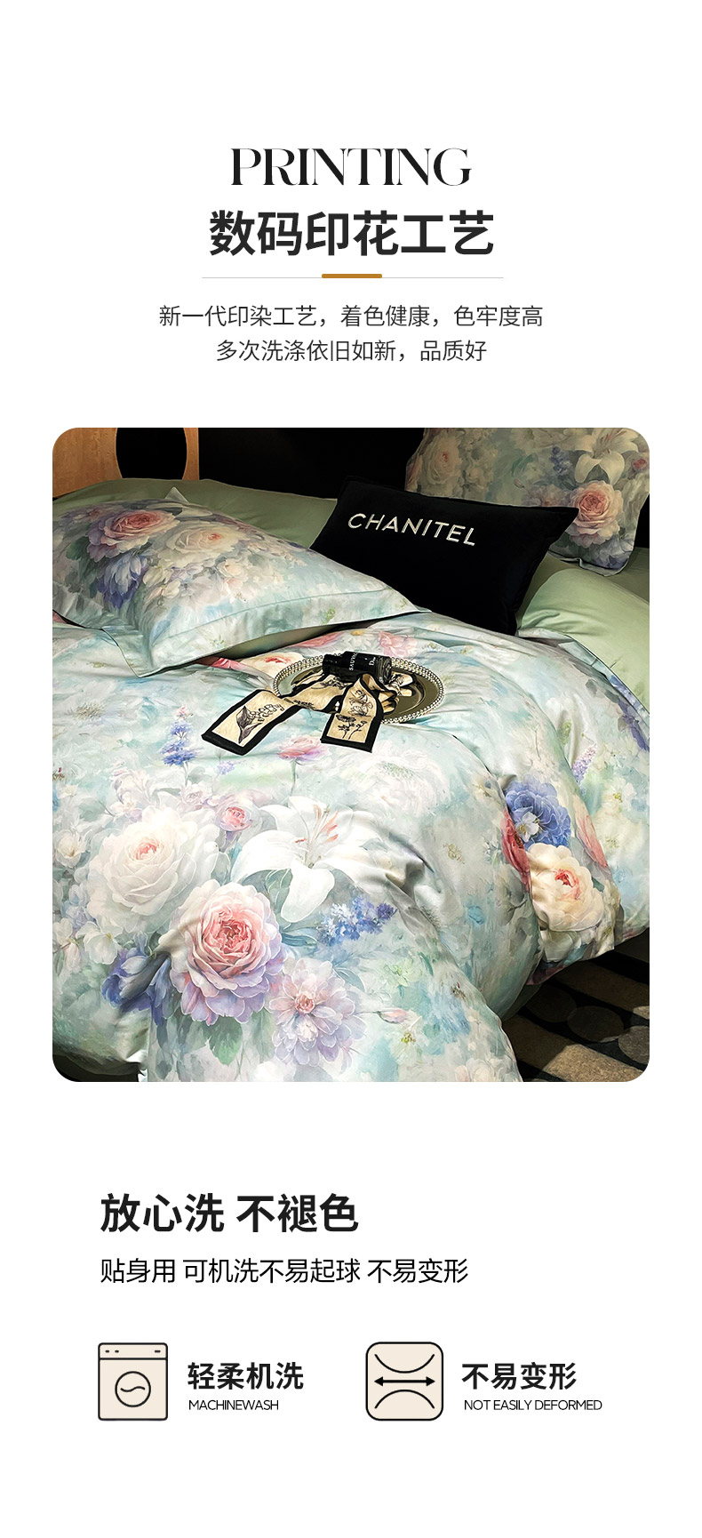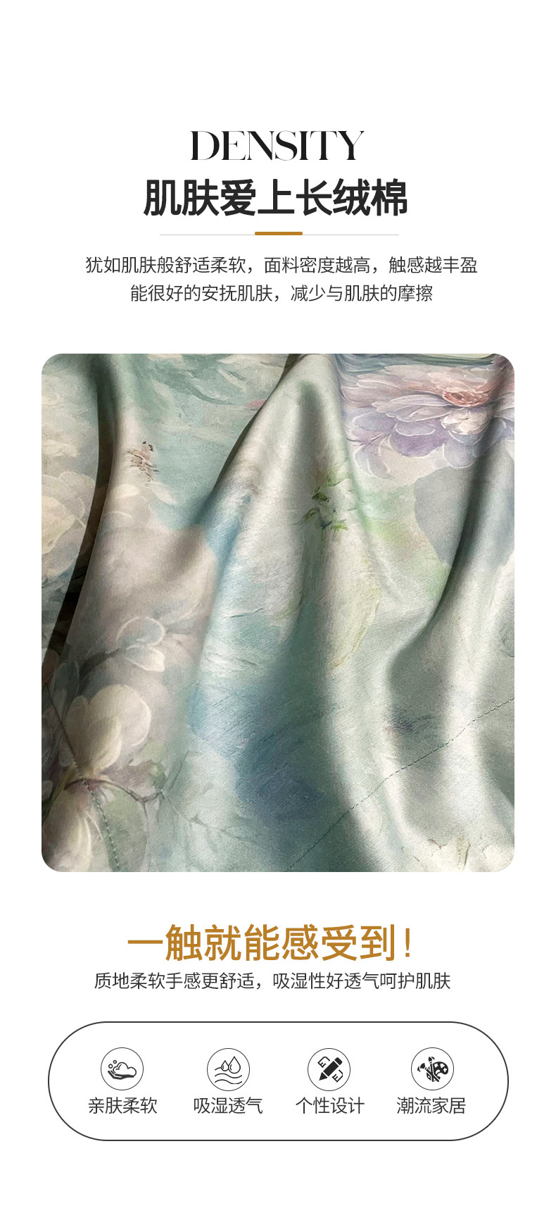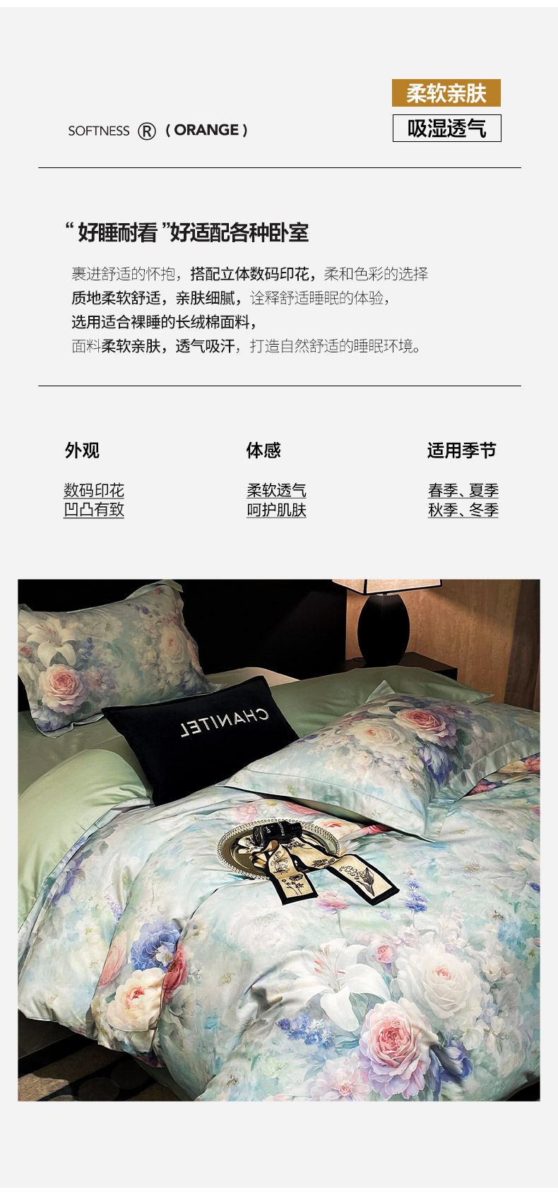 商品名称:大渔生活 2025新款贡缎长绒棉高品数码印花四件套 清柔花镜