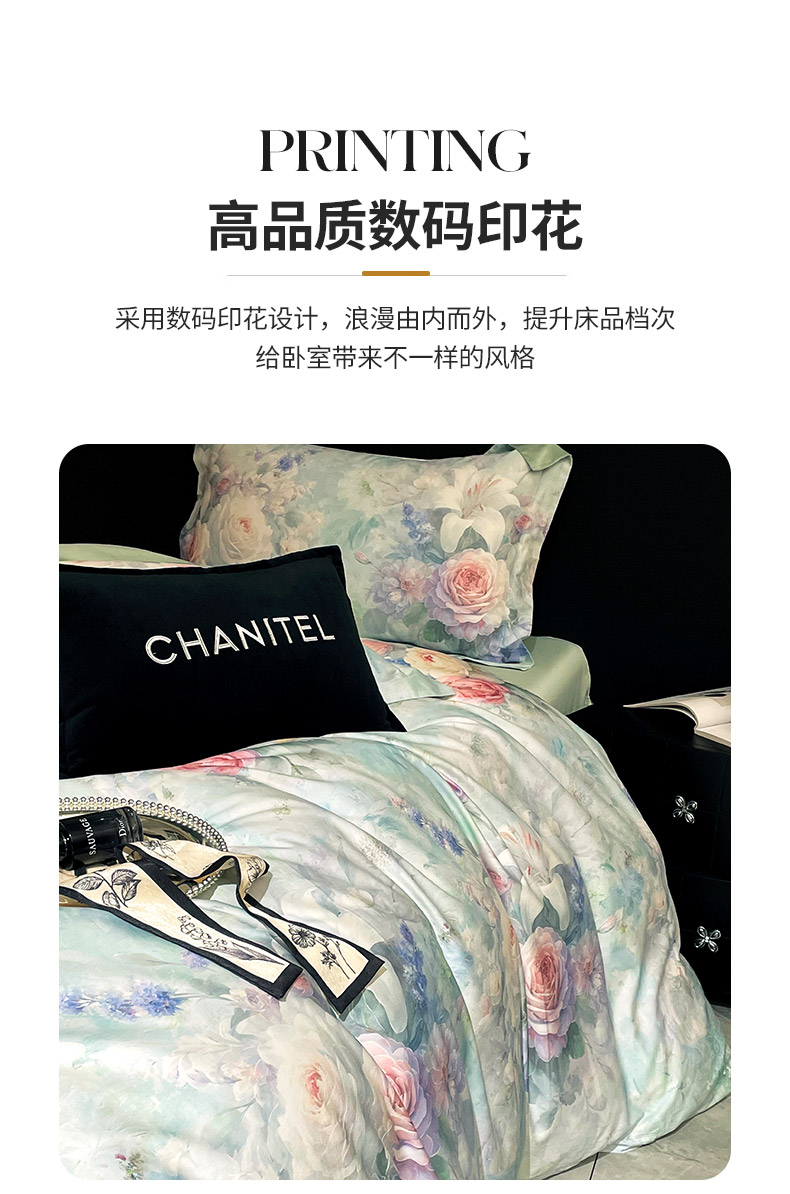 大渔生活 2025新款贡缎长绒棉高品数码印花四件套 清柔花镜