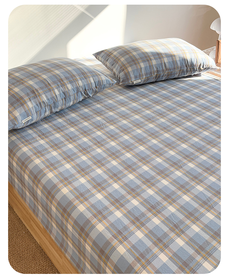 (总)居眠 2026新款单层色织水洗格子全棉床笠,单层款-摩登蓝卡条,单层款-摩登绿卡条