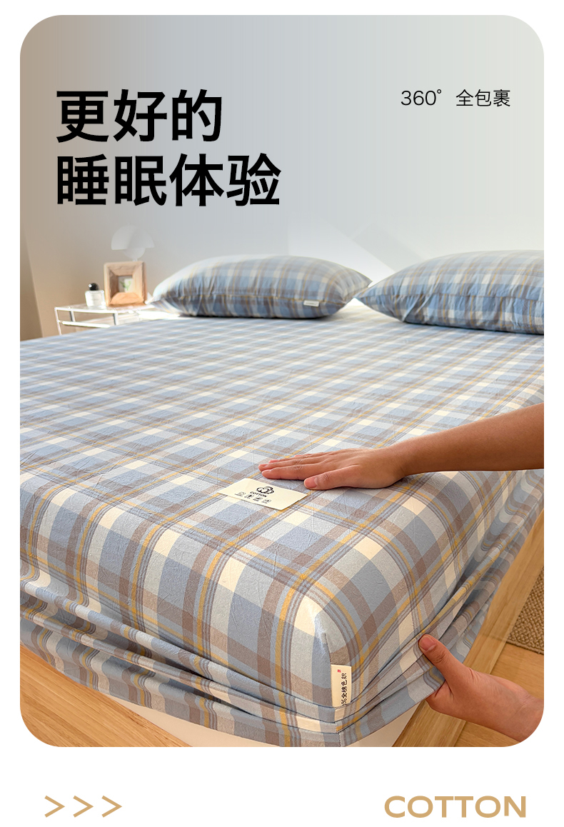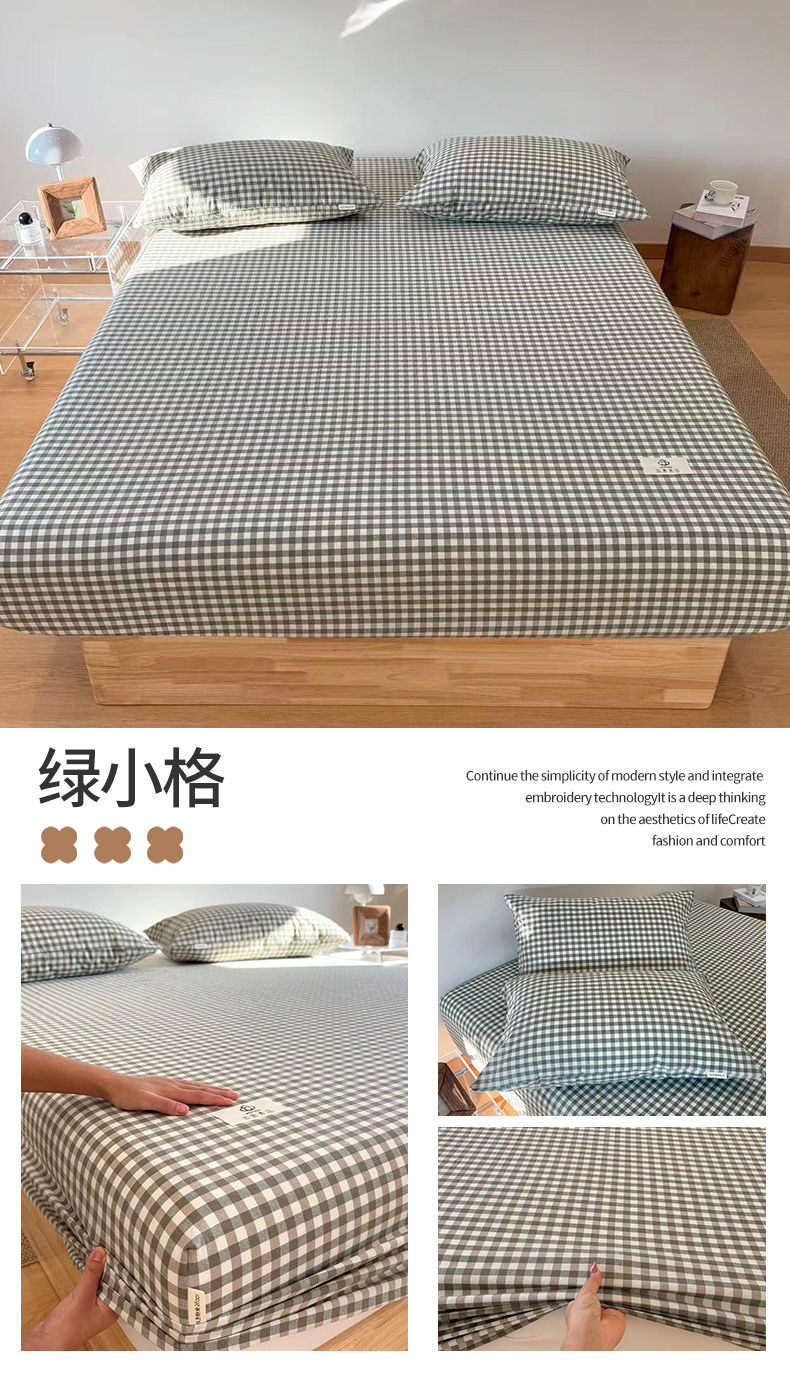 • 91家纺网 家纺一手货源 找家纺 (总)居眠 2026新款单层色织水洗格子全棉床笠,单层款-摩登蓝卡条,单层款-摩登绿卡条
