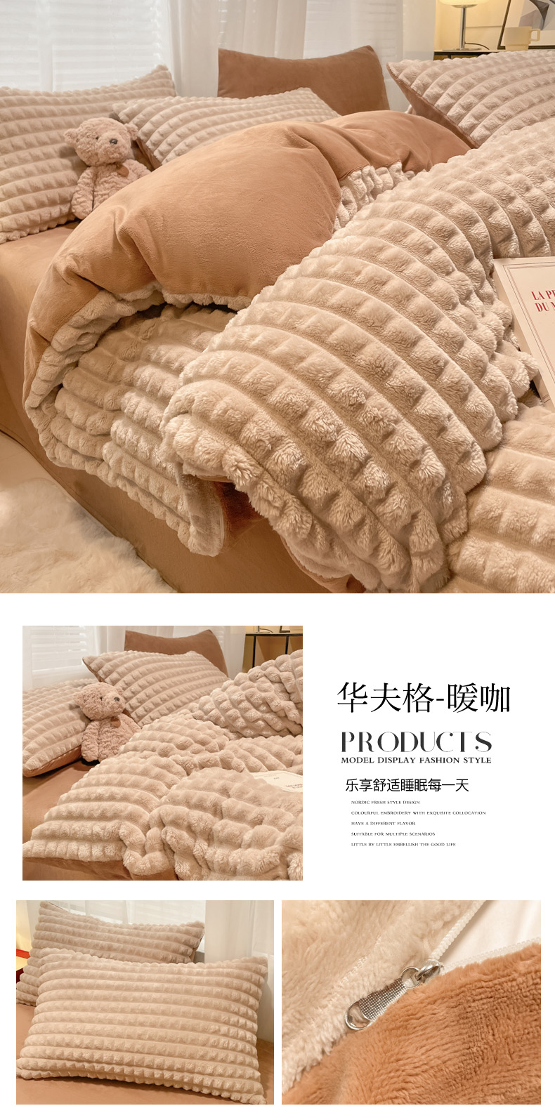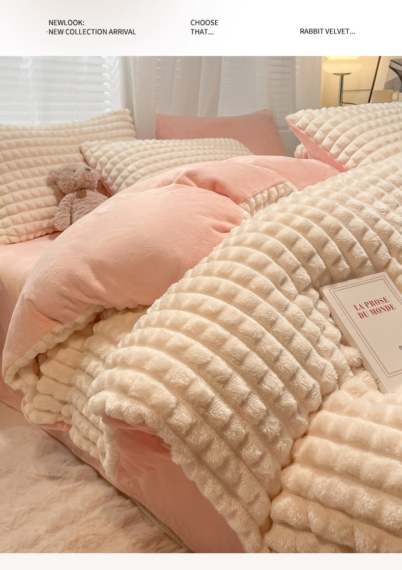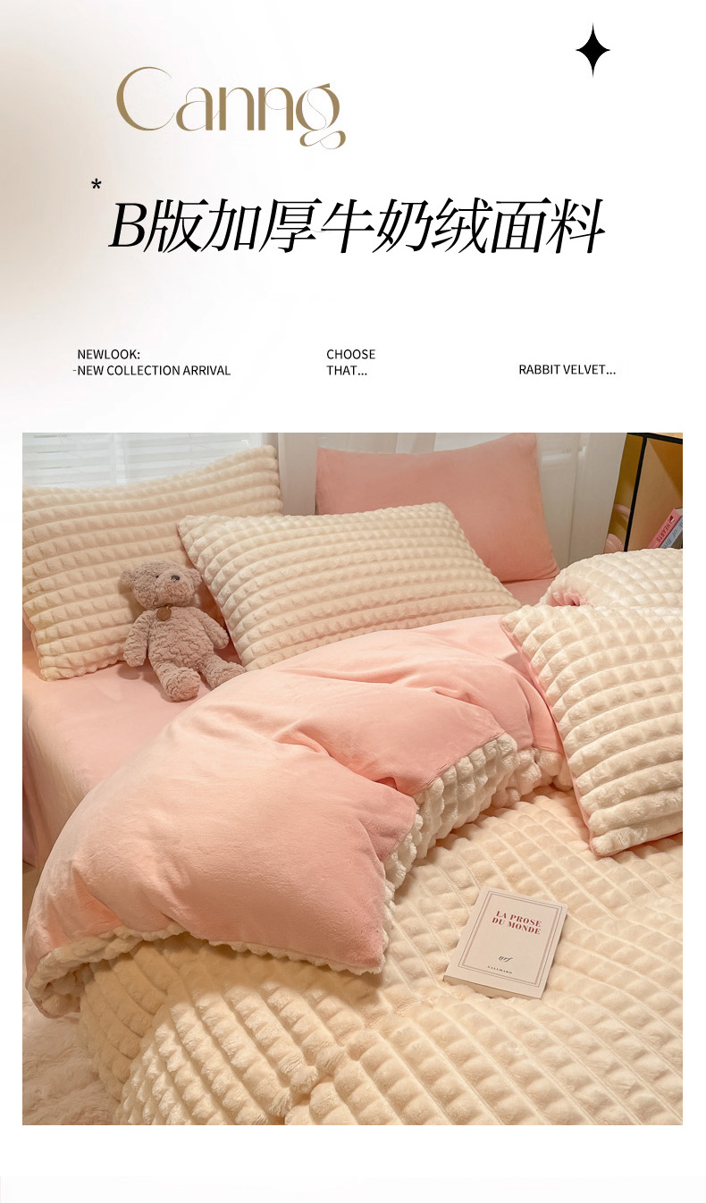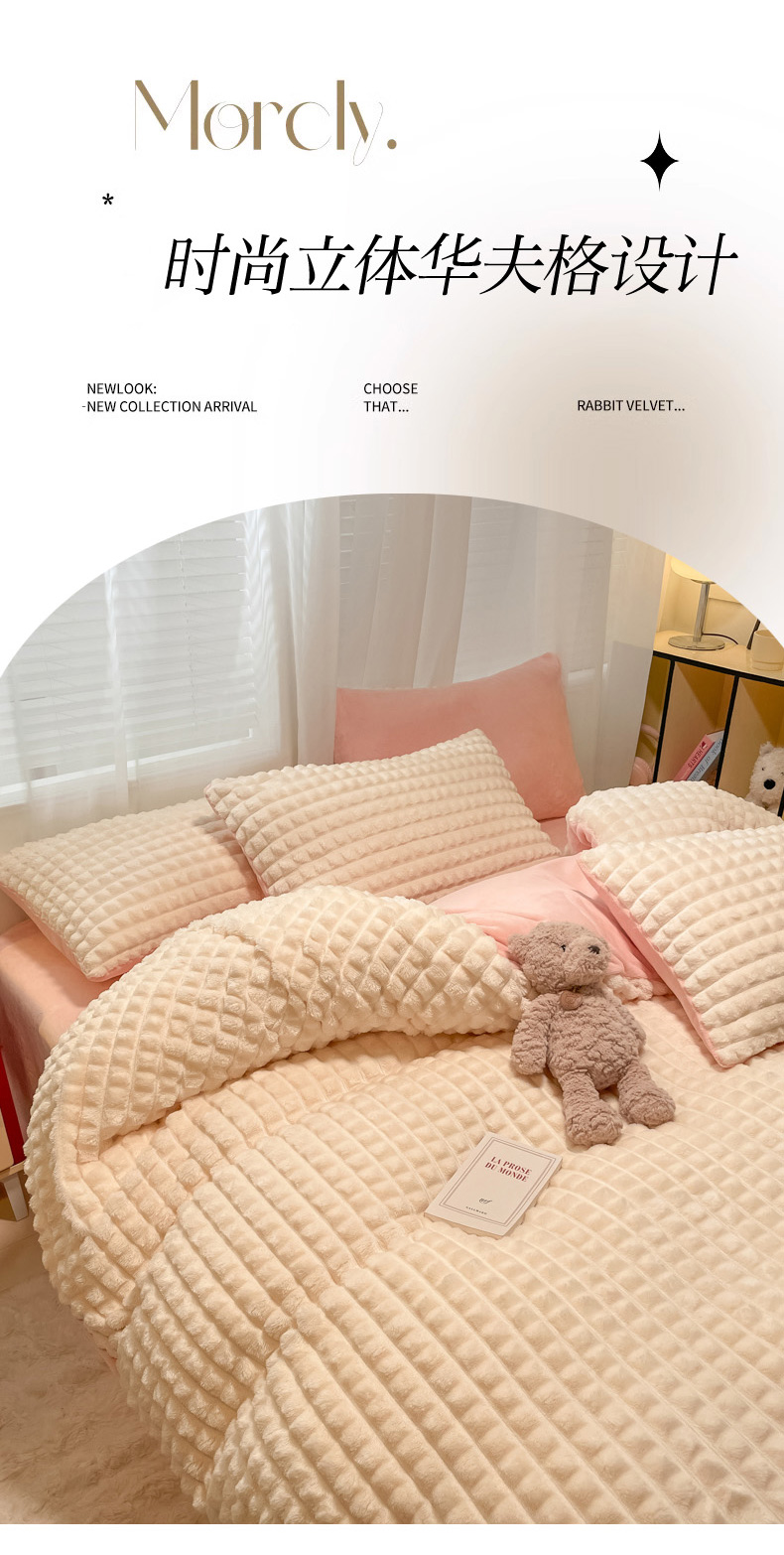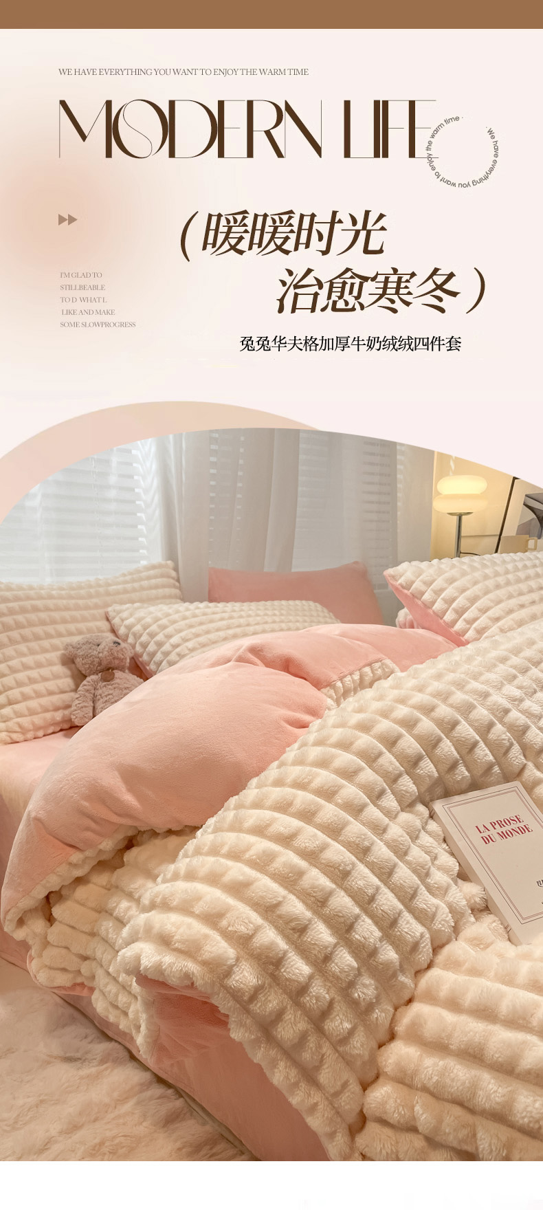 (总)女子家纺 2025新款兔兔绒加厚华夫格绒牛奶绒保暖四件套