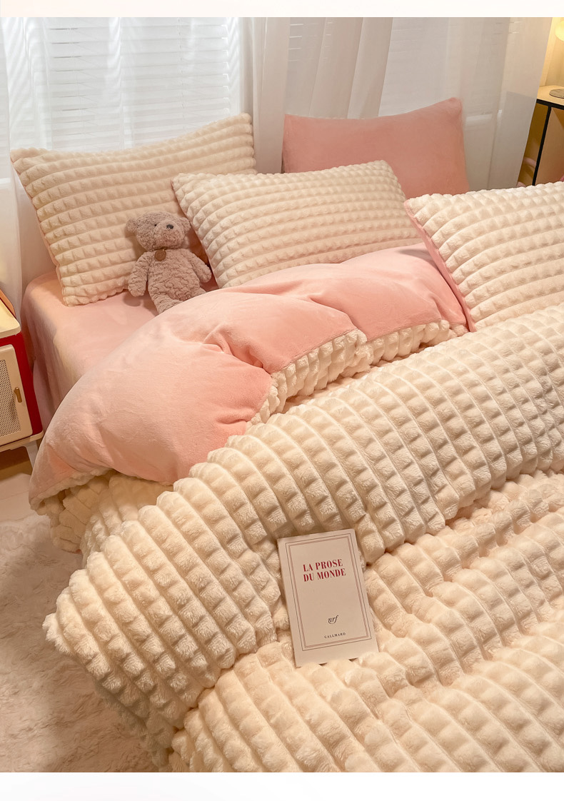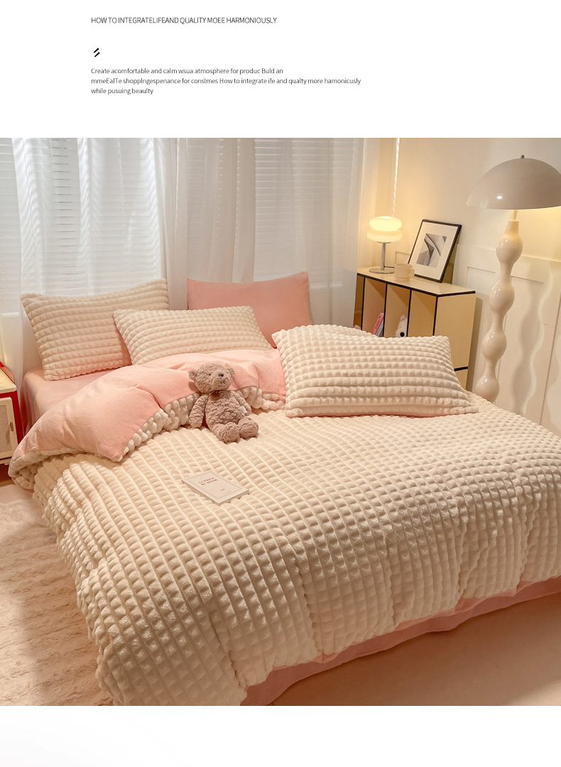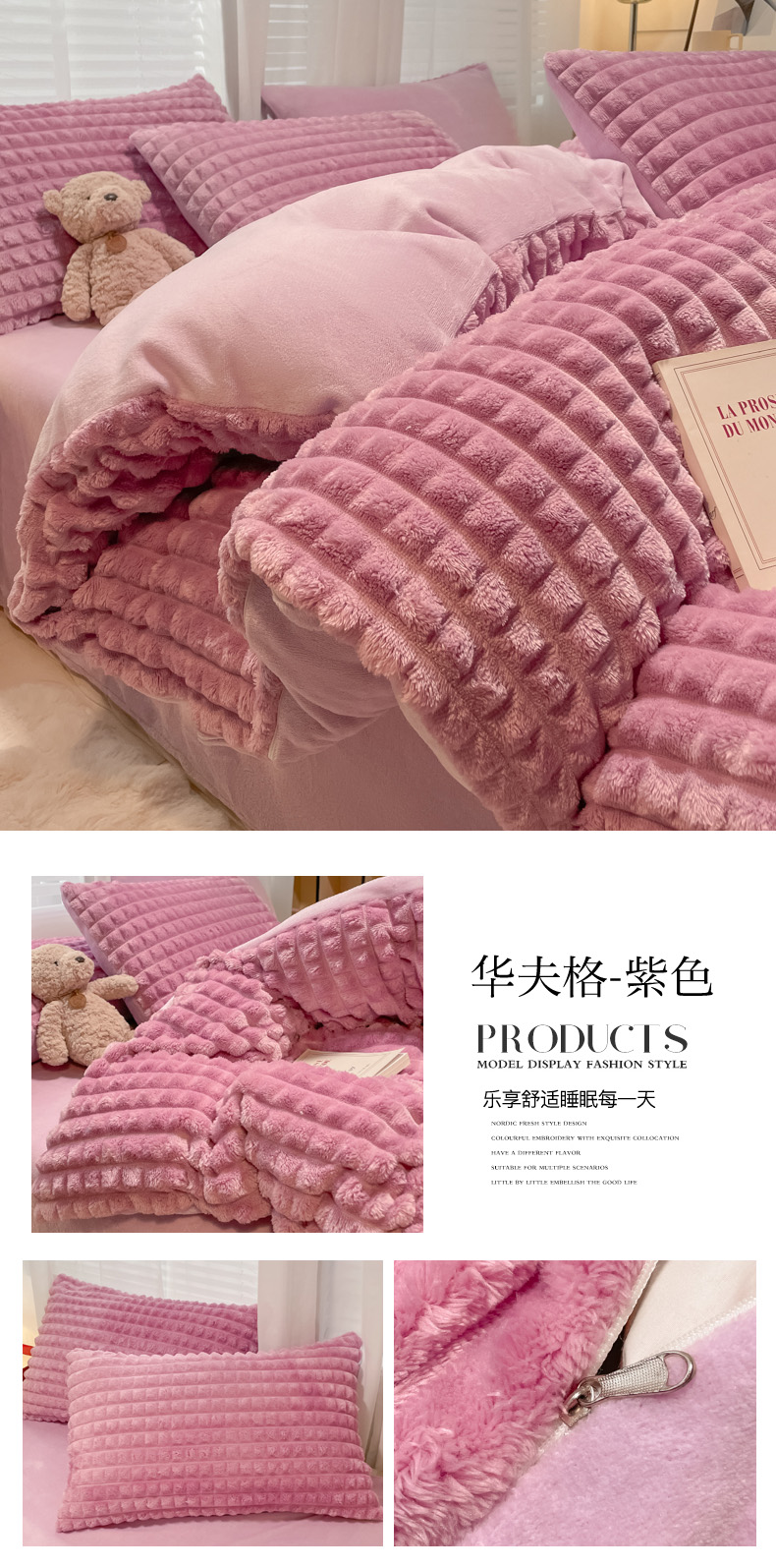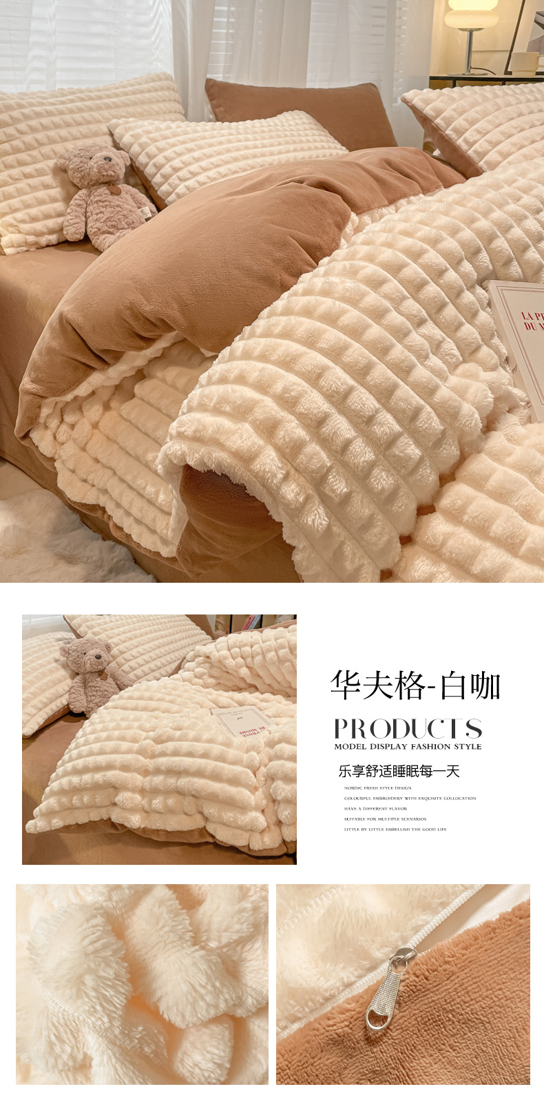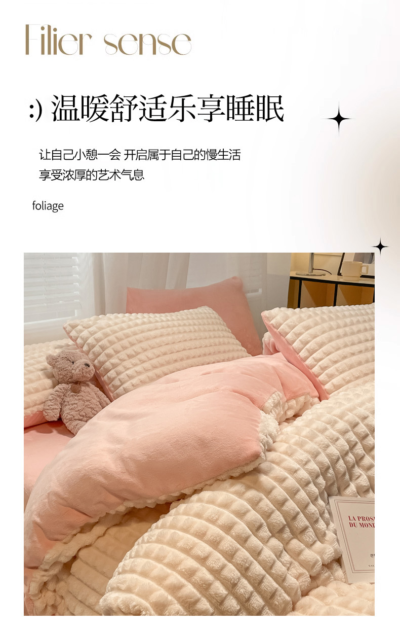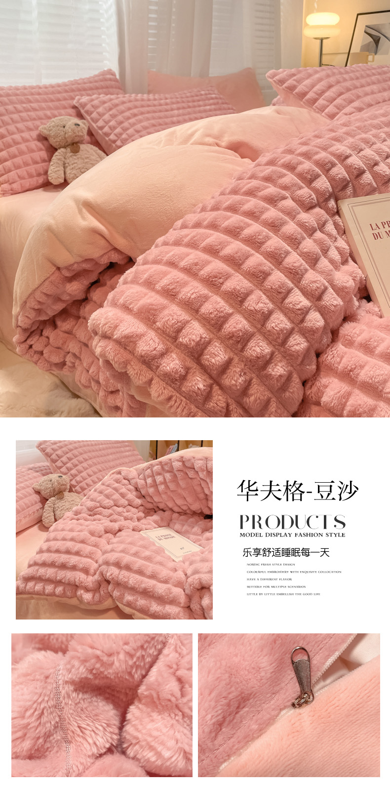 (总)女子家纺 2025新款兔兔绒加厚华夫格绒牛奶绒保暖四件套