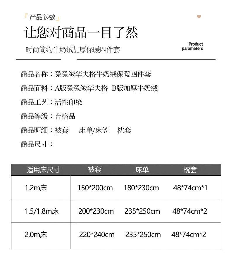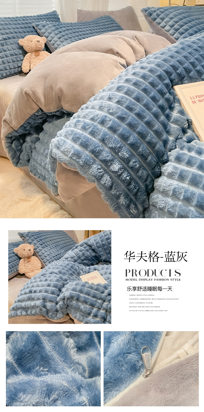 商品名称:(总)女子家纺 2025新款兔兔绒加厚华夫格绒牛奶绒保暖四件套
