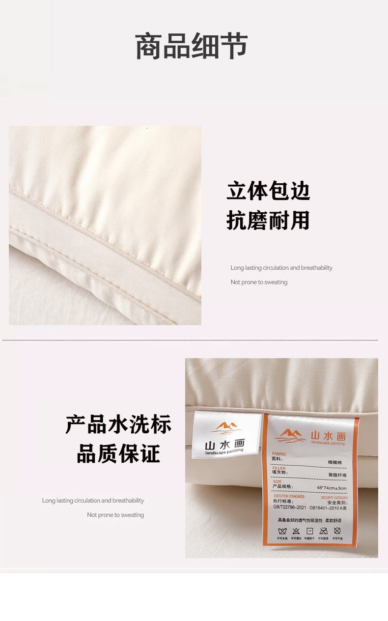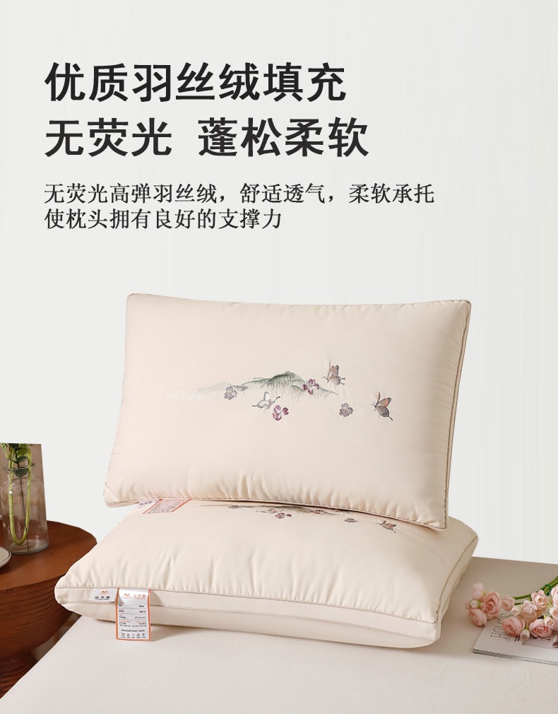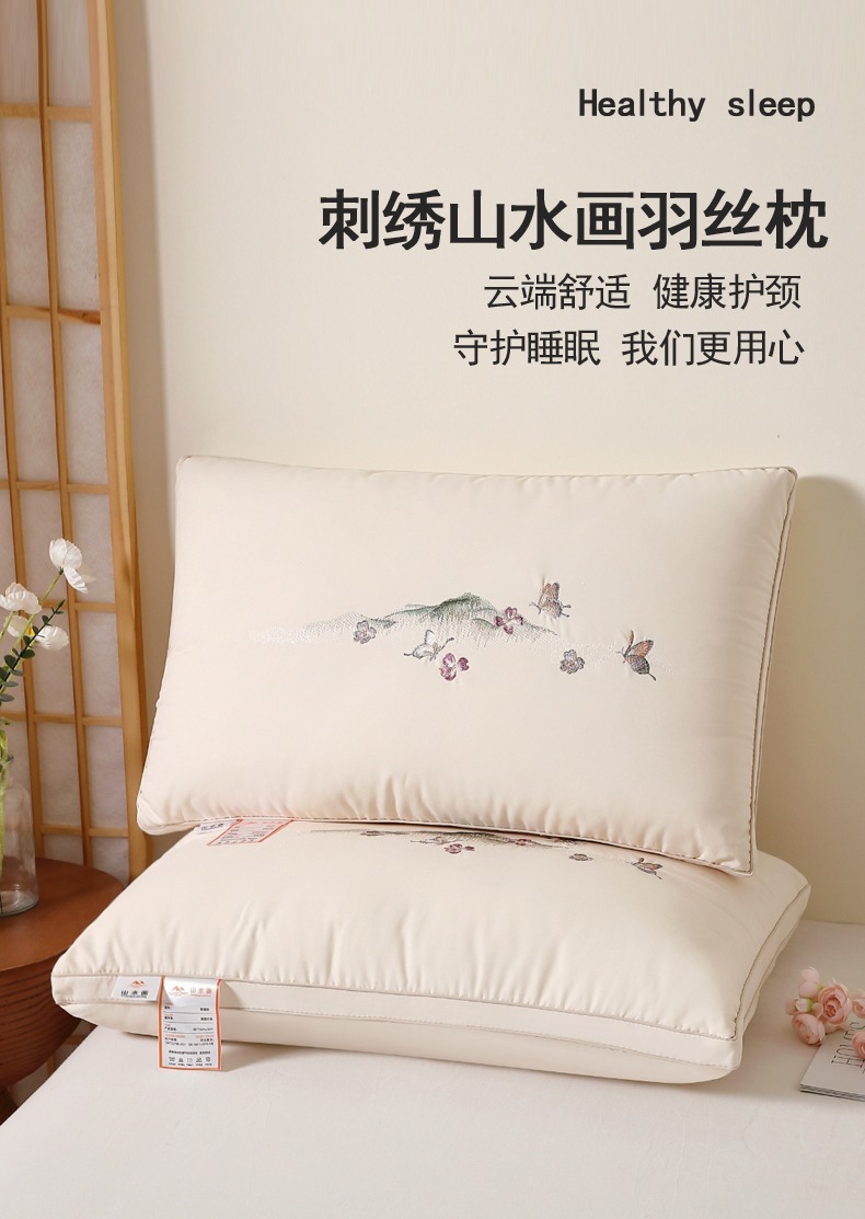 商品名称:佳尚枕芯 2025新款亲肤刺绣羽丝枕糯糯棉国风刺绣山水画枕芯枕头 山水画白色