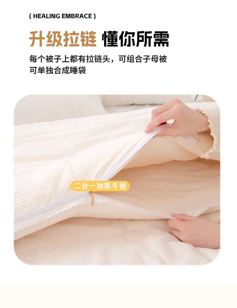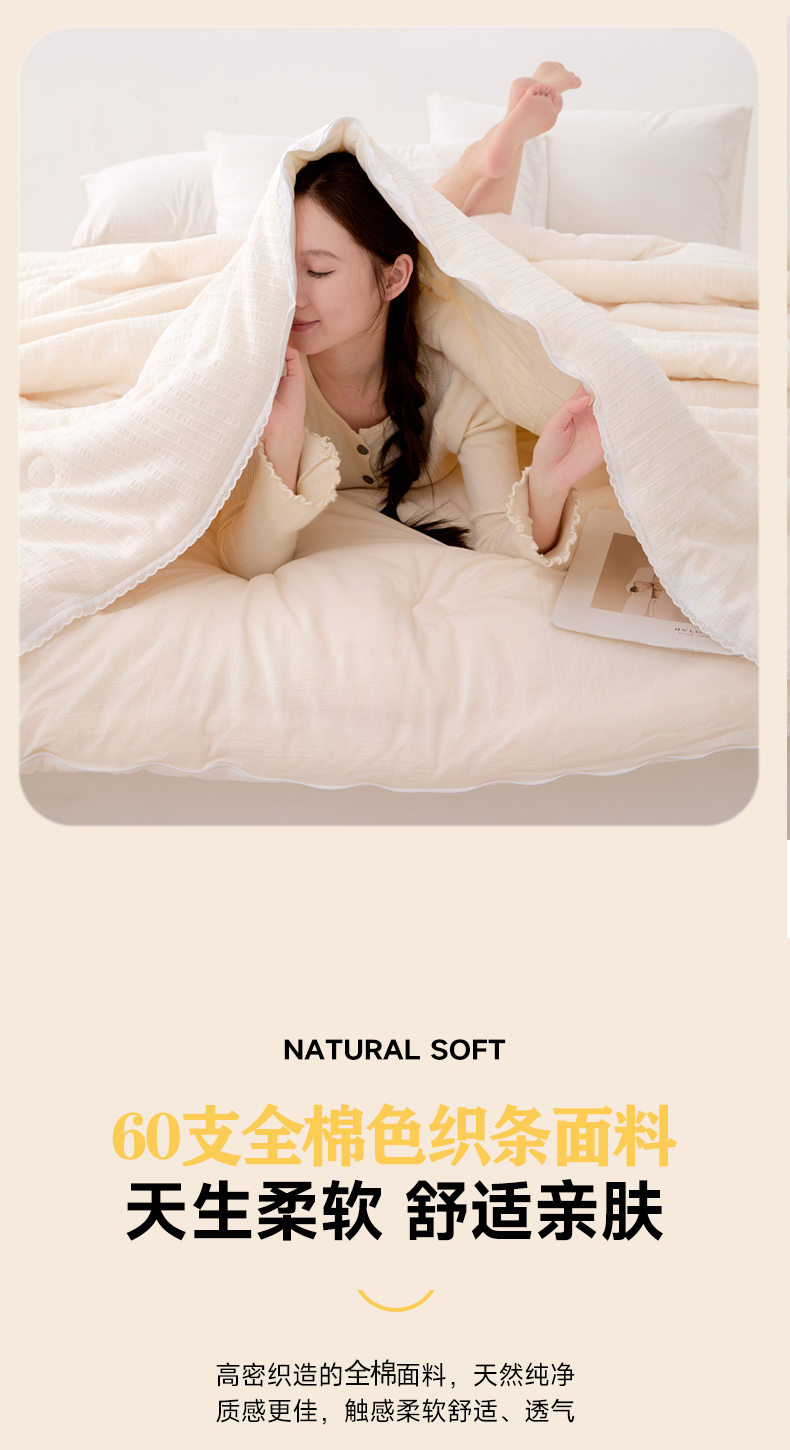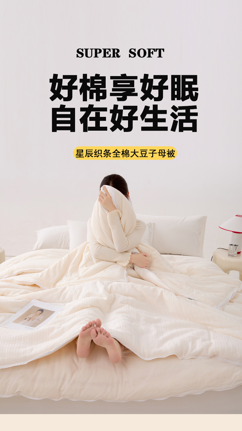 当前位置: 91家纺网 > 商品网购 > 被子 > 冬被 > VIP被业 2025新款星辰织条全棉大豆子母被冬被被芯 白色