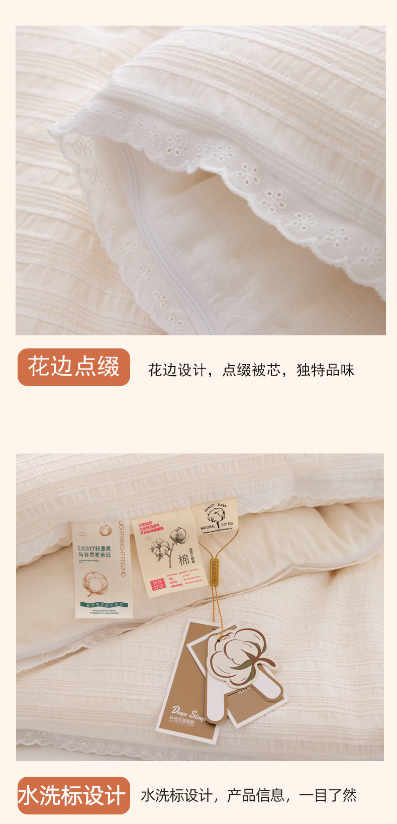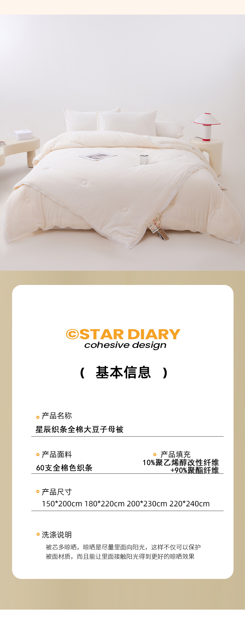 VIP被业 2025新款星辰织条全棉大豆子母被冬被被芯 白色
