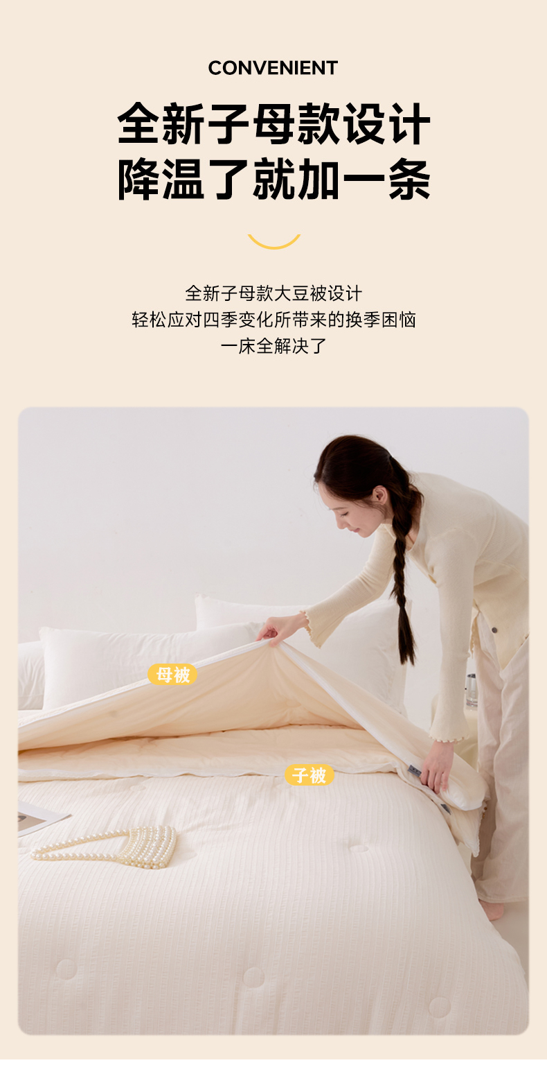 (总)VIP被业 2025新款华夫格提花大豆子母被二合一四季被被子被芯,奶昔白,抹茶绿,浅灰,清新蓝,仙女粉