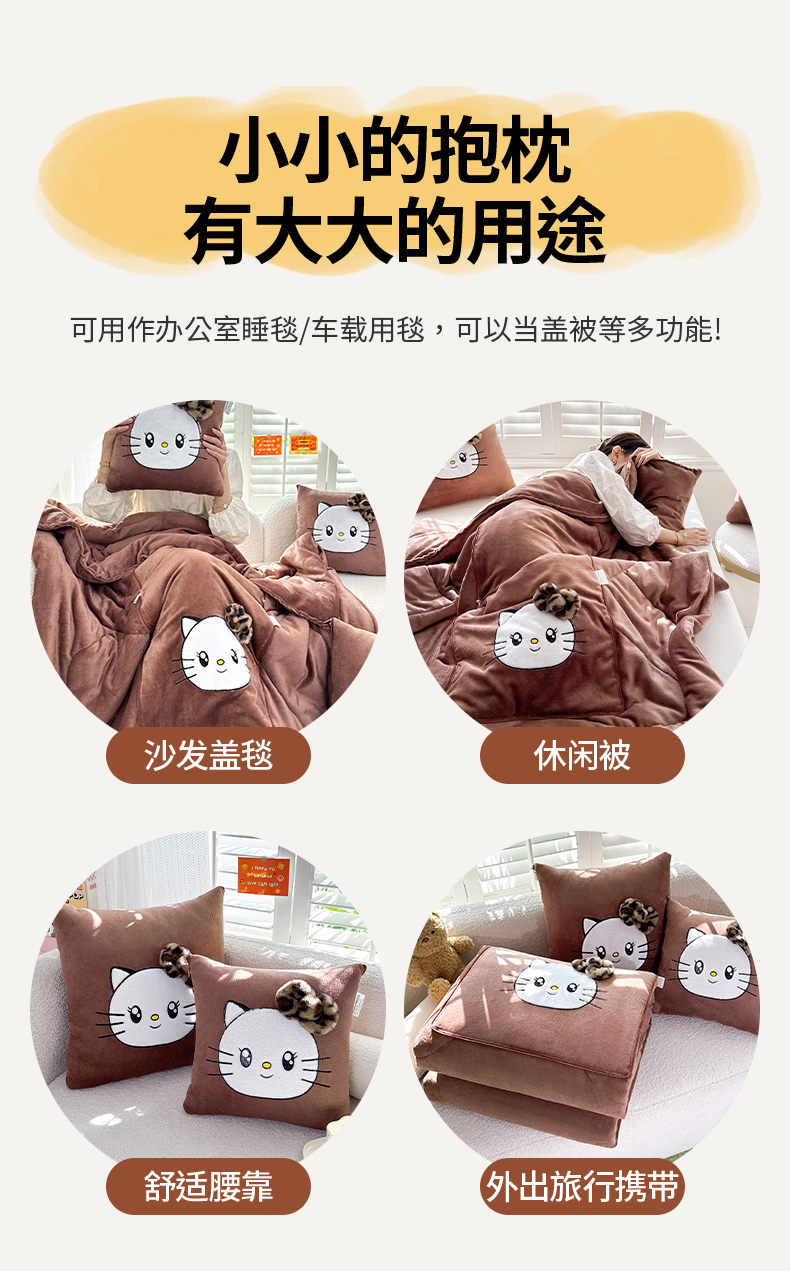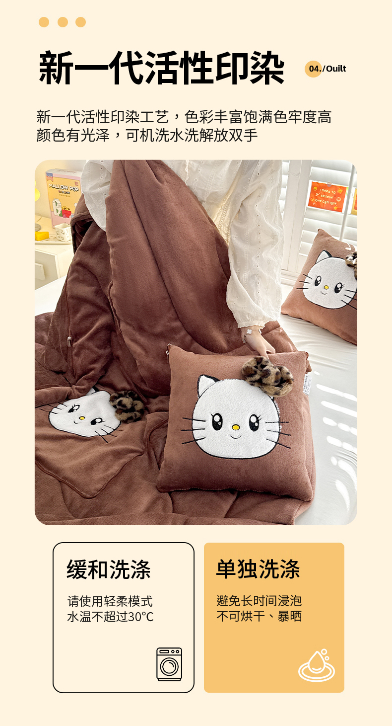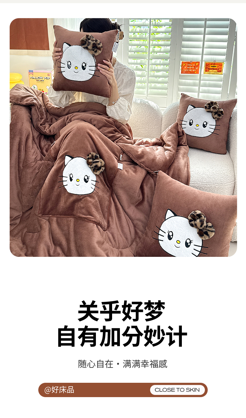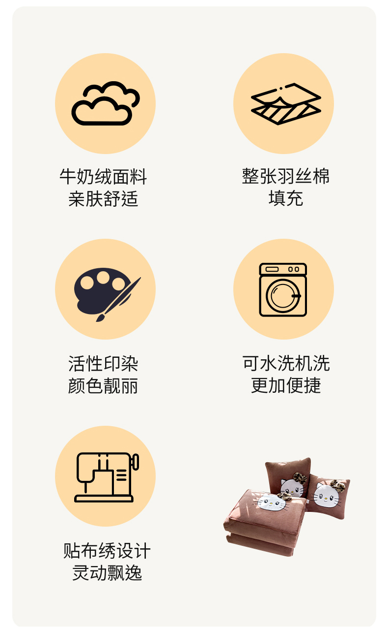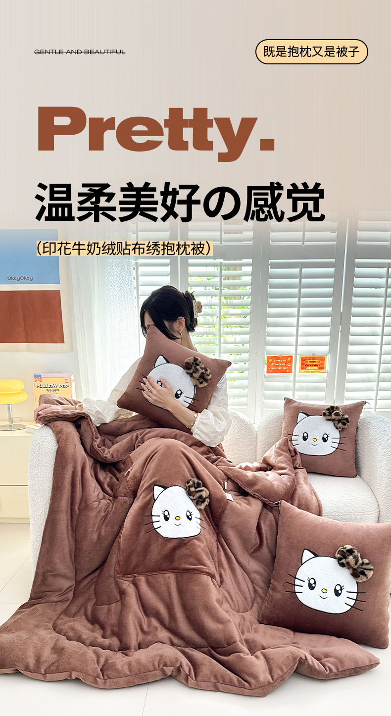 商品名称:(总)宝马家纺(原梦童画) 2025新款牛奶绒贴布绣抱枕被可爱猫咪