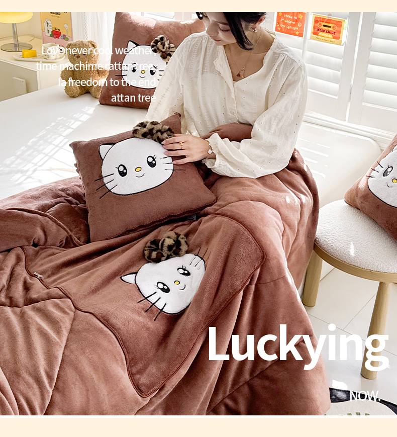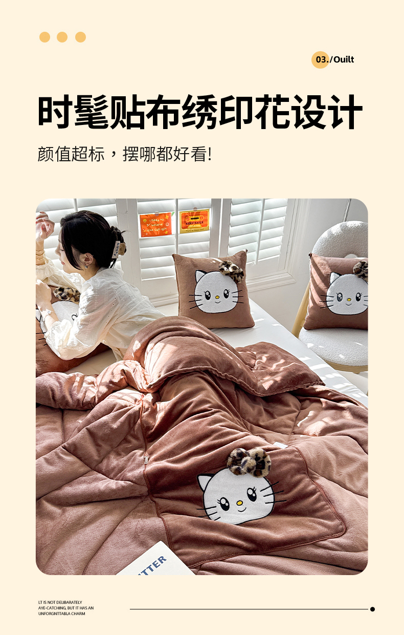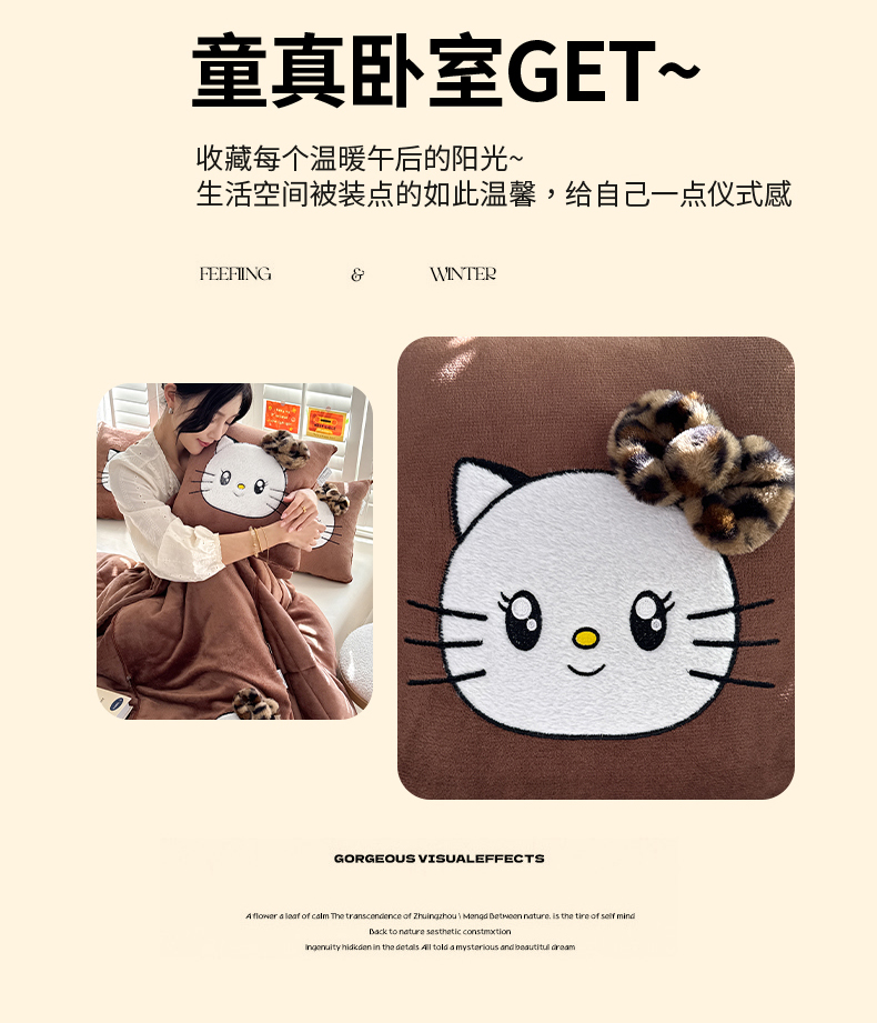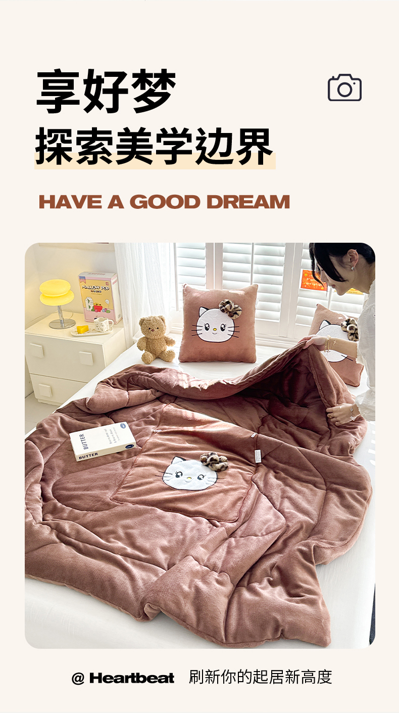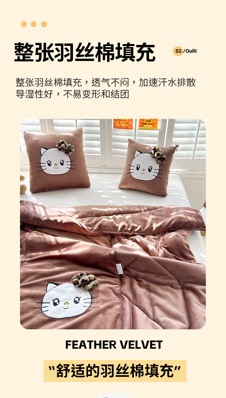 商品名称:(总)宝马家纺(原梦童画) 2025新款牛奶绒贴布绣抱枕被可爱猫咪