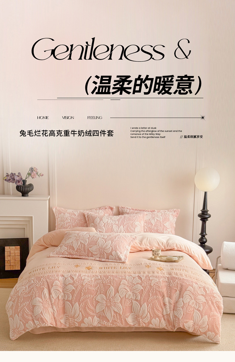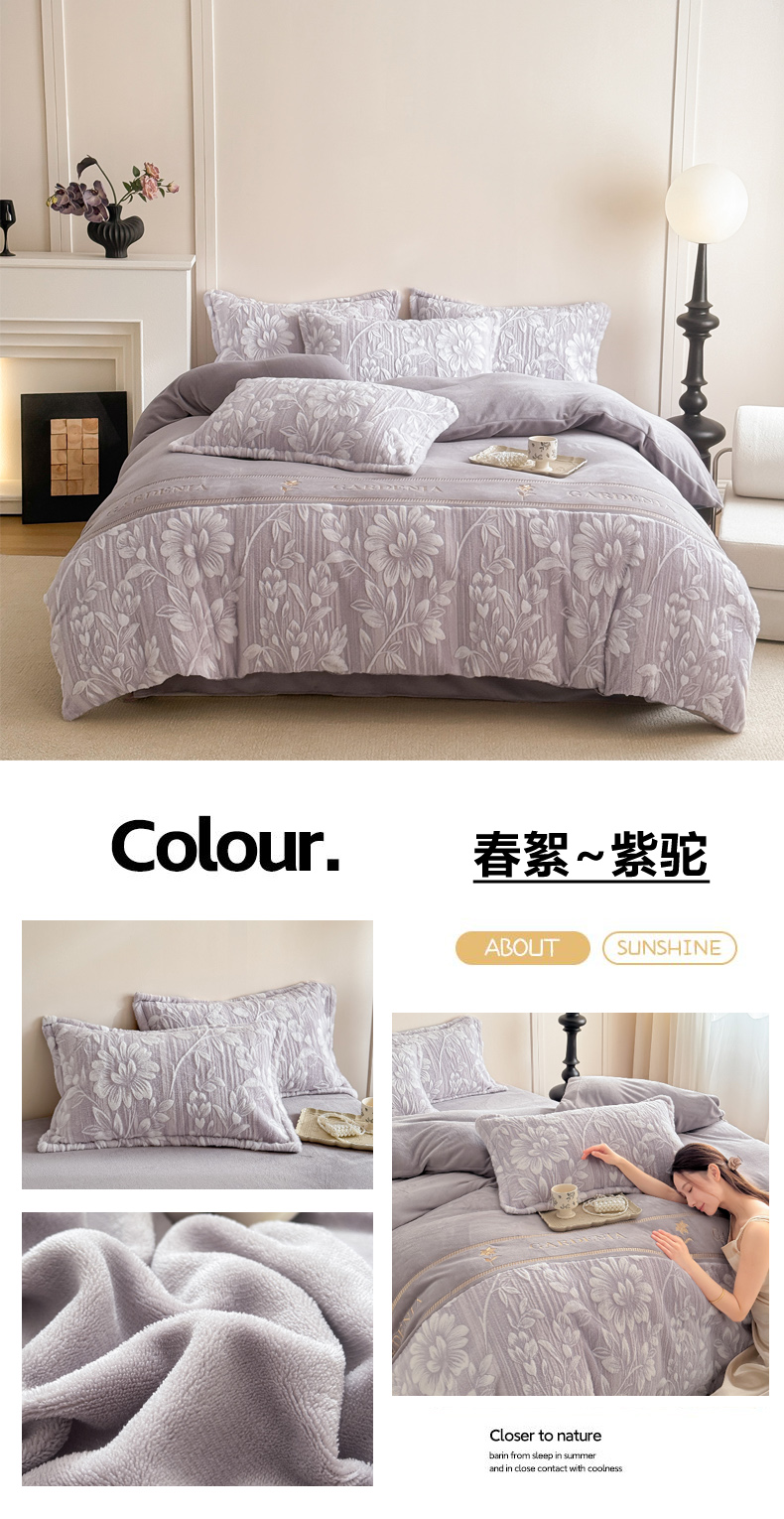 当前位置: 91家纺网 > 商品网购 > 床品套件 > 四件套 > 牛奶绒四件套 > 米可 2025新款兔毛烂花牛奶绒绣花四件套 春絮-蓝灰