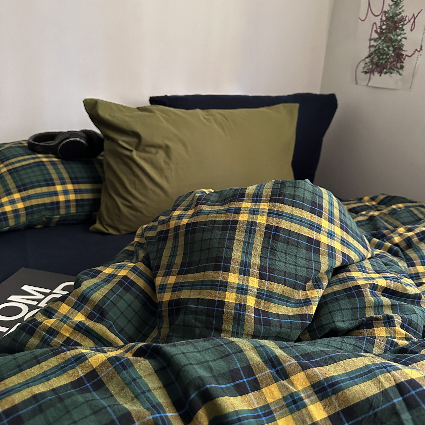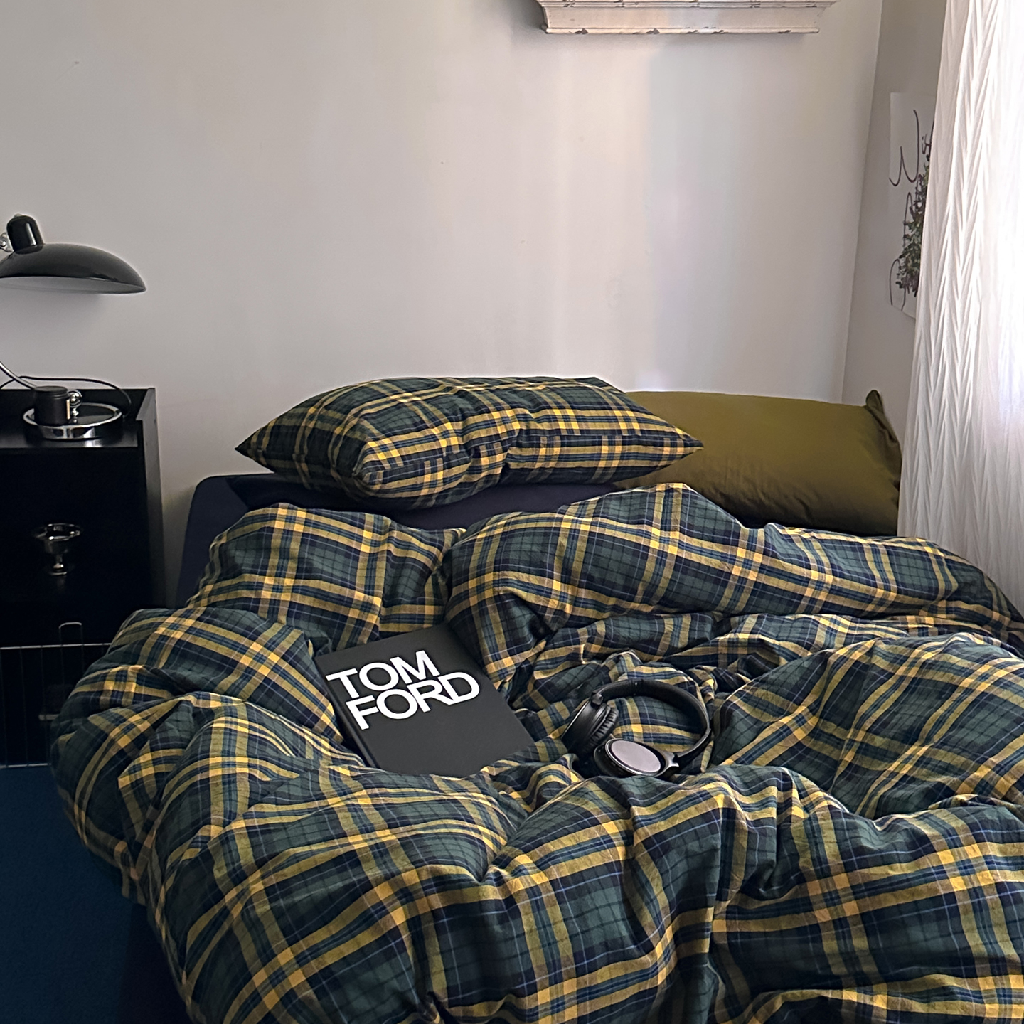 当前位置: 91家纺网 > 商品网购 > 床品套件 > 四件套 > 色织四件套 > 柚可家居 2026新款色织水洗棉全棉四件套-查尔斯诗集(券后标准不低于258元,加大不低于278元)会员-5元 查尔斯诗集(枕套格子+藏蓝)