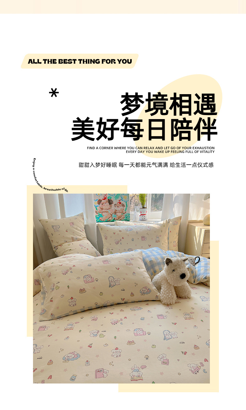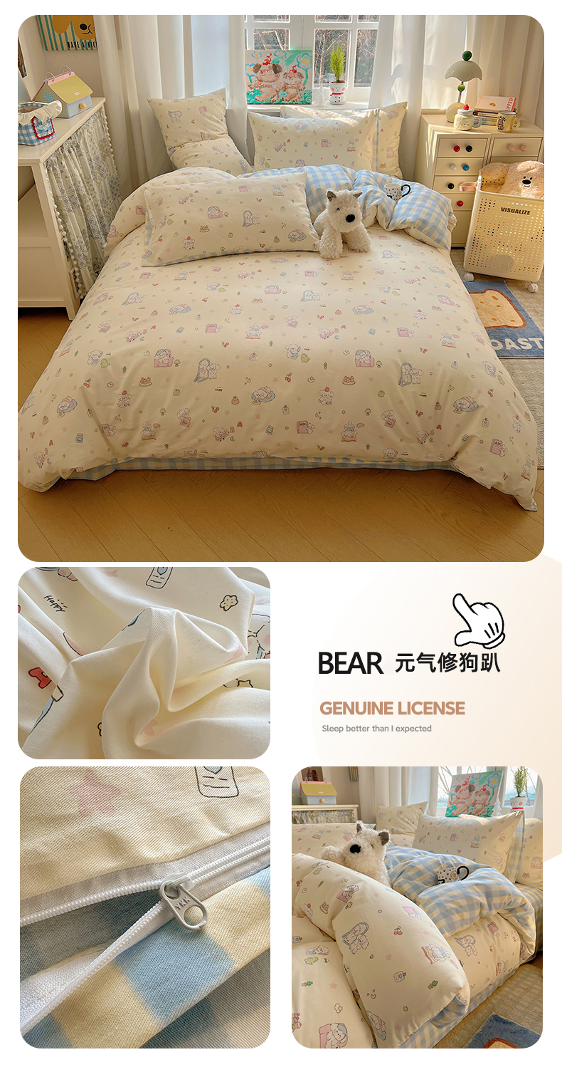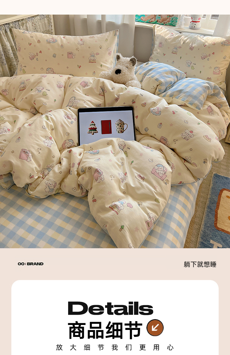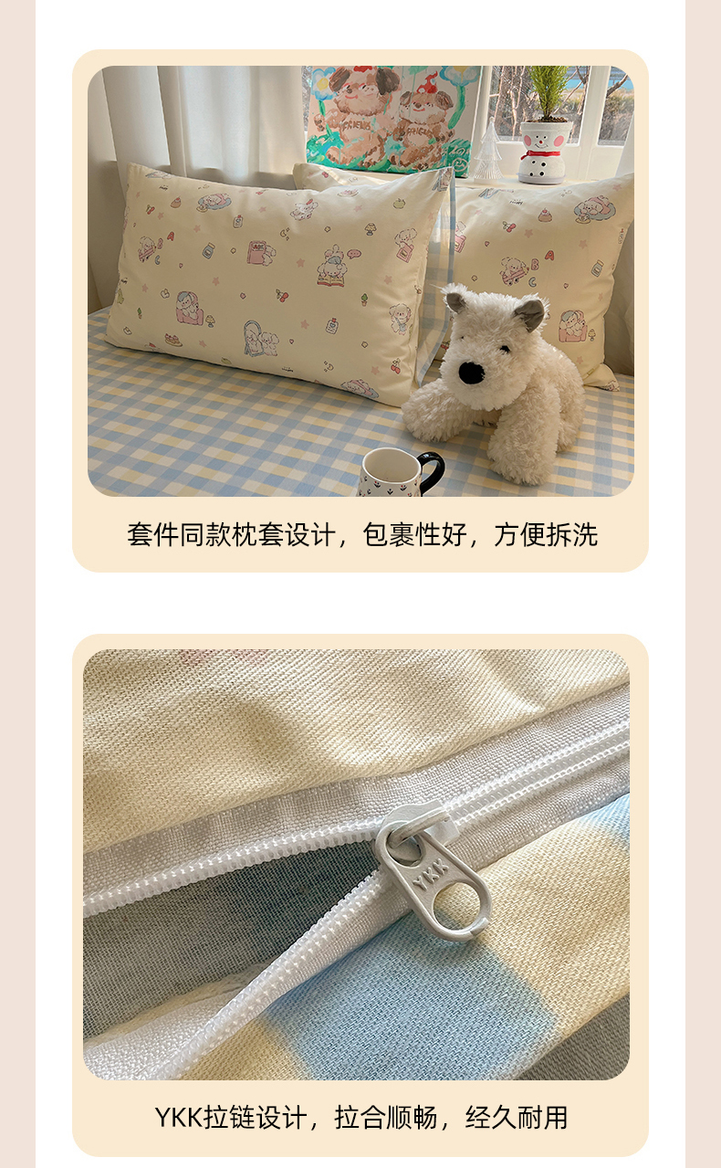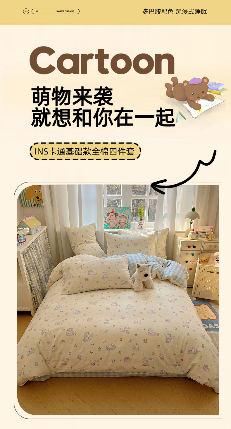 当前位置: 91家纺网 > 商品网购 > 床品套件 > 四件套 > 全棉普通四件套 > 六巷胡同 2026春夏新款INS卡通基础款全棉纯棉四件套-系列一 元气修狗趴