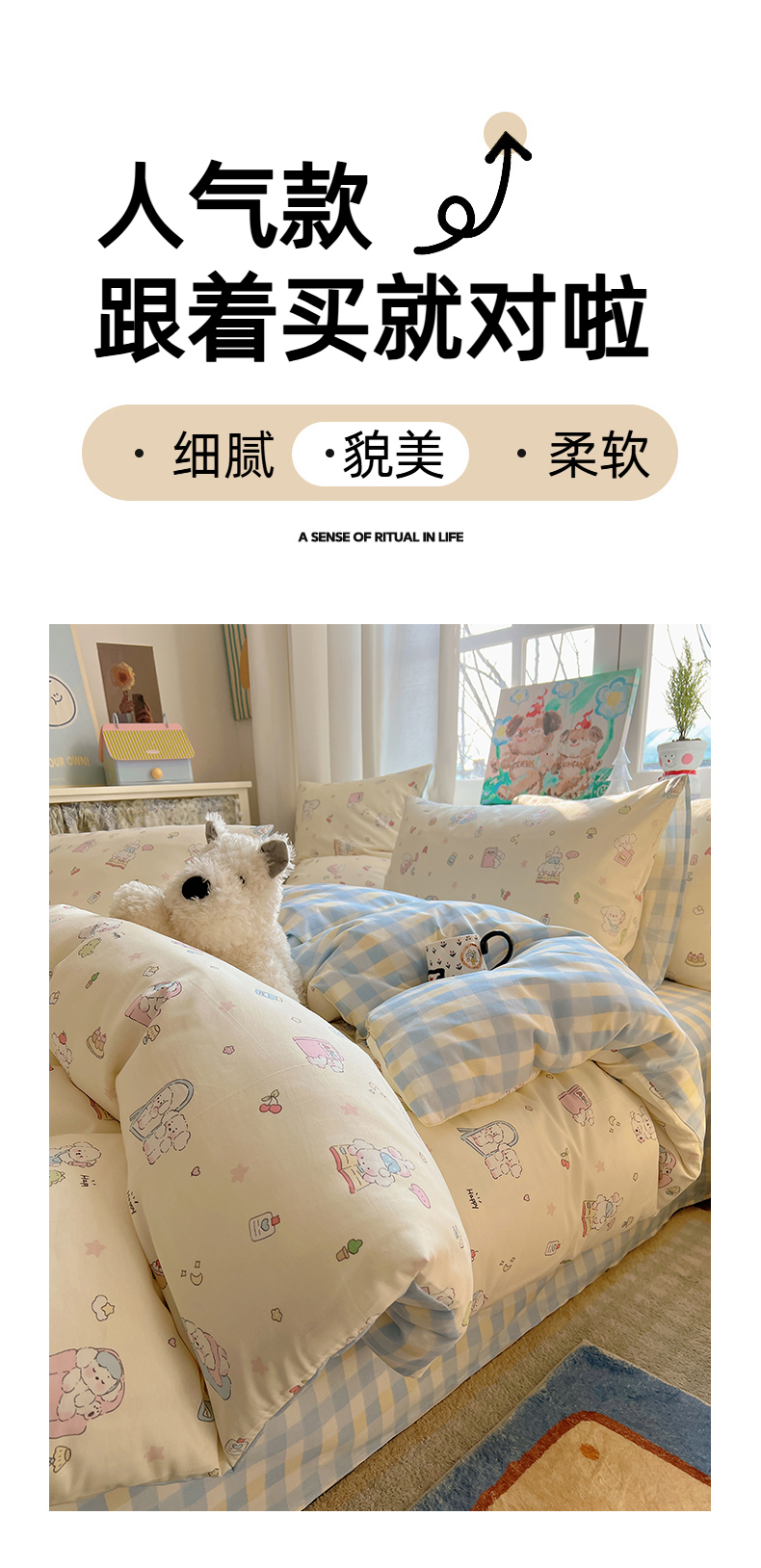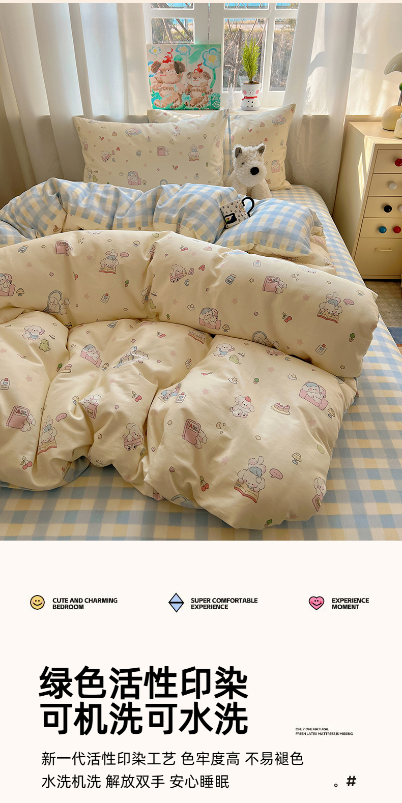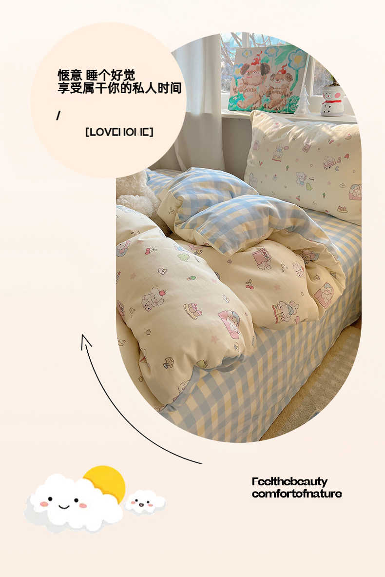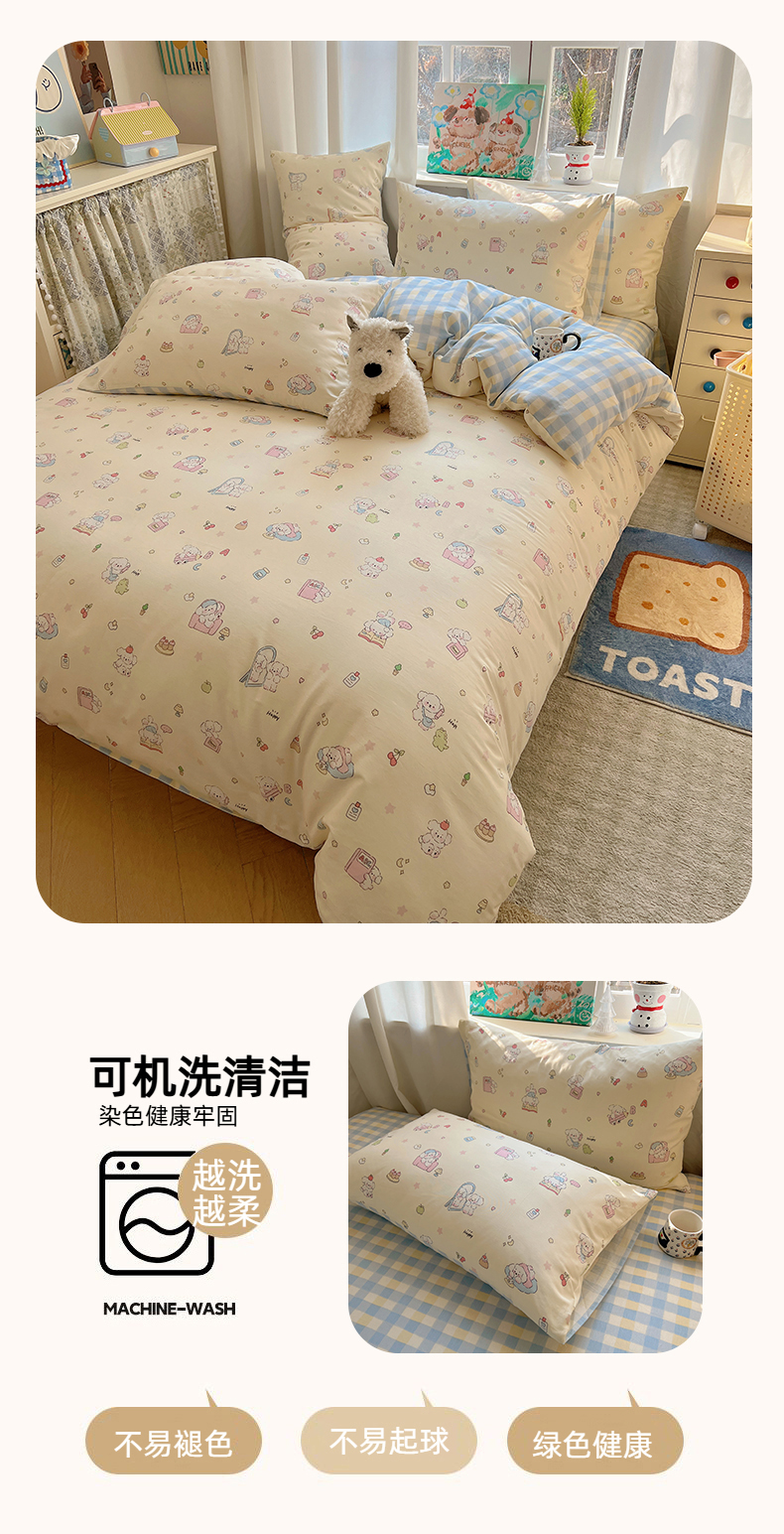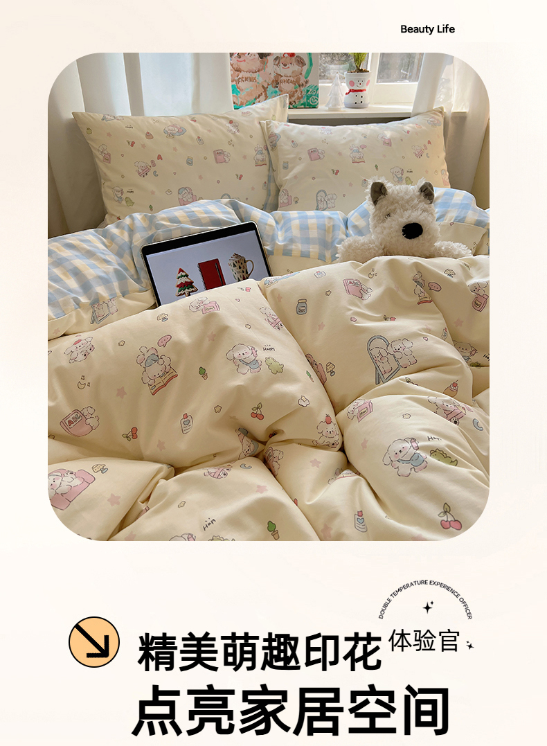 当前位置: 91家纺网 > 商品网购 > 床品套件 > 四件套 > 全棉普通四件套 > 六巷胡同 2026春夏新款INS卡通基础款全棉纯棉四件套-系列一 元气修狗趴