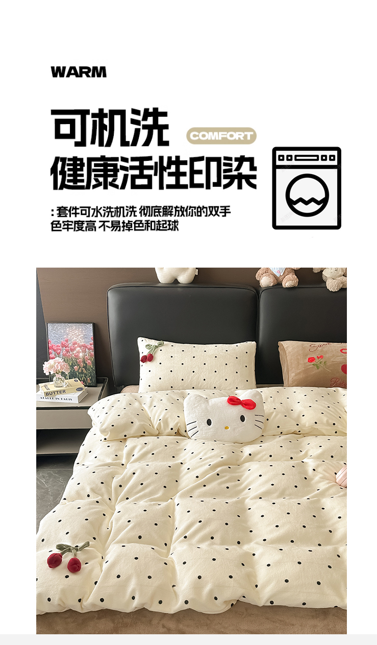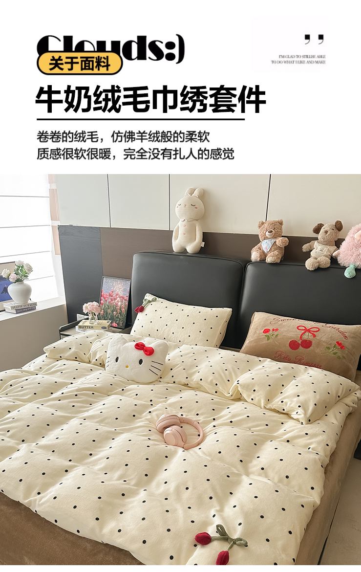 商品名称:子钦家纺 2025秋冬新款小红书同款加厚牛奶绒樱桃蝴蝶结款毛巾绣床单床笠四件套-樱桃公主 樱桃公主-奶波点