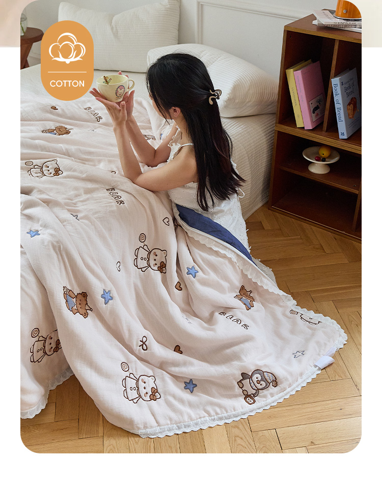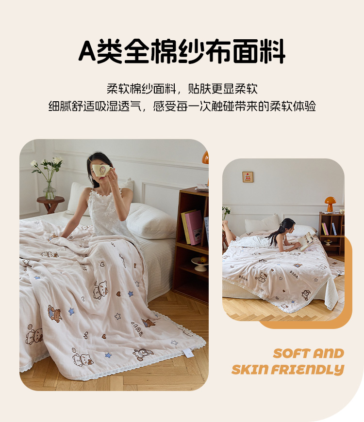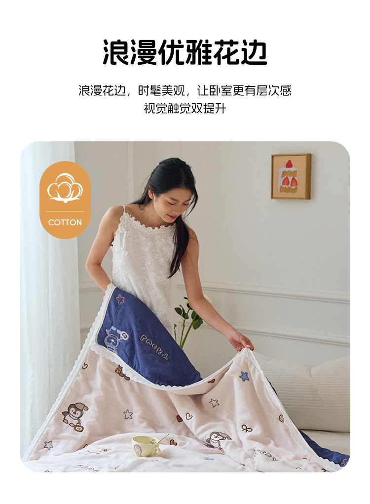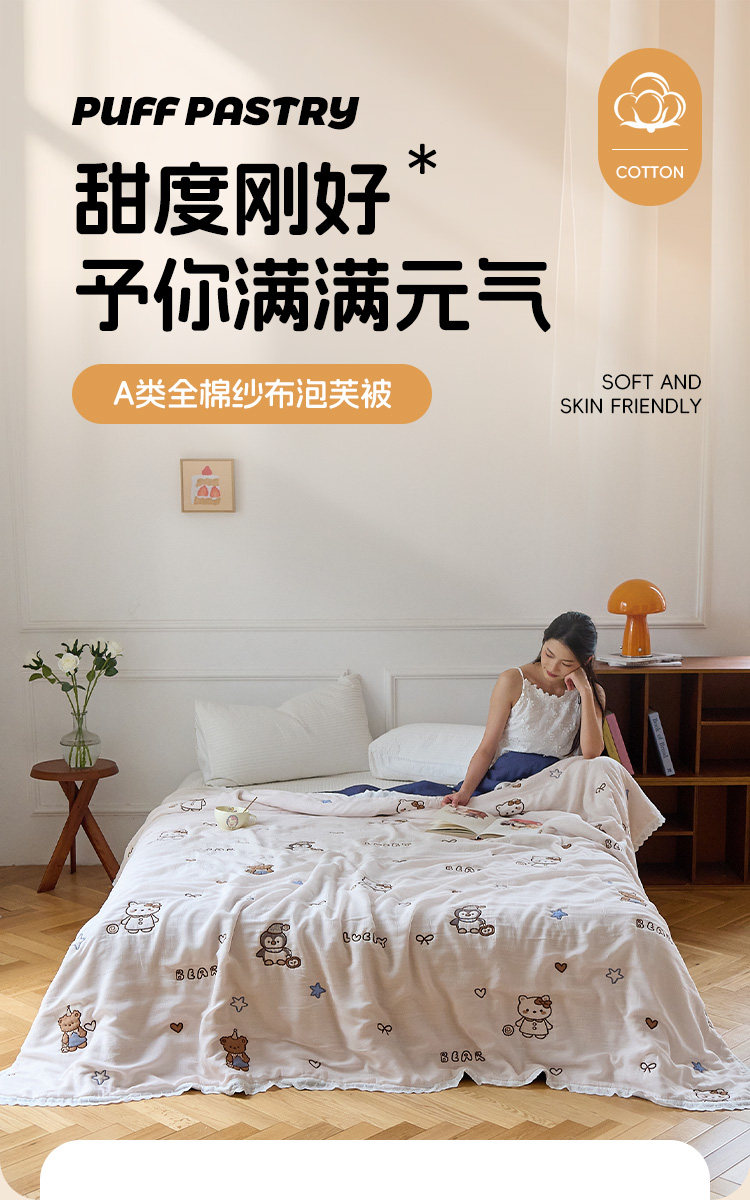 商品名称:沐瑟家纺 2026新款A类全棉纱布泡芙被春秋被被被子被芯 企鹅小熊