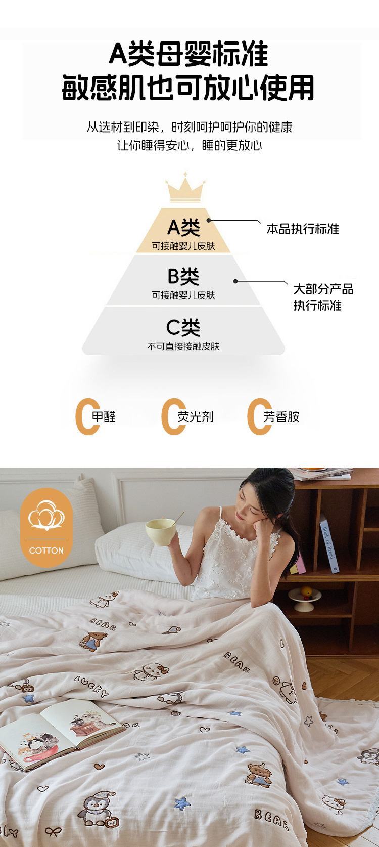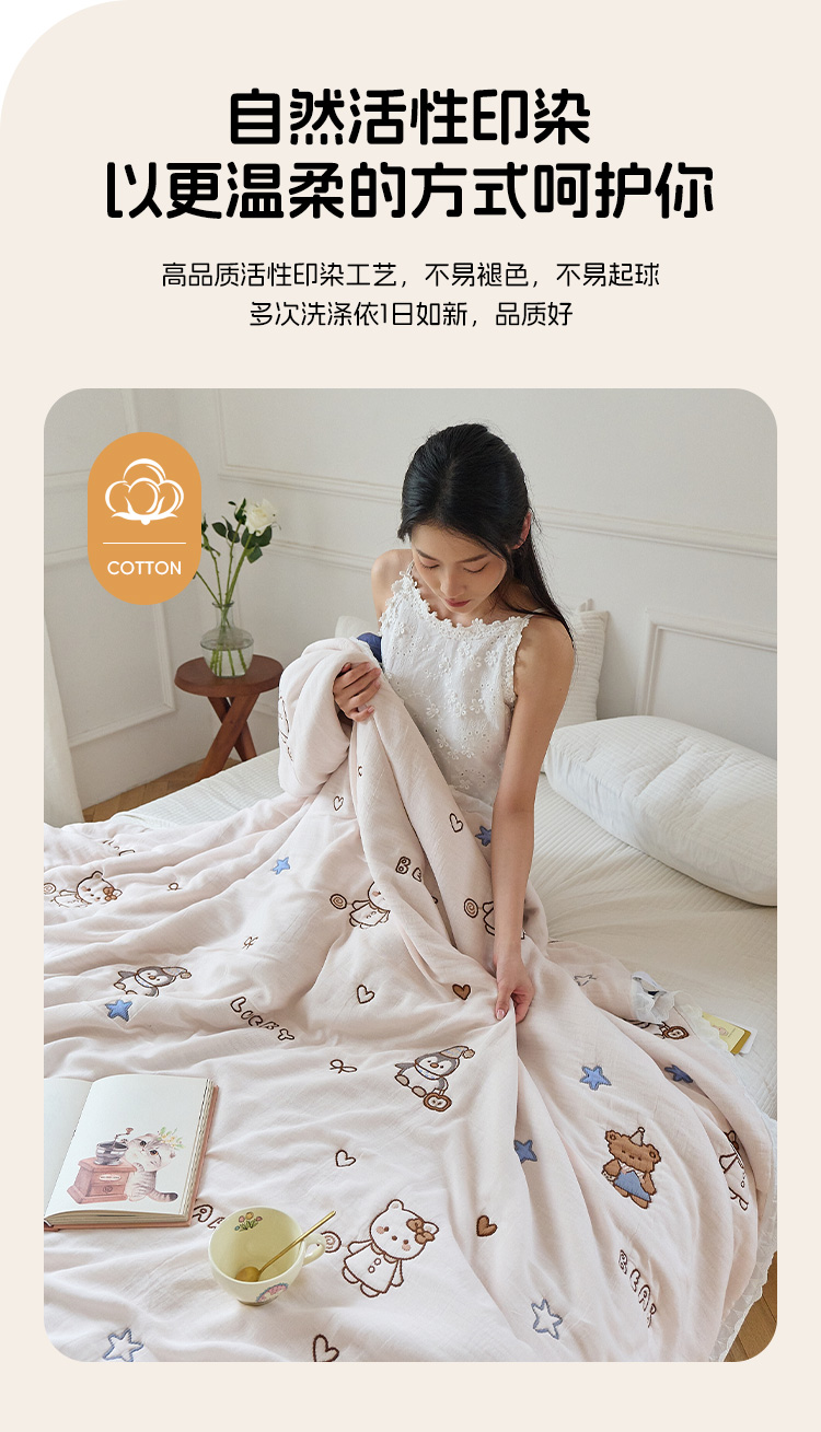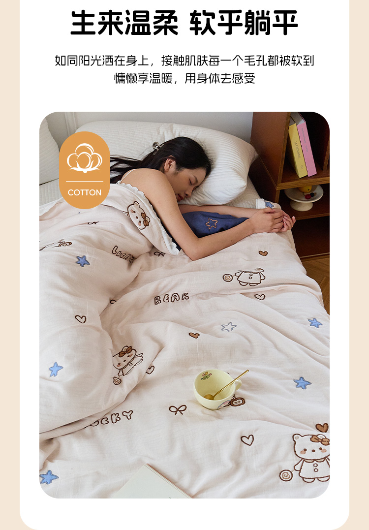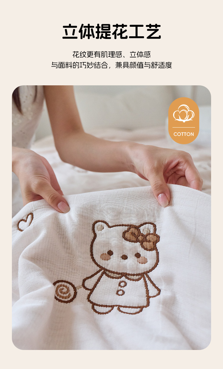 (总)沐瑟家纺 2026新款A类全棉纱布泡芙被夏被被子被芯,黄色小熊,玩偶猫,组合图