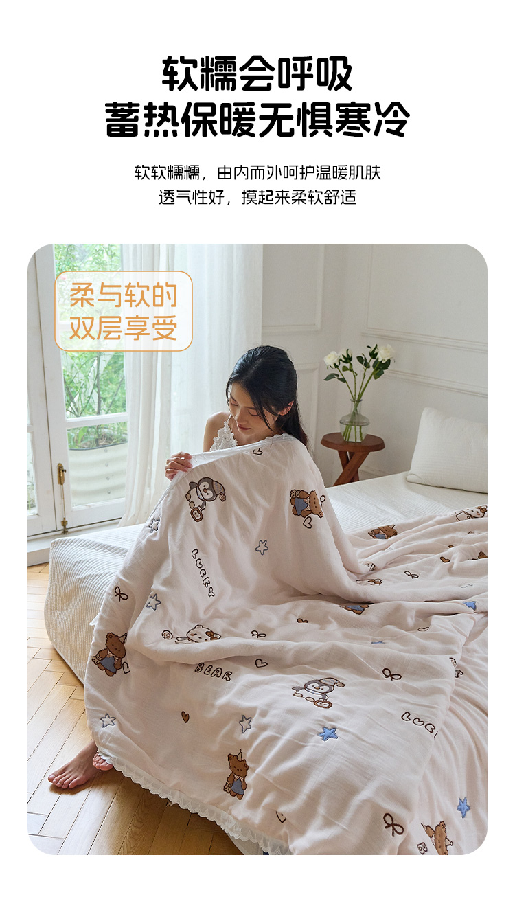 沐瑟家纺 2026新款A类全棉纱布泡芙被春秋被被被子被芯 企鹅小熊