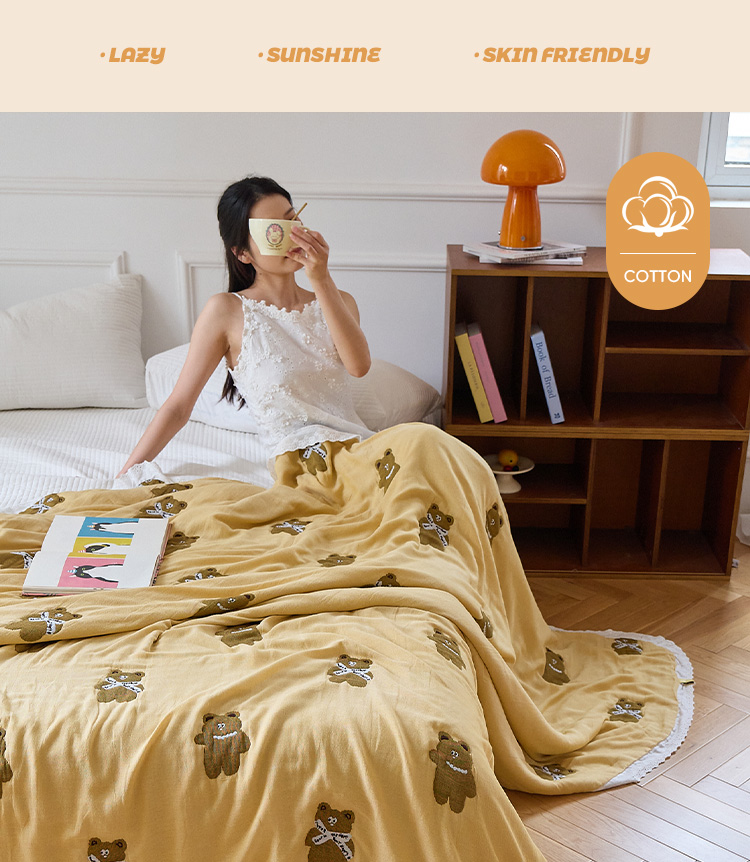 (总)沐瑟家纺 2026新款A类全棉纱布泡芙被夏被被子被芯,黄色小熊,玩偶猫,组合图