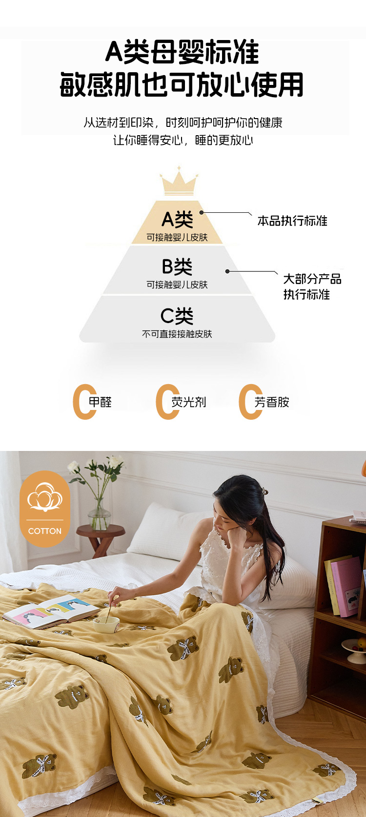 (总)沐瑟家纺 2025新款简约风多功能纱布盖毯纱布毯子毛巾被床盖沙发巾单毯枕巾枕套三件套,H本色,H橙色,H咖色,大马士革本色