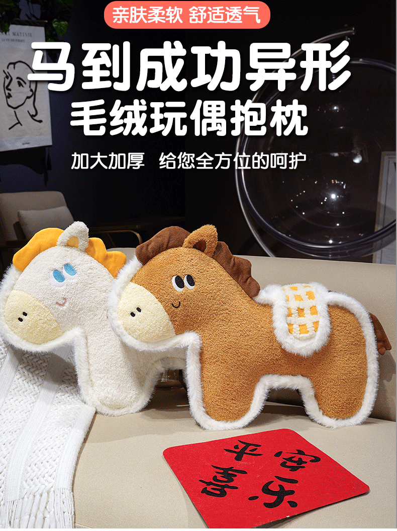(总)仟亿莱 2026新款马到成功毛绒玩偶抱枕