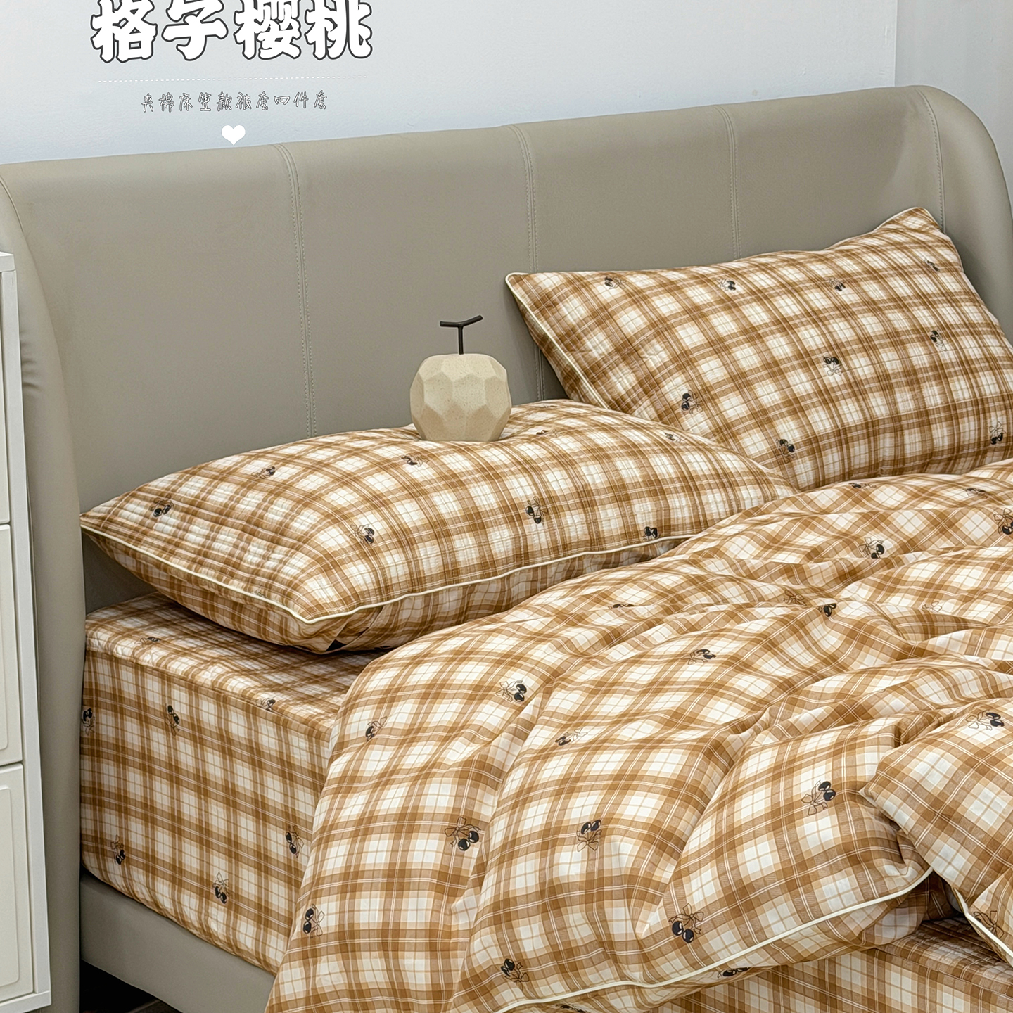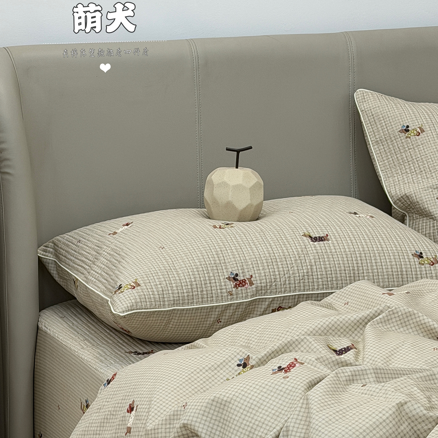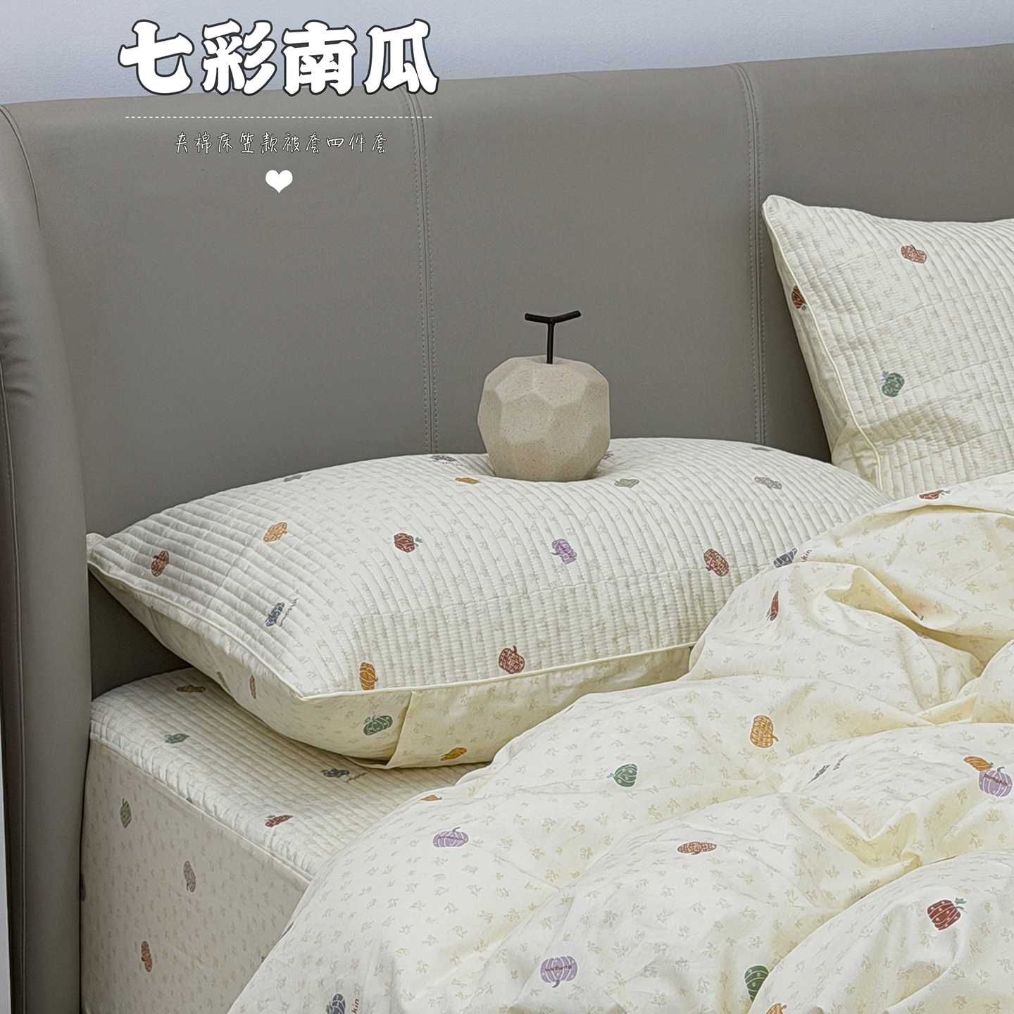 (总)佰织鑫家居 2026新款全棉夹棉绗缝床笠三件套四件套(会员-5),波点,格子樱桃,萌犬,七彩南瓜,竖条小兔,甜心结