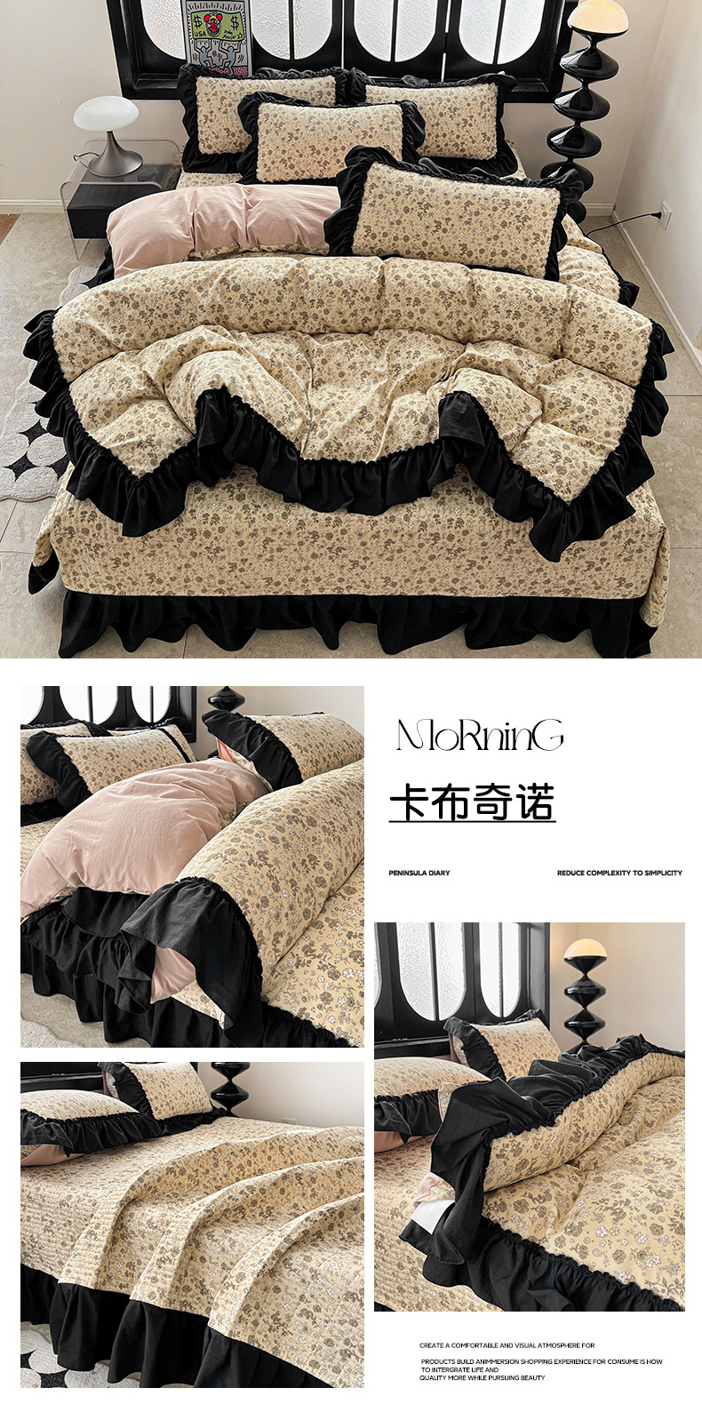 当前位置: 91家纺网 > 商品网购 > 床品套件 > 四件套 > 其它四件套 > 富米莱(原臻工厂) 2026新款法式赫本风大花边A类古法仿棉云感纱床盖床裙四件套 午后时光
