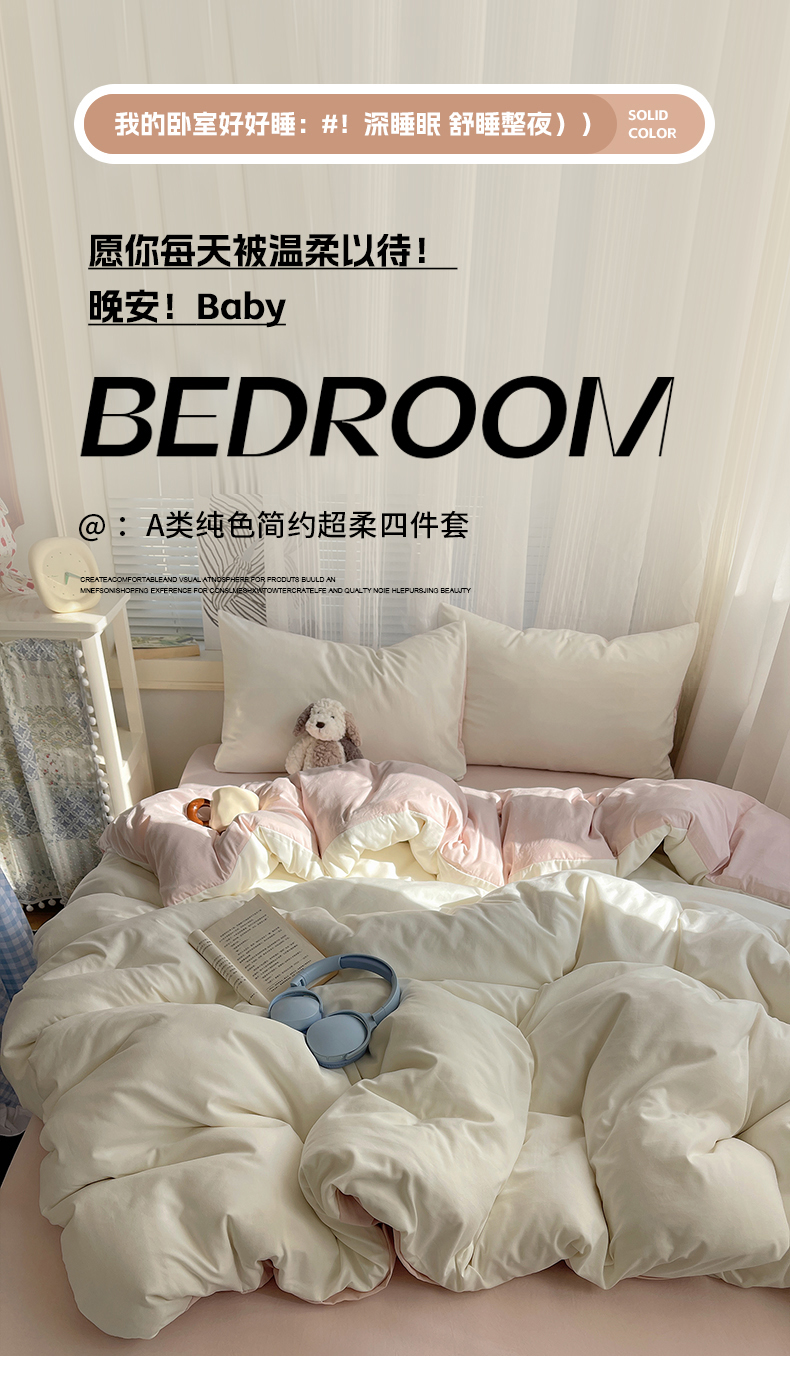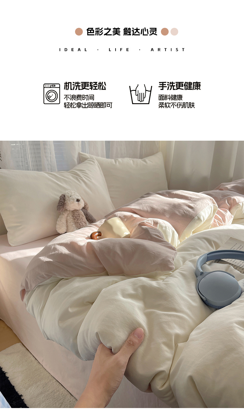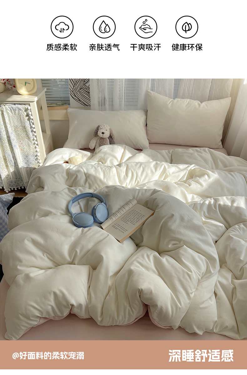 当前位置: 91家纺网 > 商品网购 > 床品套件 > 四件套 > 水洗棉四件套 > 沐芷 2026 纯色水洗棉A类四件套105g床上用品床单被套三件套---【提供买家秀】 奶白粉玉
