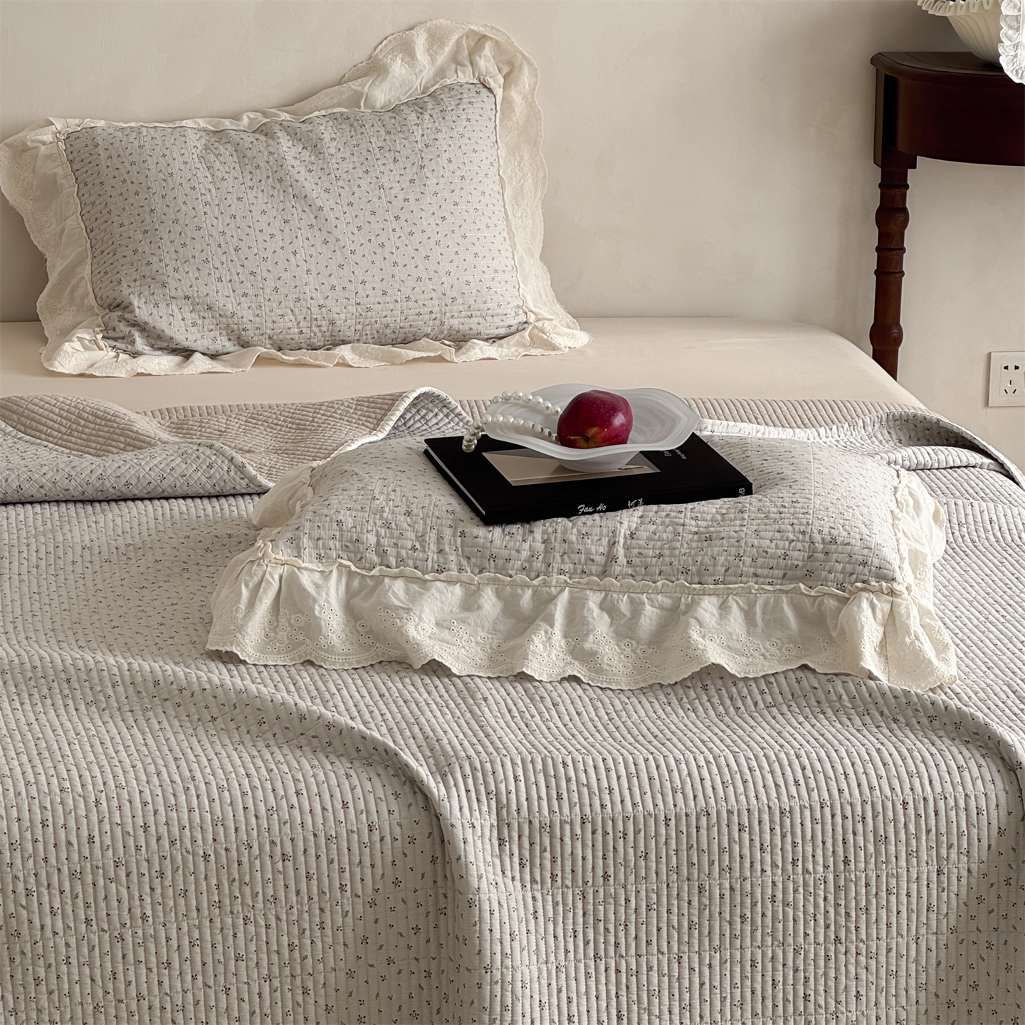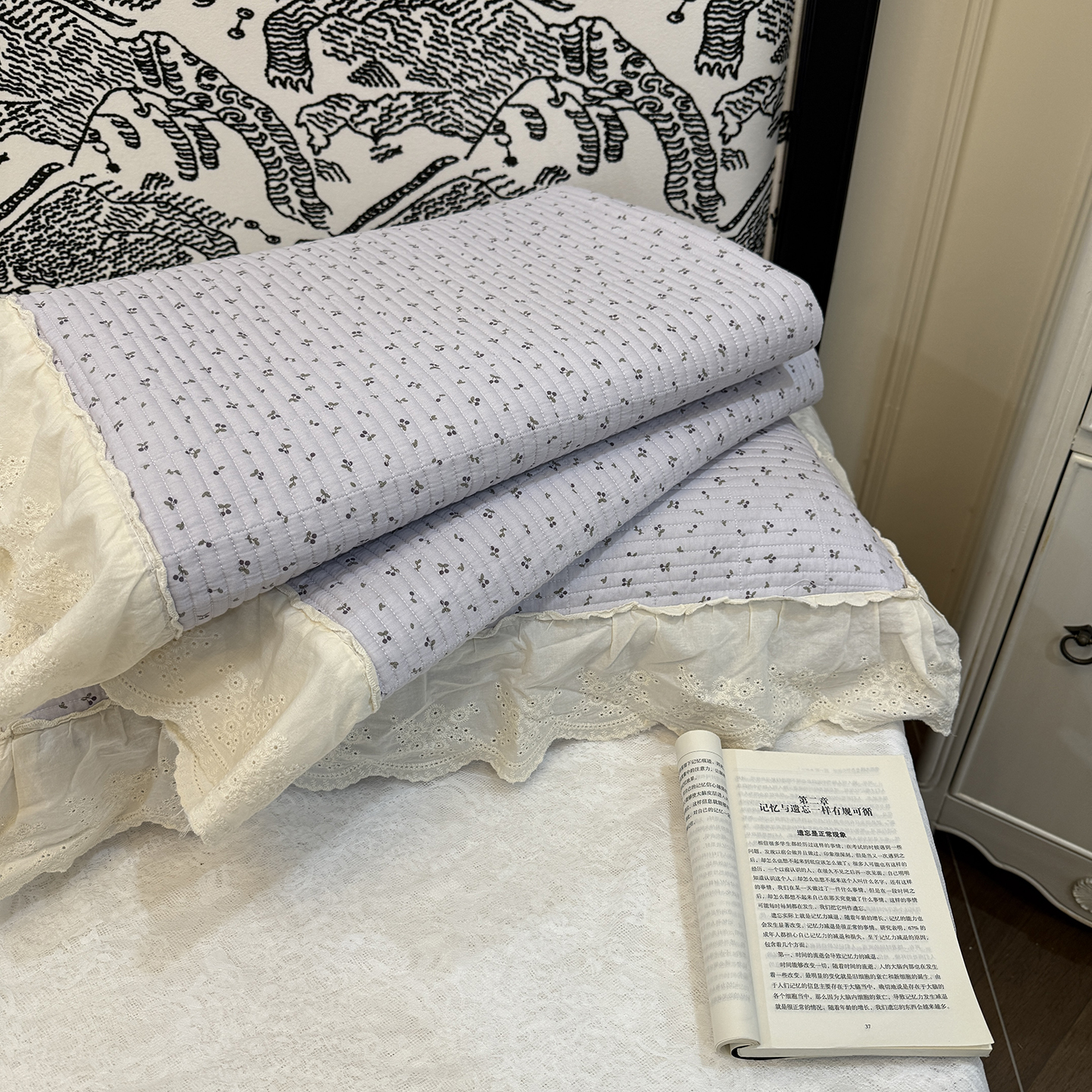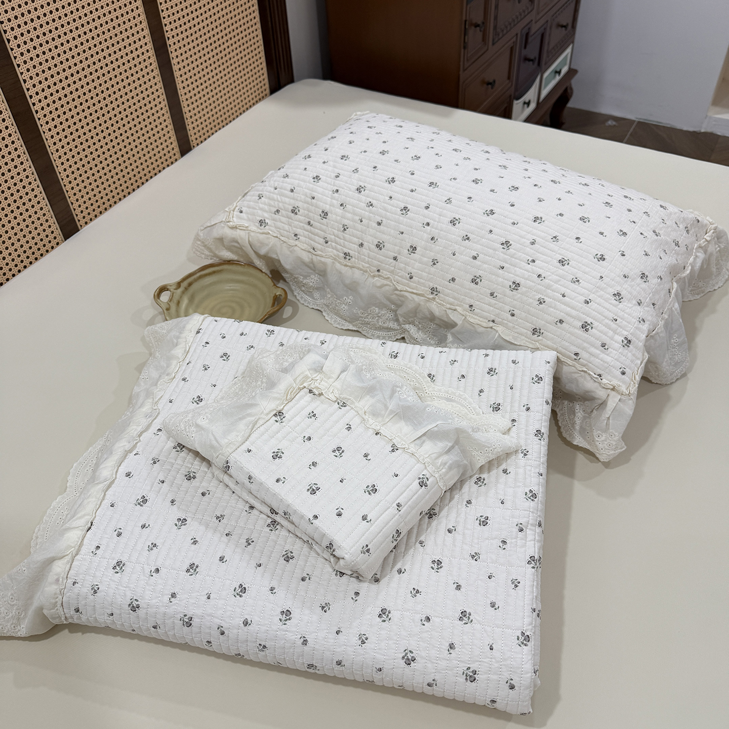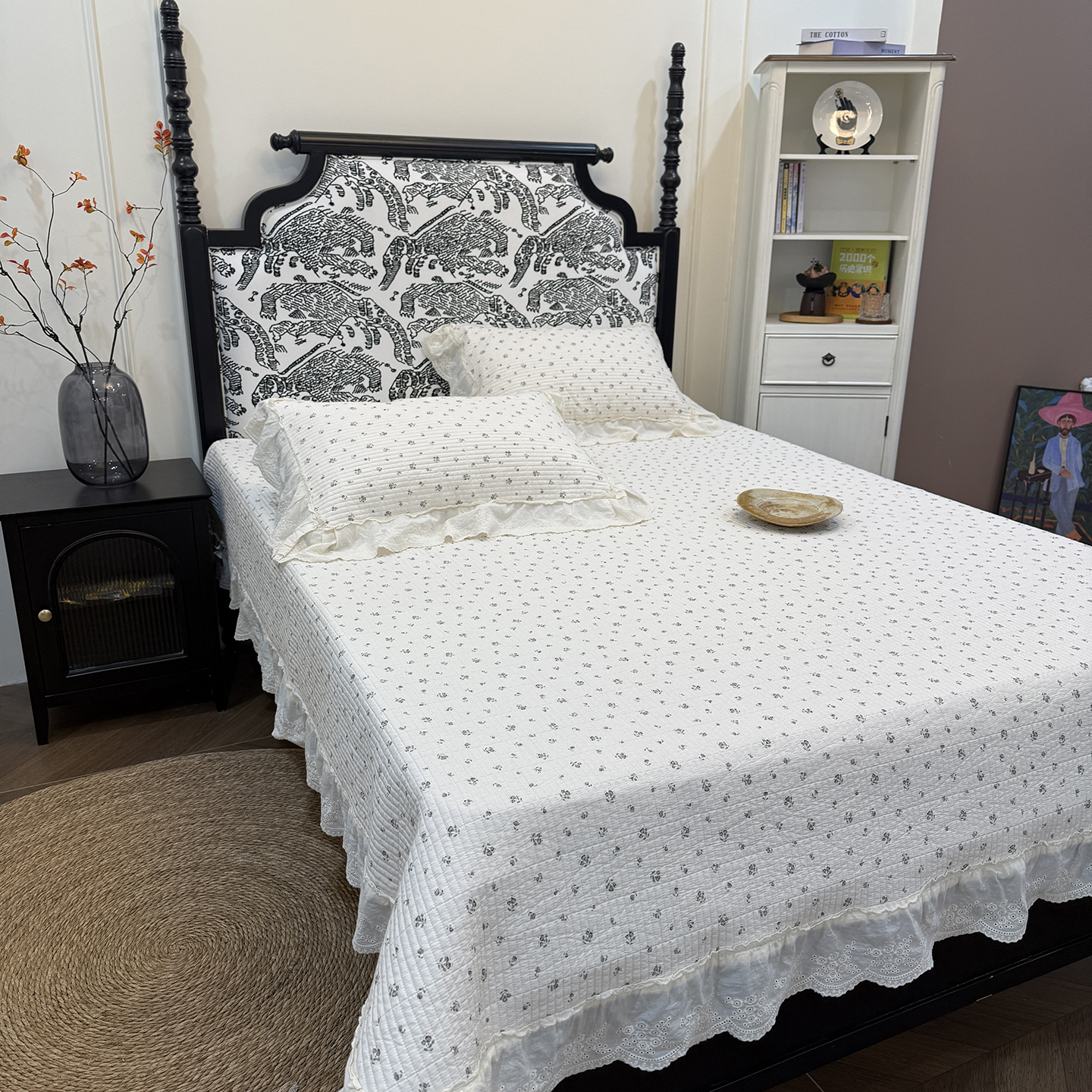 商品名称:床盖工厂店 2026新款韩式田园小碎花系双面全棉花边床盖三件套 喜时一咖