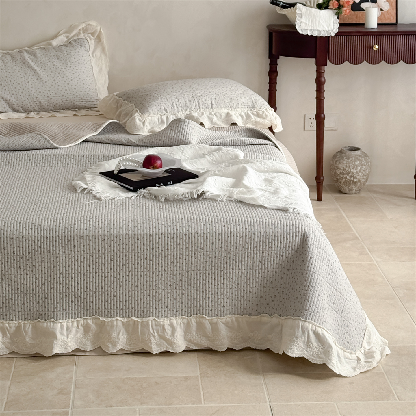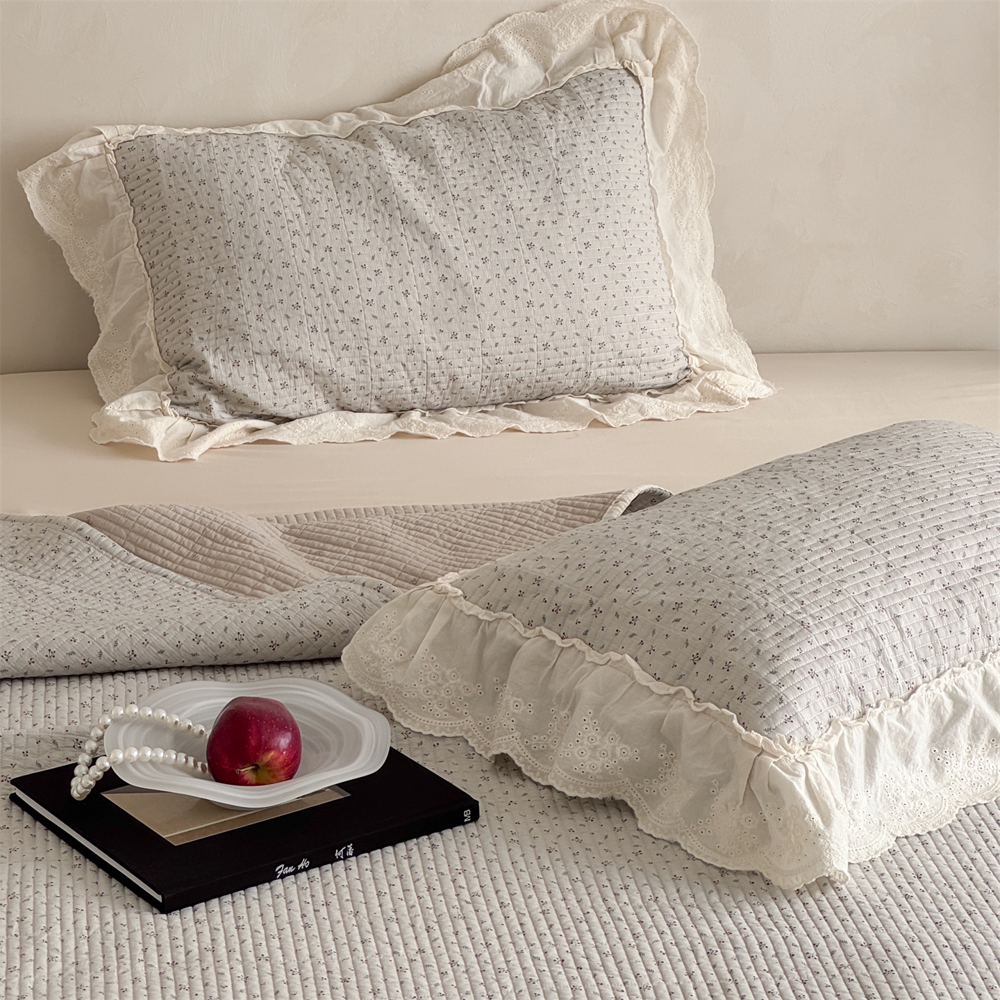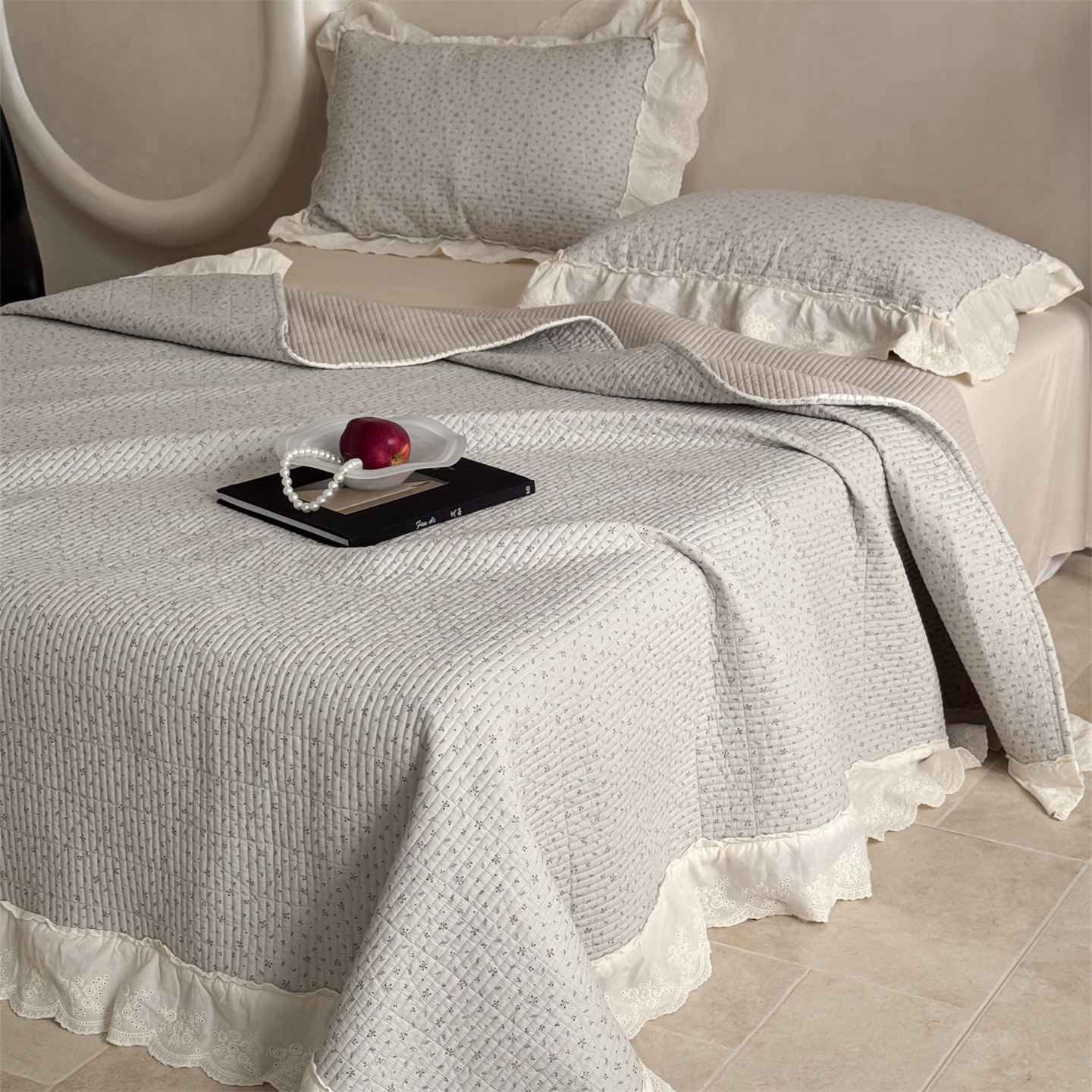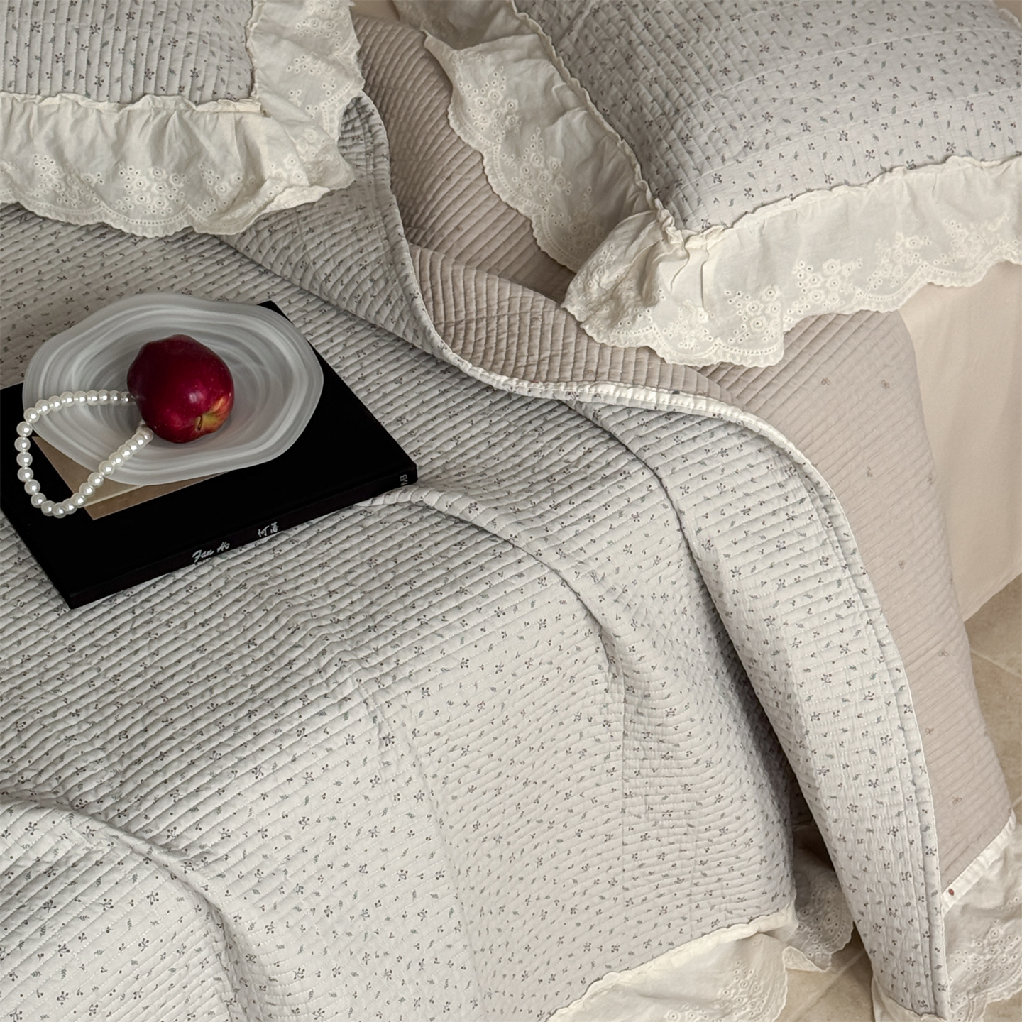 商品名称:床盖工厂店 2026新款韩式田园小碎花系双面全棉花边床盖三件套 喜时一咖