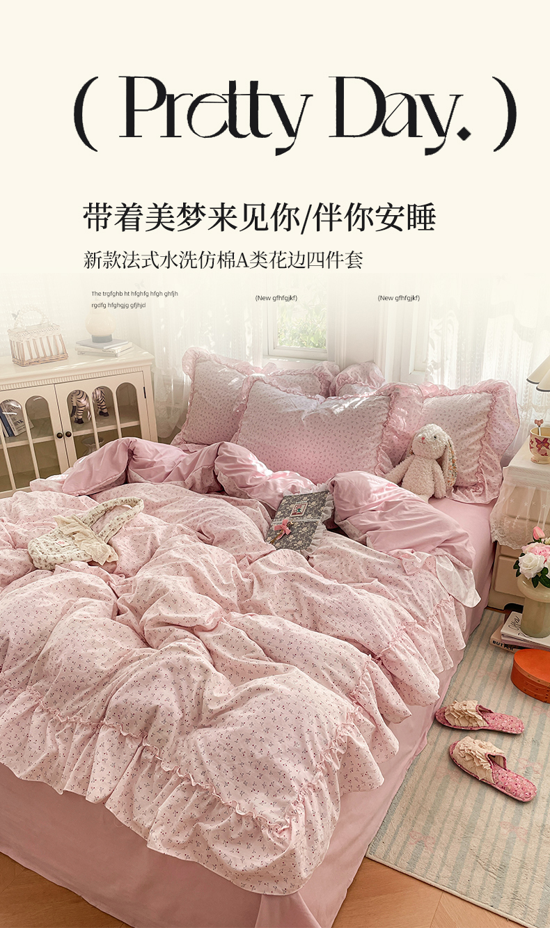 (总)优尚佳生活馆 2026新款A类仿棉水洗法式工艺花边四件套