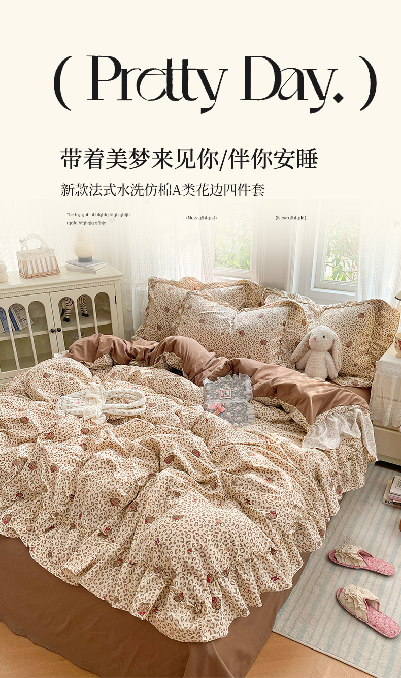 当前位置: 91家纺网 > 商品网购 > 床品套件 > 四件套 > 其它四件套 > 优尚佳生活馆 2026新款A类仿棉水洗法式工艺花边四件套 奶豹栖塌