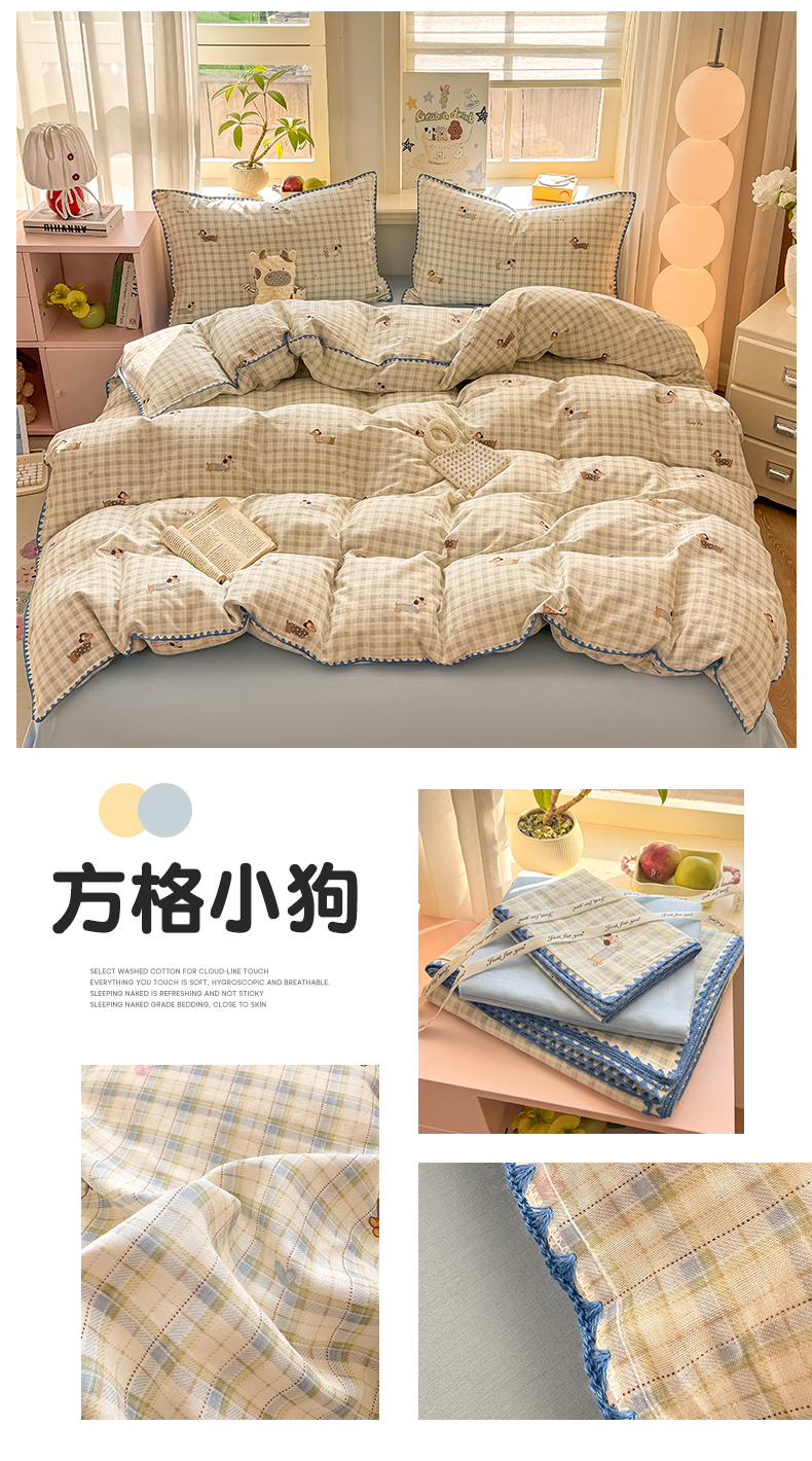 (总)对白 2026新款ins风全棉色织水洗棉纯棉简约极简格子系列四件套-草莓奶昔【提供买家秀】,草莓奶昔(枕套格子+小花),草莓奶昔(枕套小花),草莓奶昔(枕套格子)