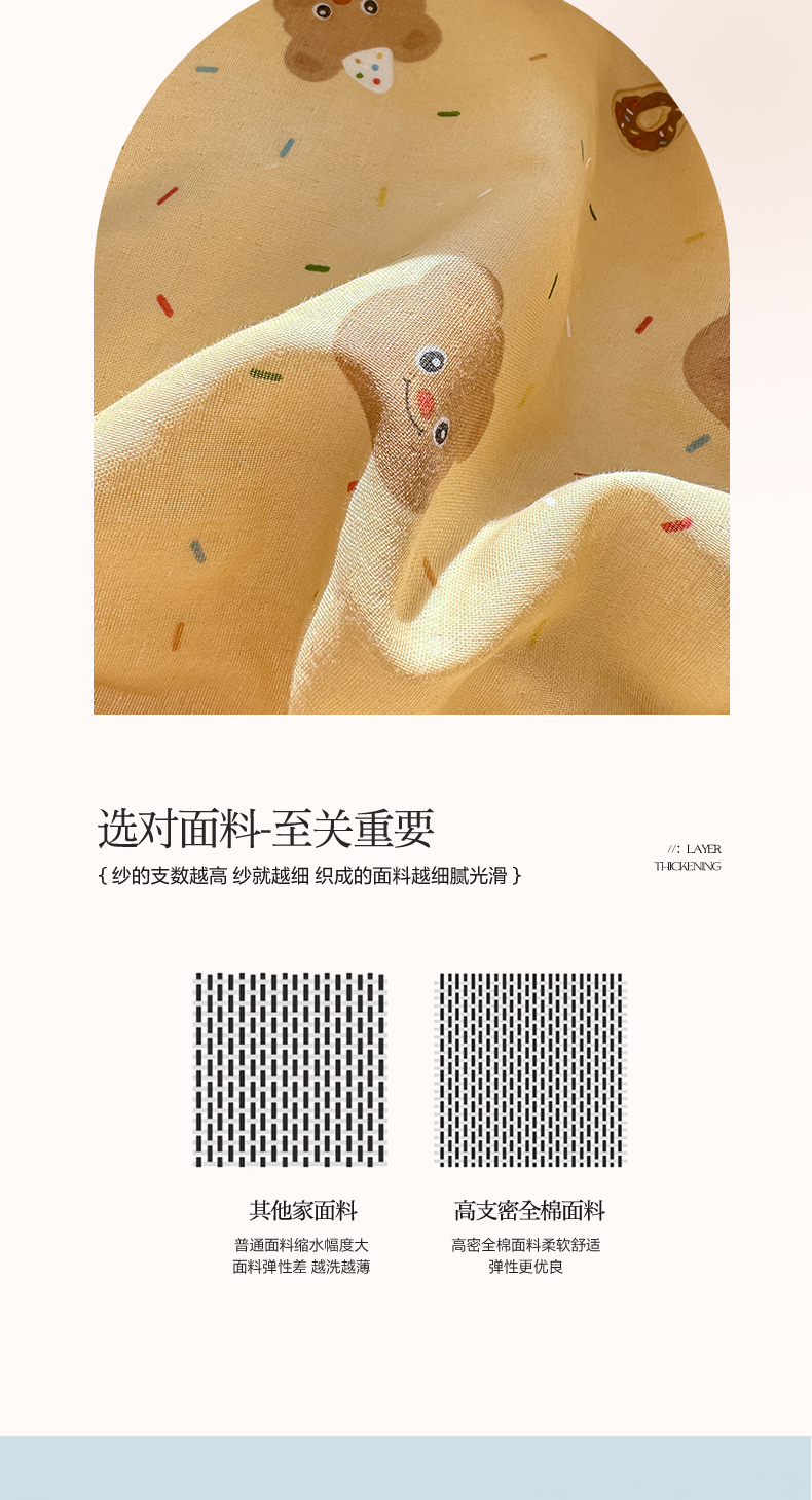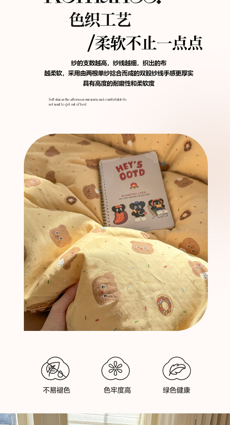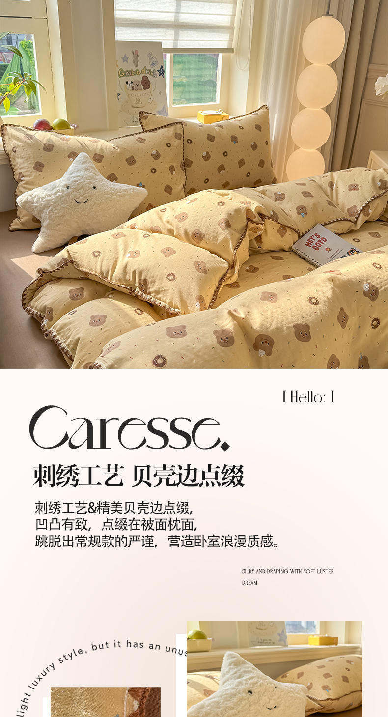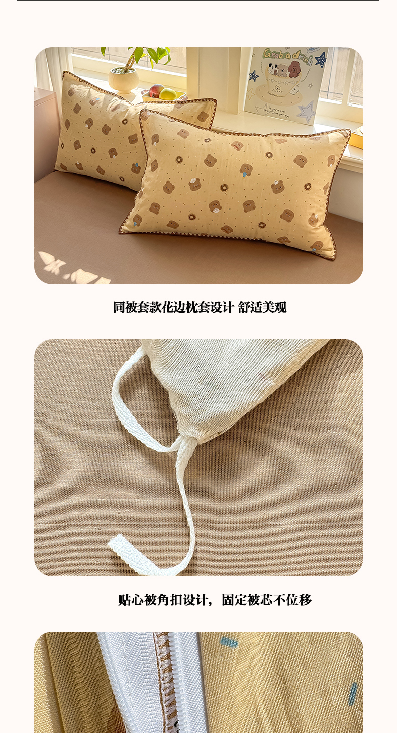 商品名称:对白 2026新款A类全棉纯棉有氧双层纱贝壳边三角针单床单床单单件 小熊奶盖