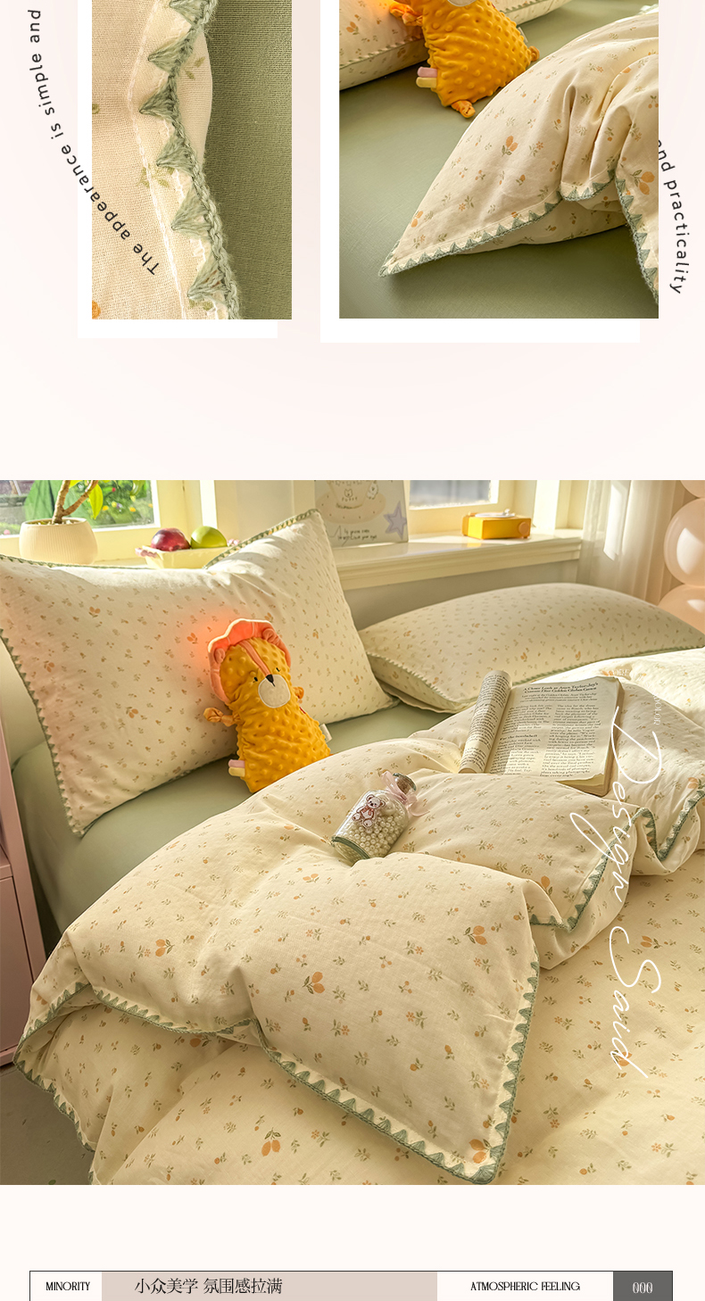 (总)对白 2026新款ins风全棉色织水洗棉纯棉简约极简格子系列四件套-草莓奶昔【提供买家秀】,草莓奶昔(枕套格子+小花),草莓奶昔(枕套小花),草莓奶昔(枕套格子)