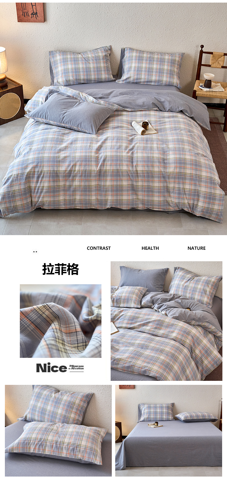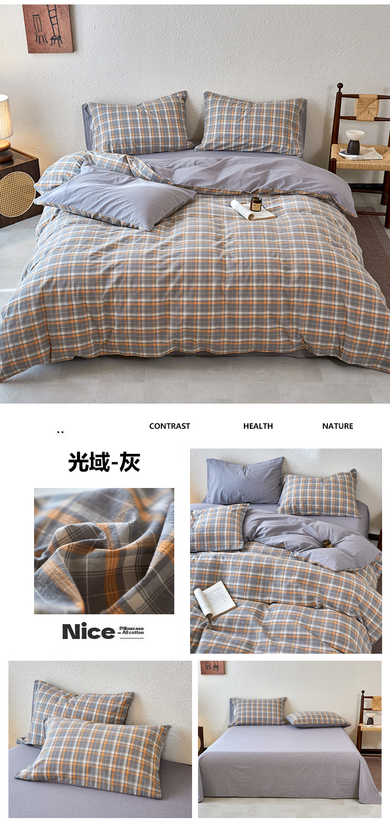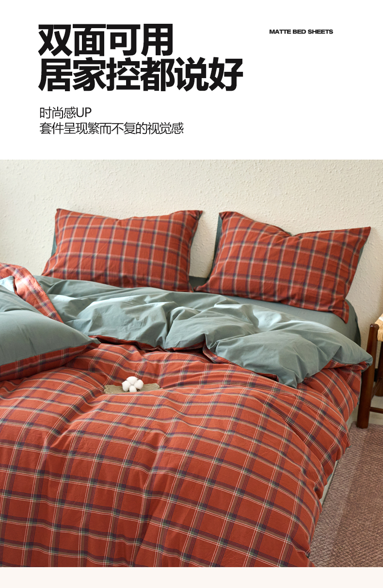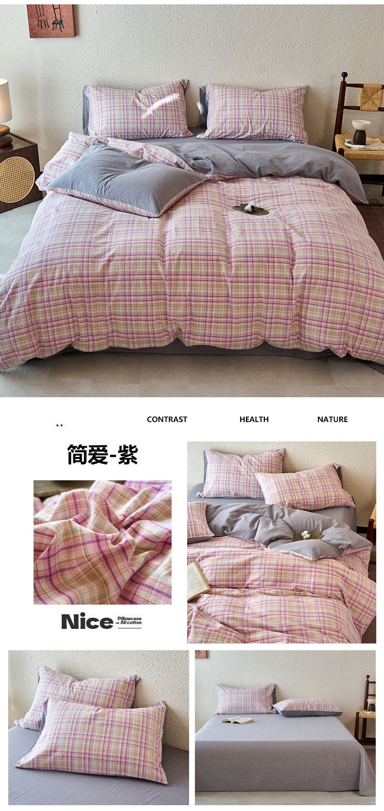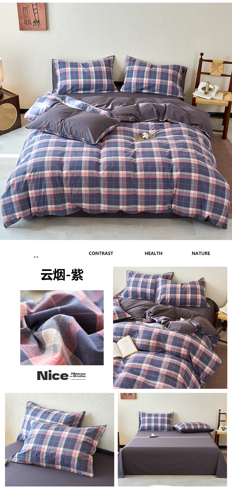 (总)兰紫橙家纺 2026新款全棉水洗棉印花格子四件套 单被套 床单款 床笠款 ---全尺寸