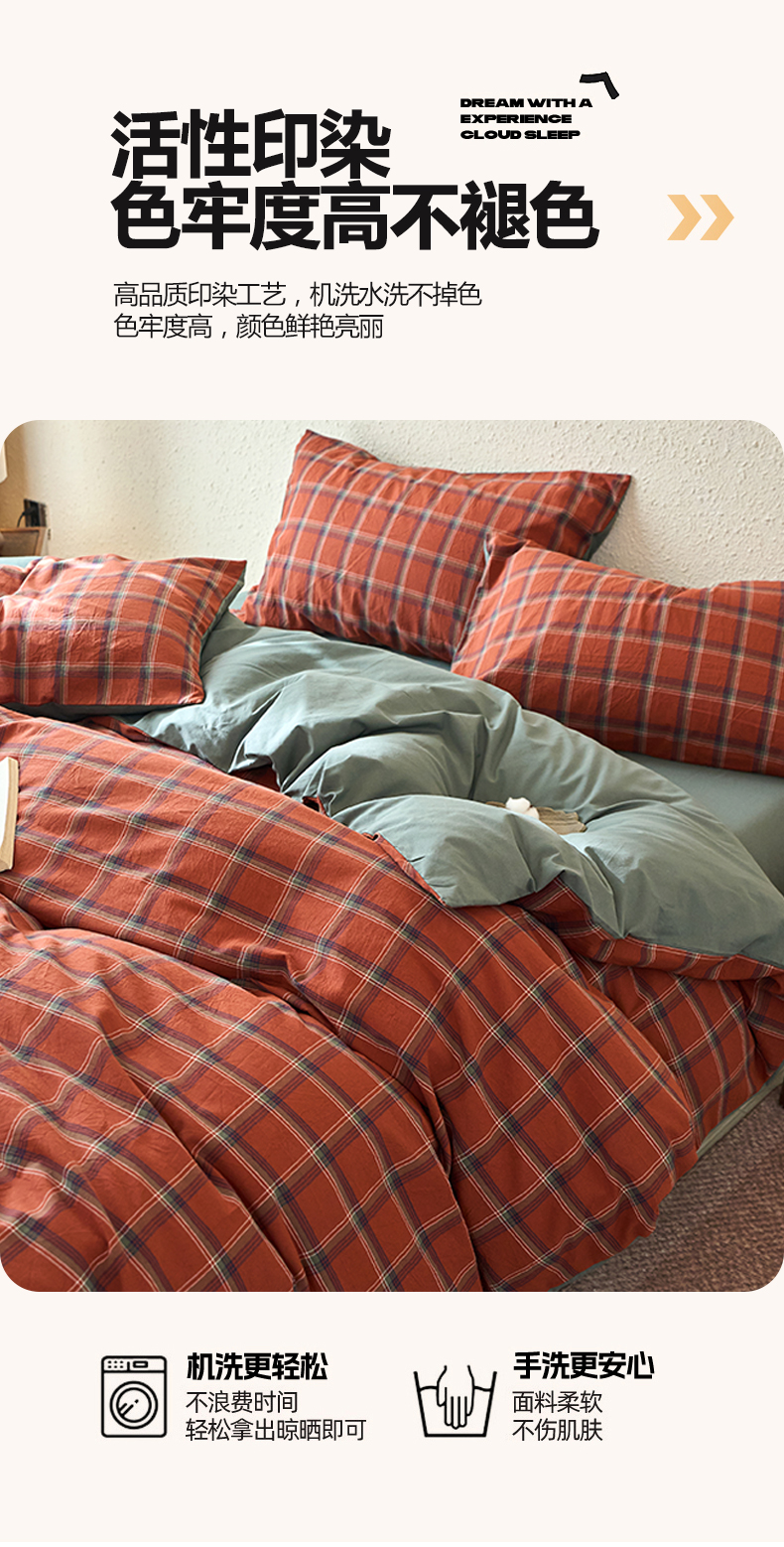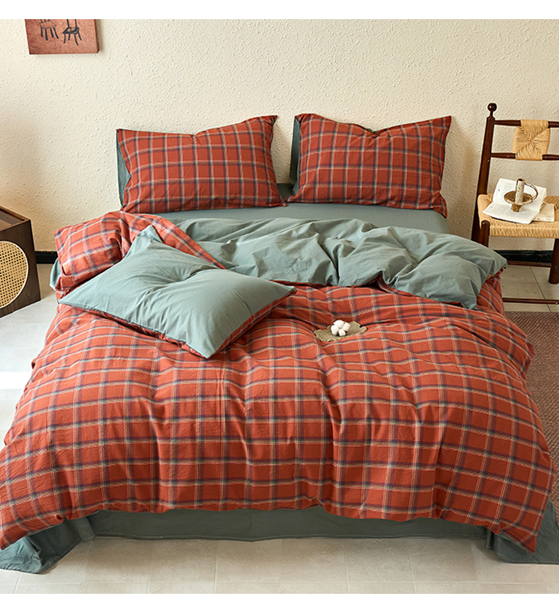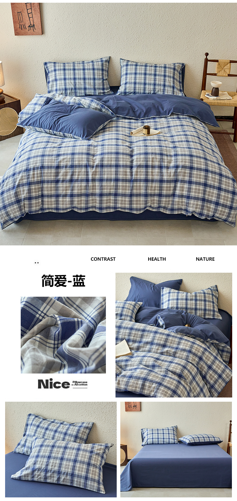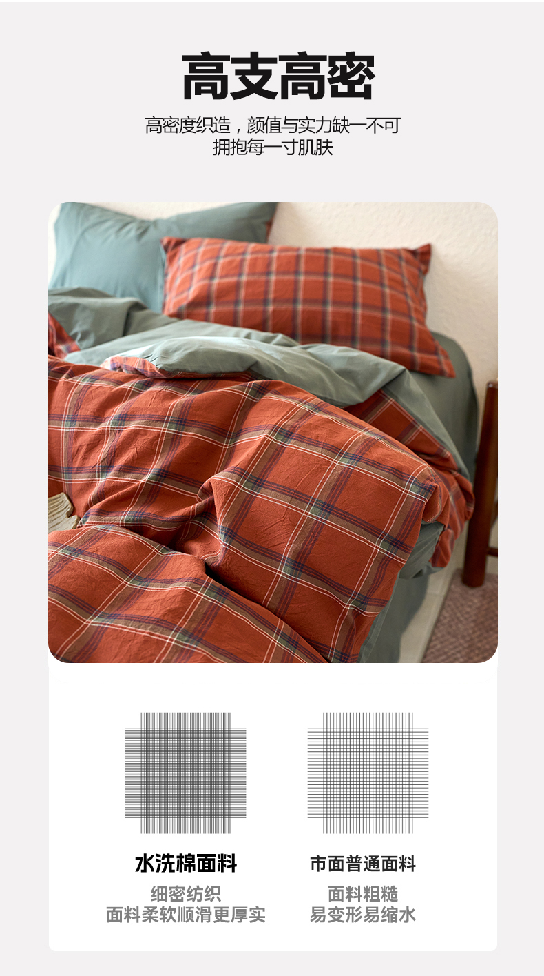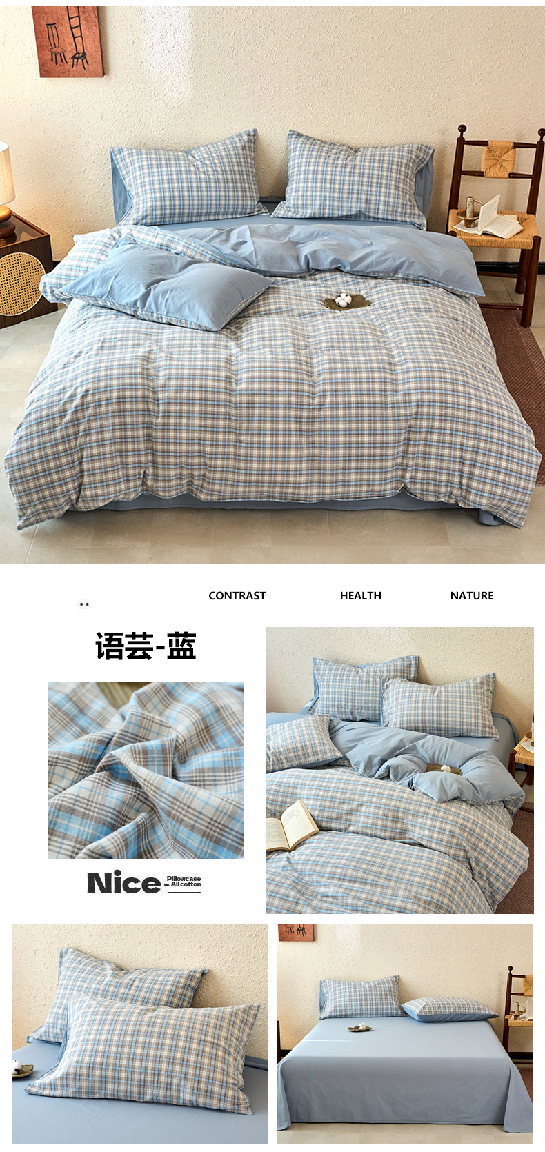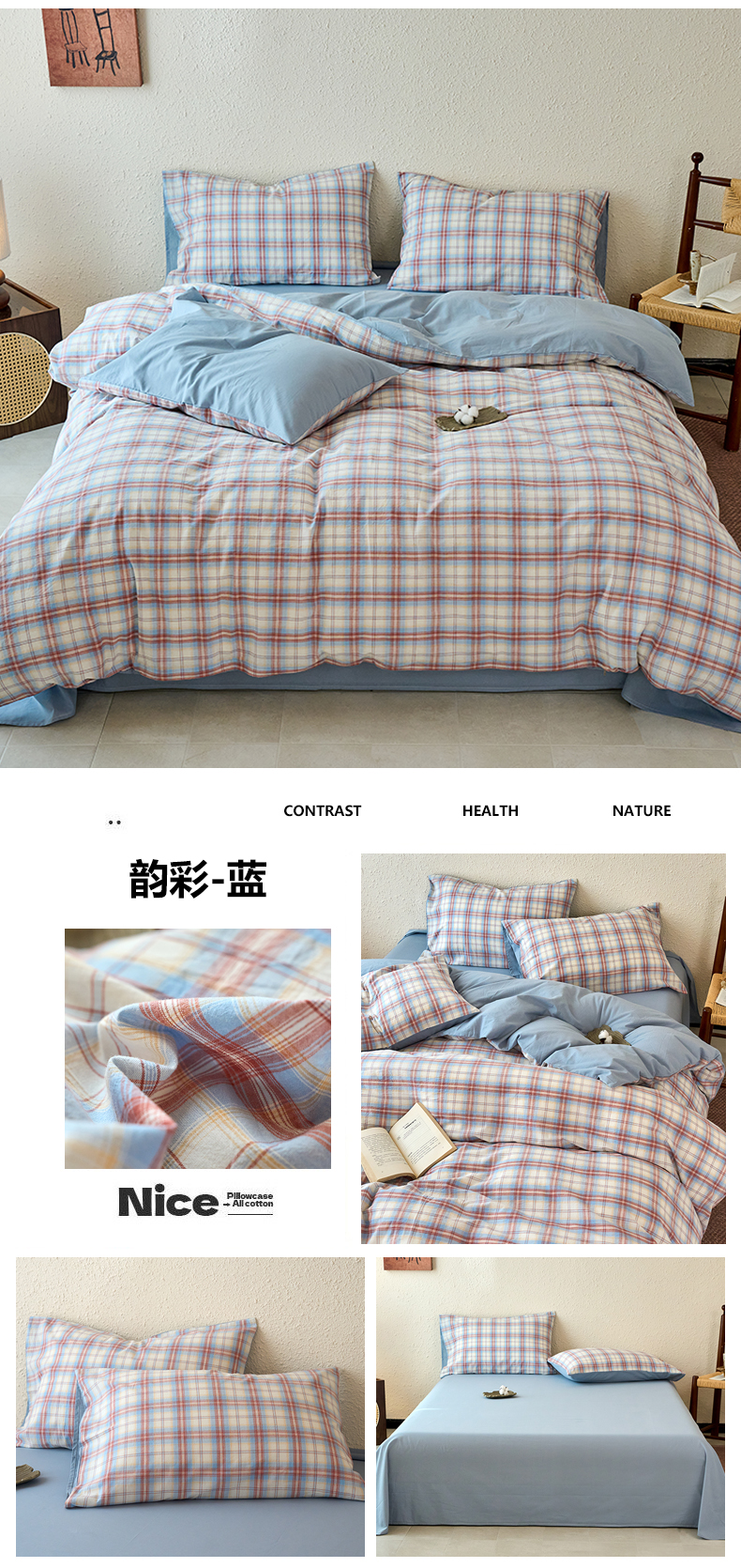 (总)兰紫橙家纺 2026新款全棉水洗棉印花格子四件套 单被套 床单款 床笠款 ---全尺寸