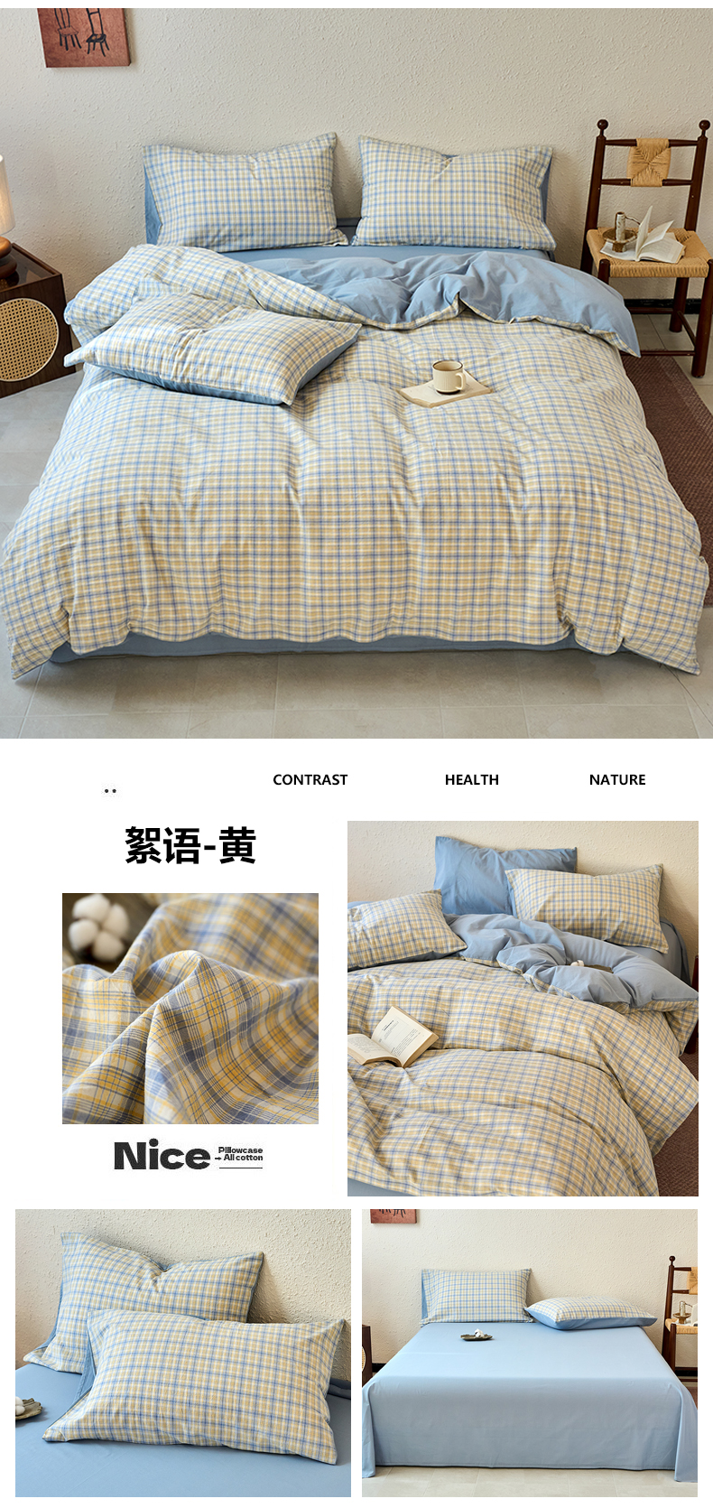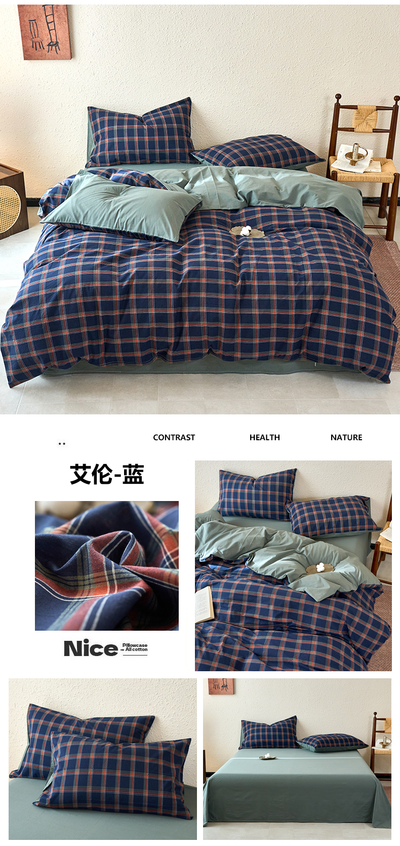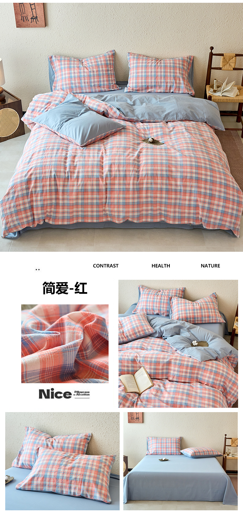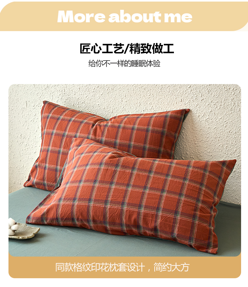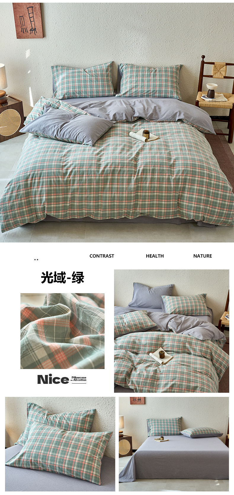 (总)兰紫橙家纺 2026新款全棉水洗棉印花格子四件套 单被套 床单款 床笠款 ---全尺寸