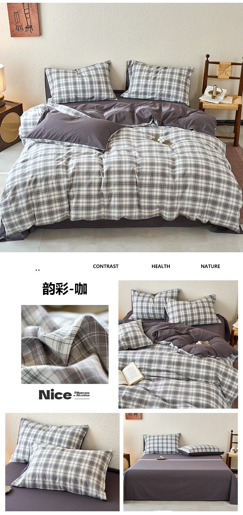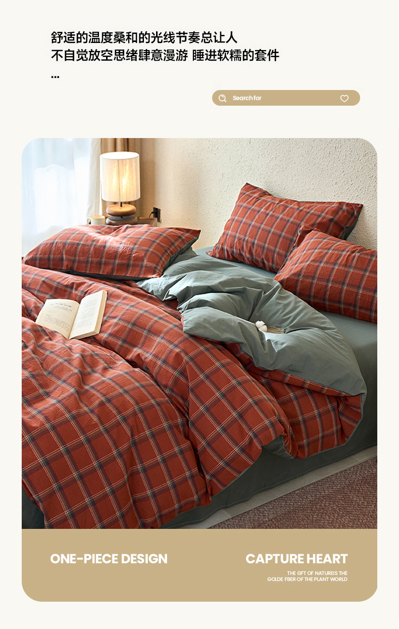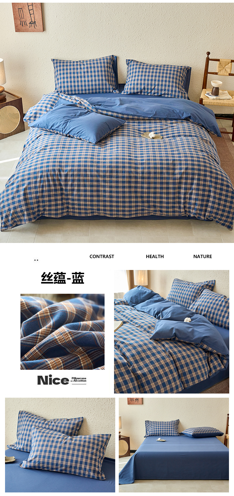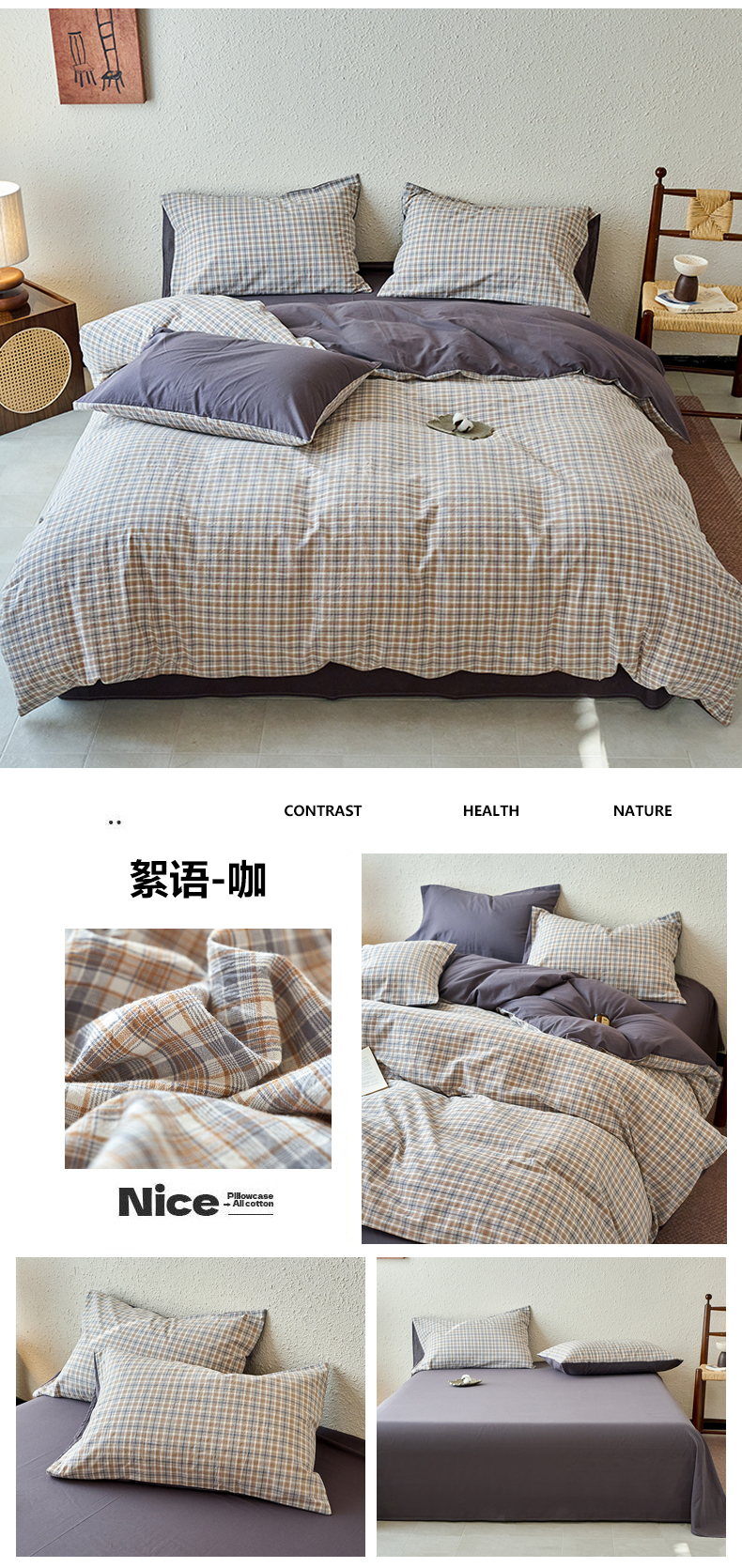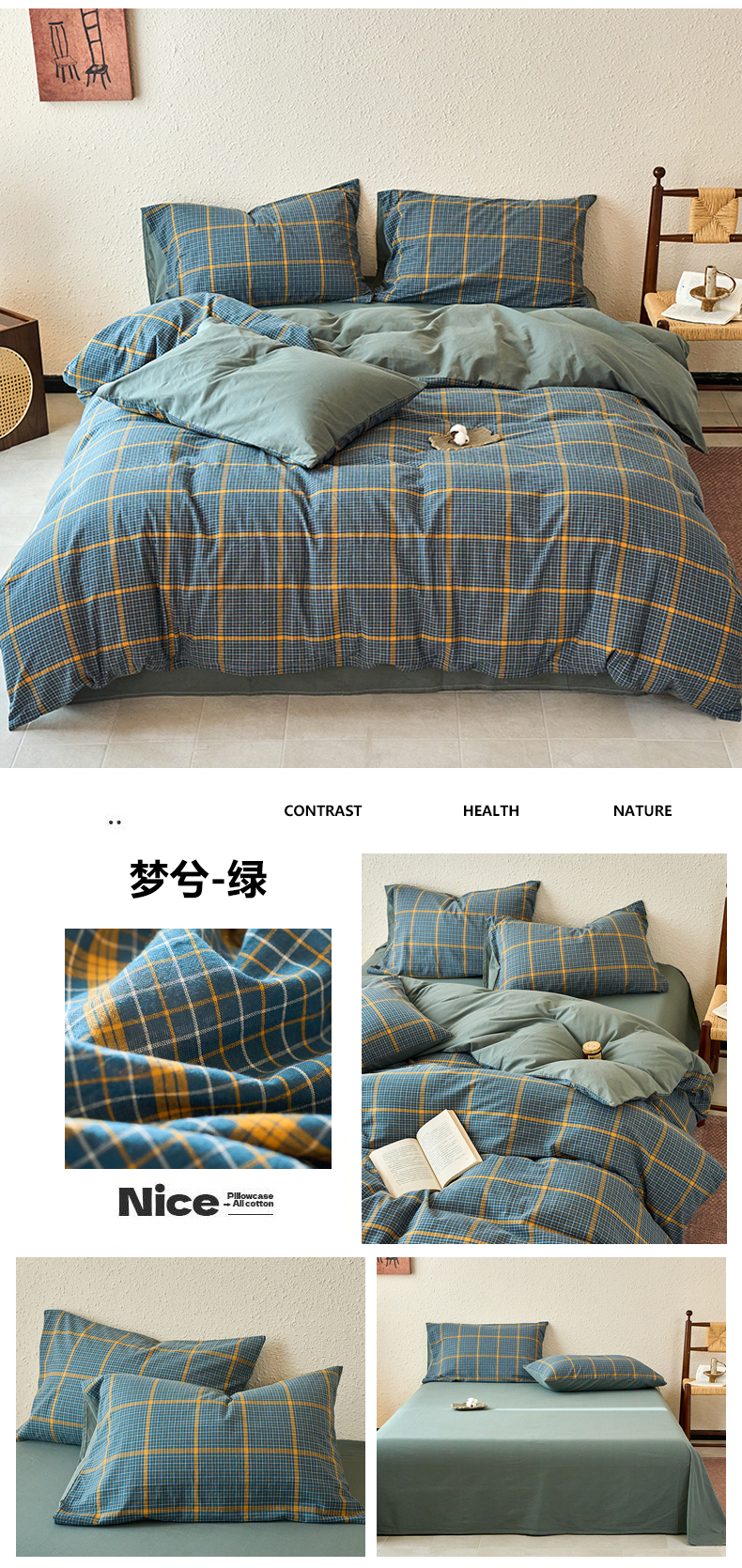 (总)兰紫橙家纺 2026新款全棉水洗棉印花格子四件套 单被套 床单款 床笠款 ---全尺寸