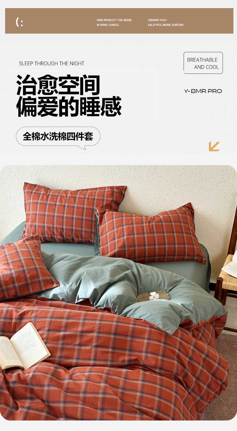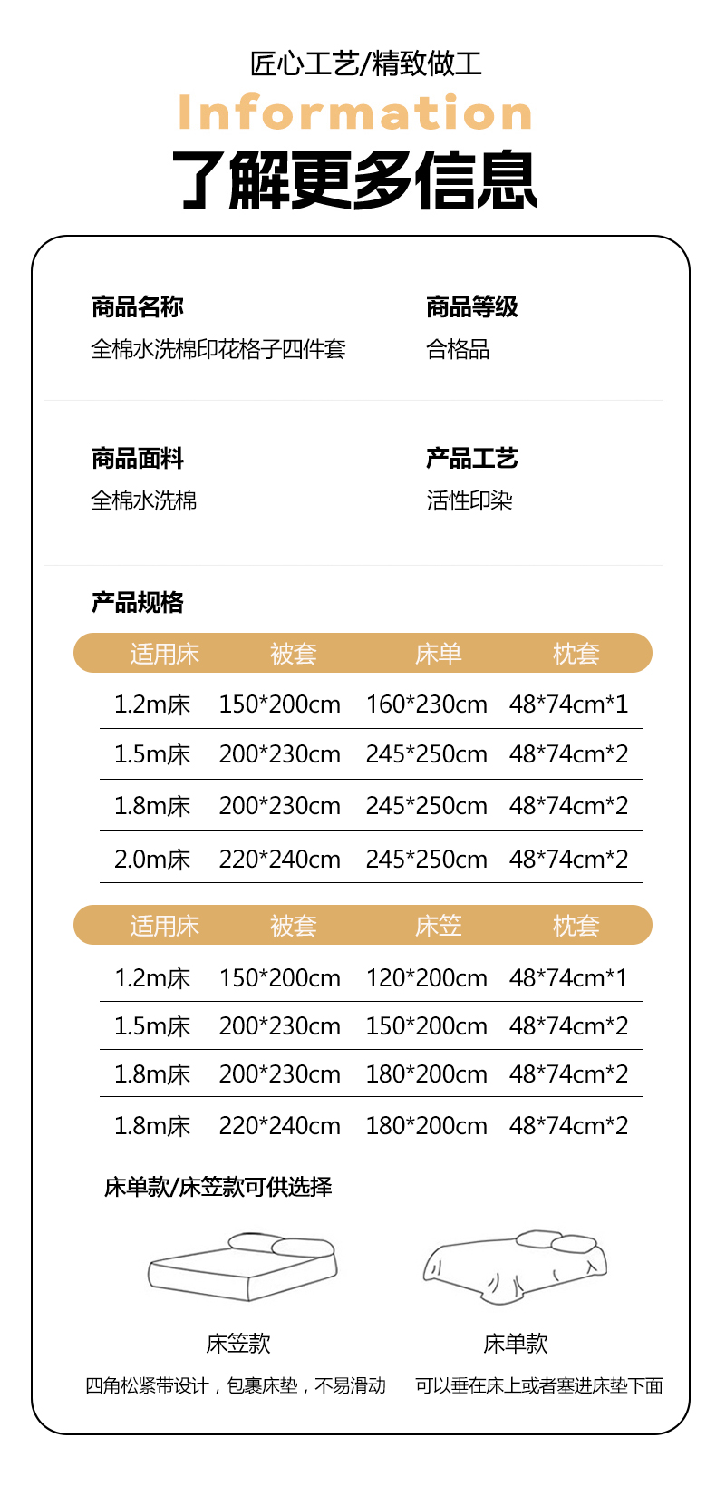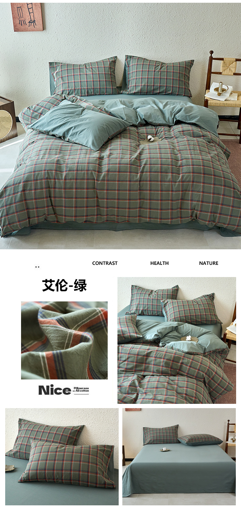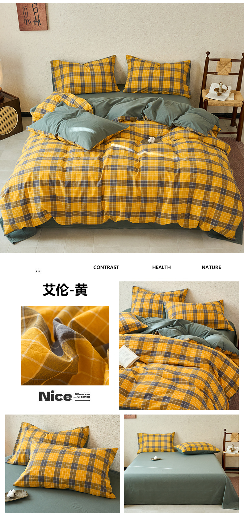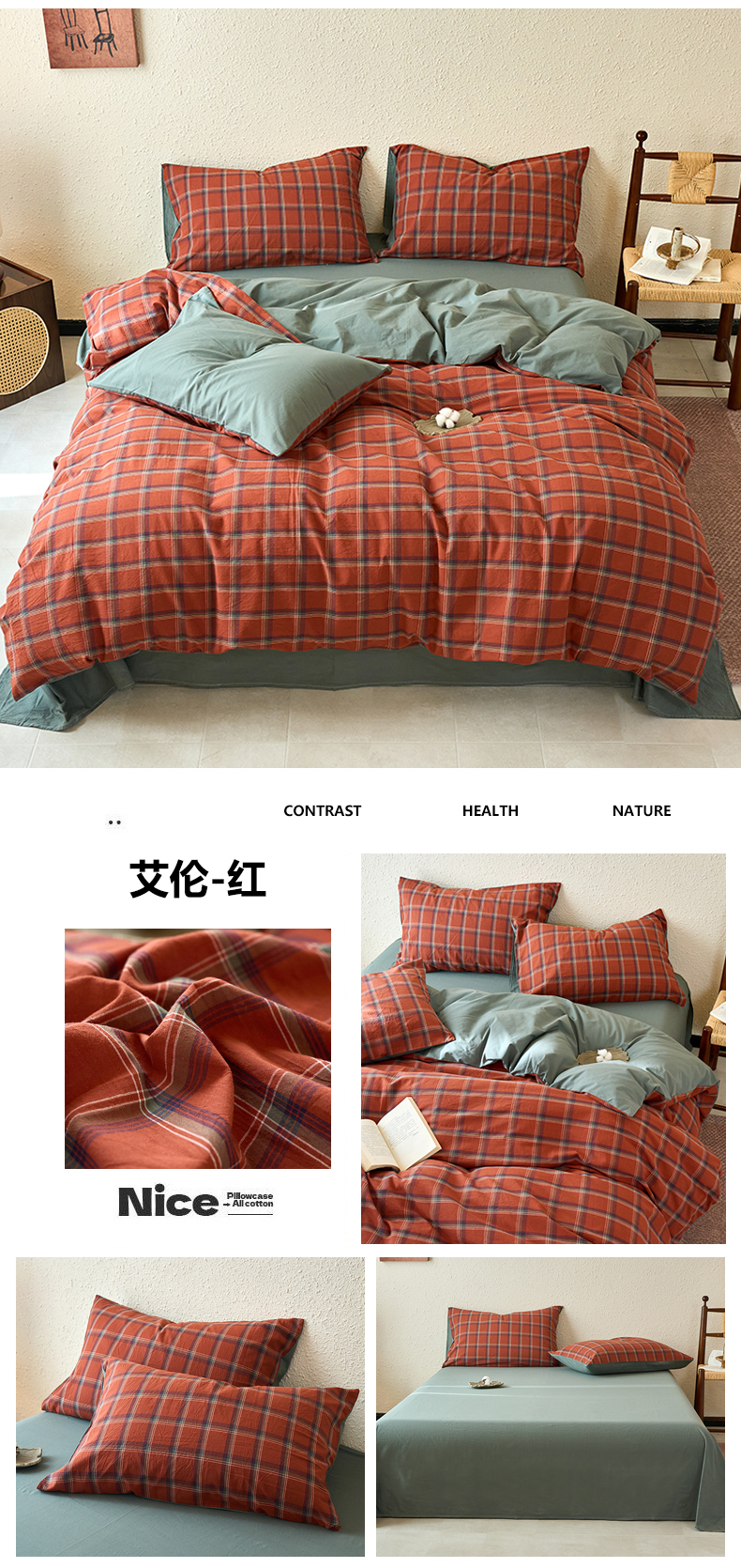 (总)兰紫橙家纺 2026新款全棉水洗棉印花格子四件套 单被套 床单款 床笠款 ---全尺寸