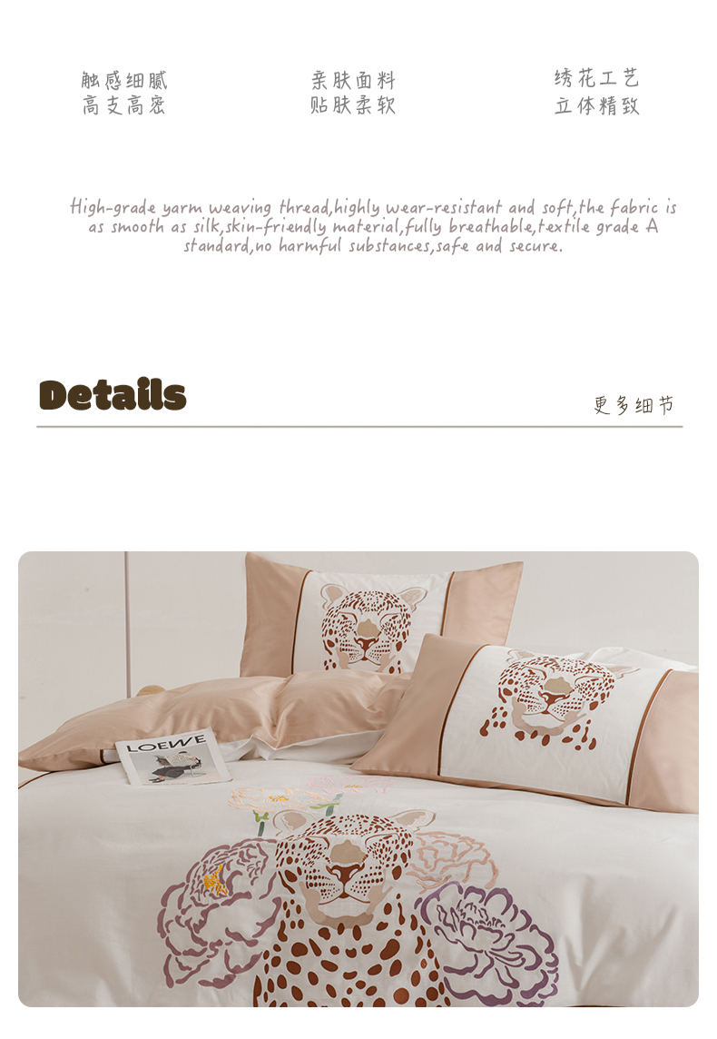 (总)波比可可 2026新款50s长绒棉纯棉全棉居家轻奢四件套,豹富,火烈鸟,清宁,雅奢