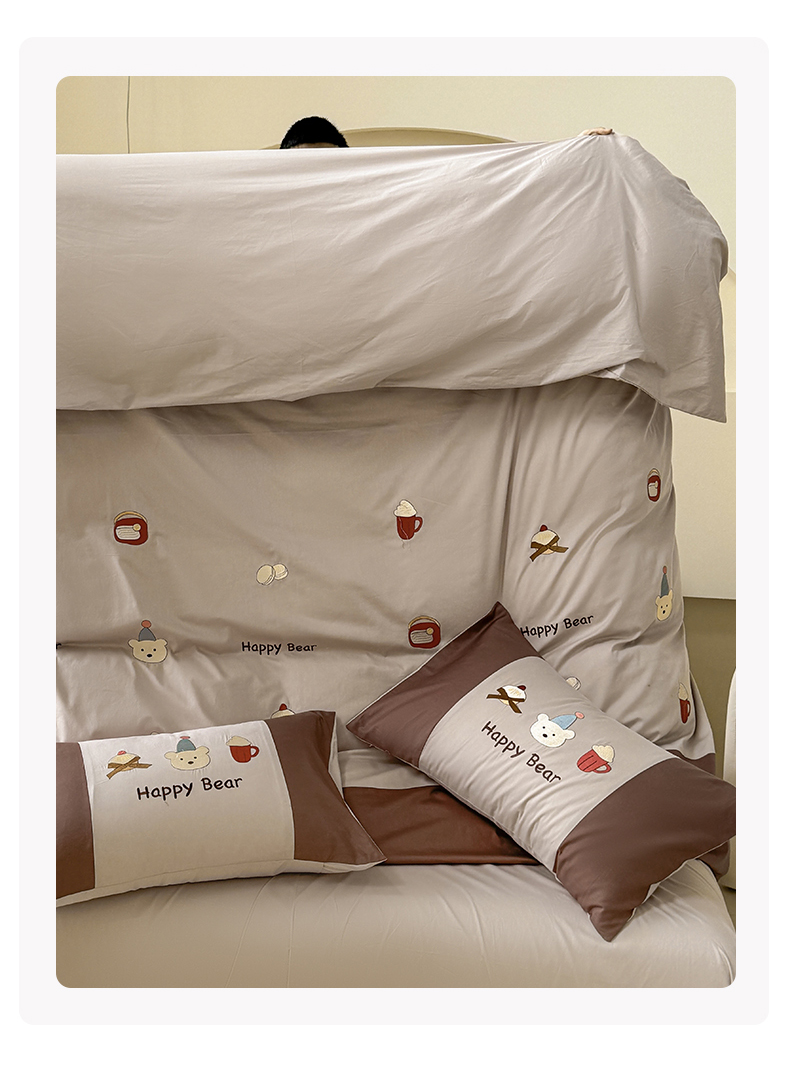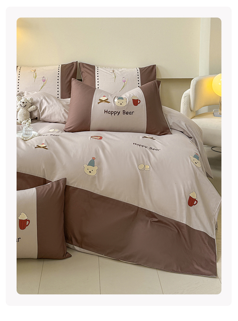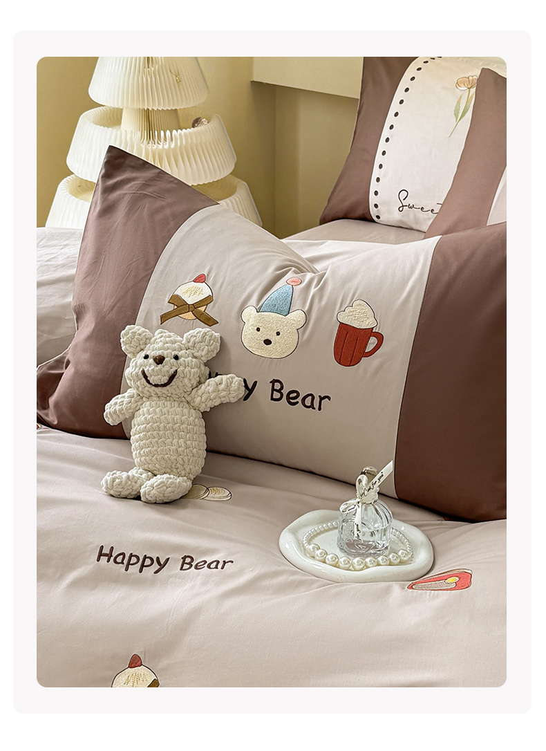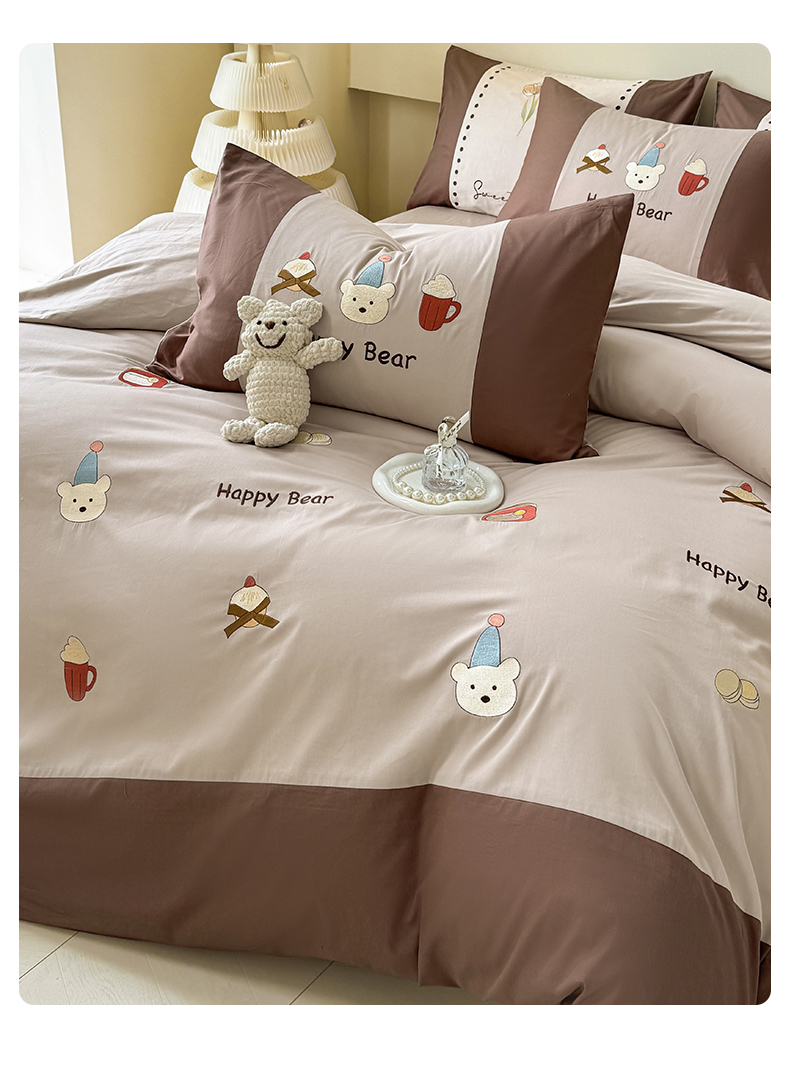 波比可可 2026新款全棉纯棉可爱刺绣四件套 啤酒熊